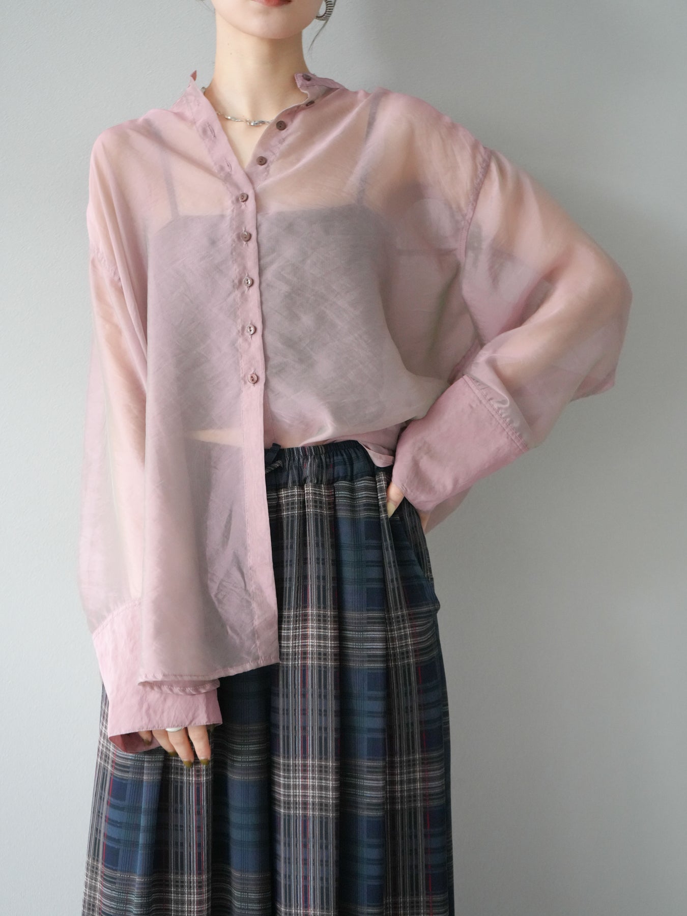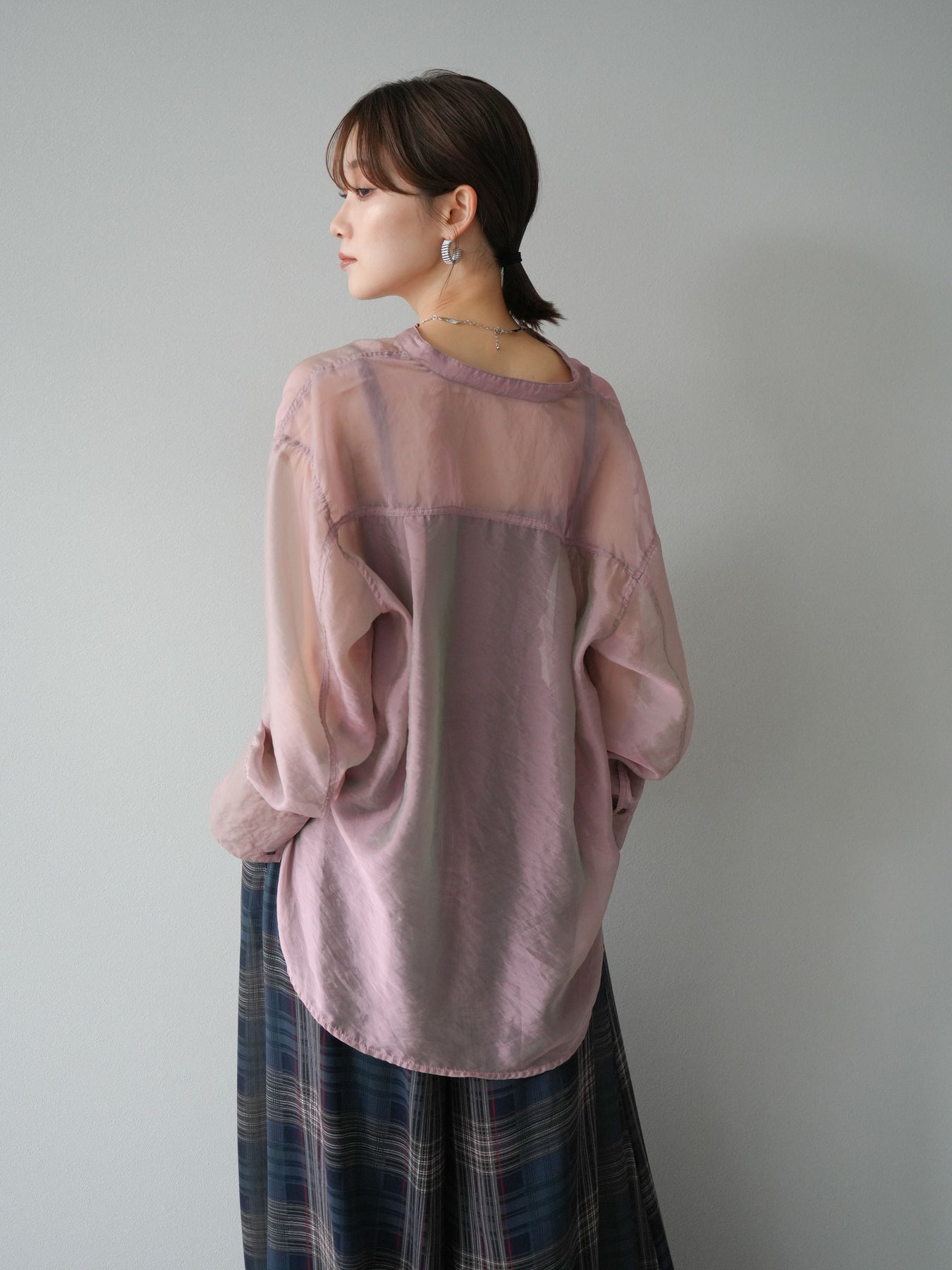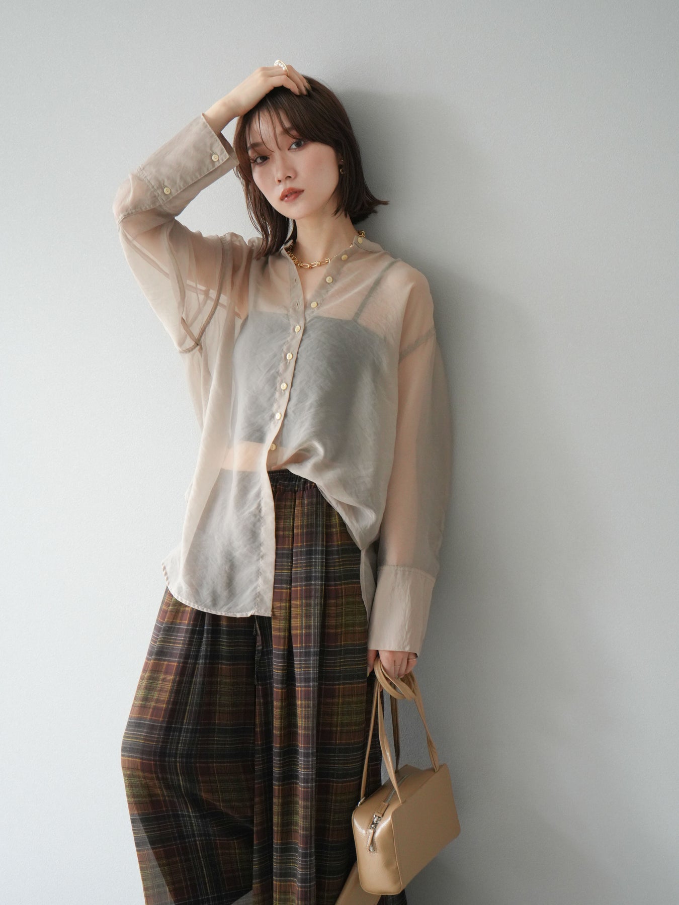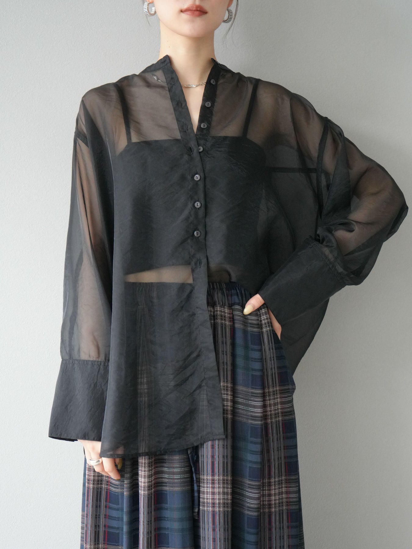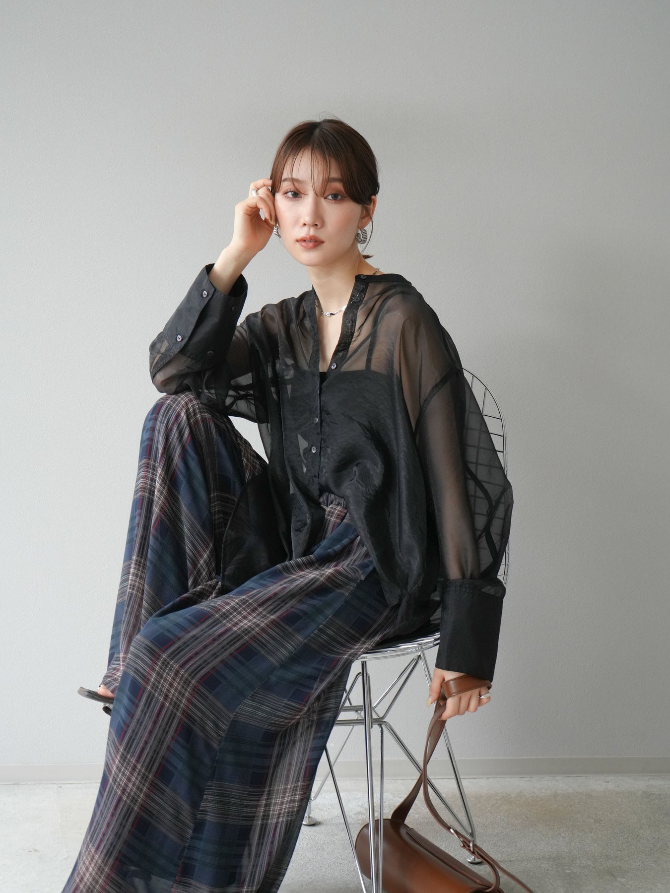 這款立領襯衫採用略帶光澤的透視布料製成,優雅又時尚。輕盈的透明度營造出休閒的造型,使其成為可單獨穿著的點睛之筆。 略長的長度和寬鬆的廓形,方便塞進或放出褲腰,打造均衡的造型。袖口收褶設計,更添一絲女性柔和。 這是一件用途極為廣泛的單品,可以根據您使用的內衣和分層以不同的方式穿著。 ※除下裝、吊帶背心(內衣)以外的商品均不含內衣。