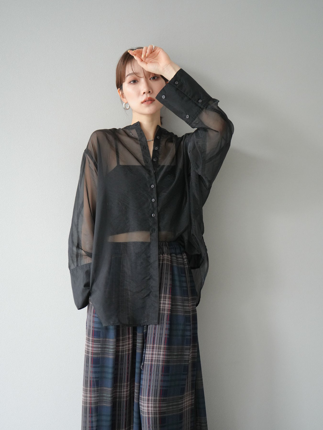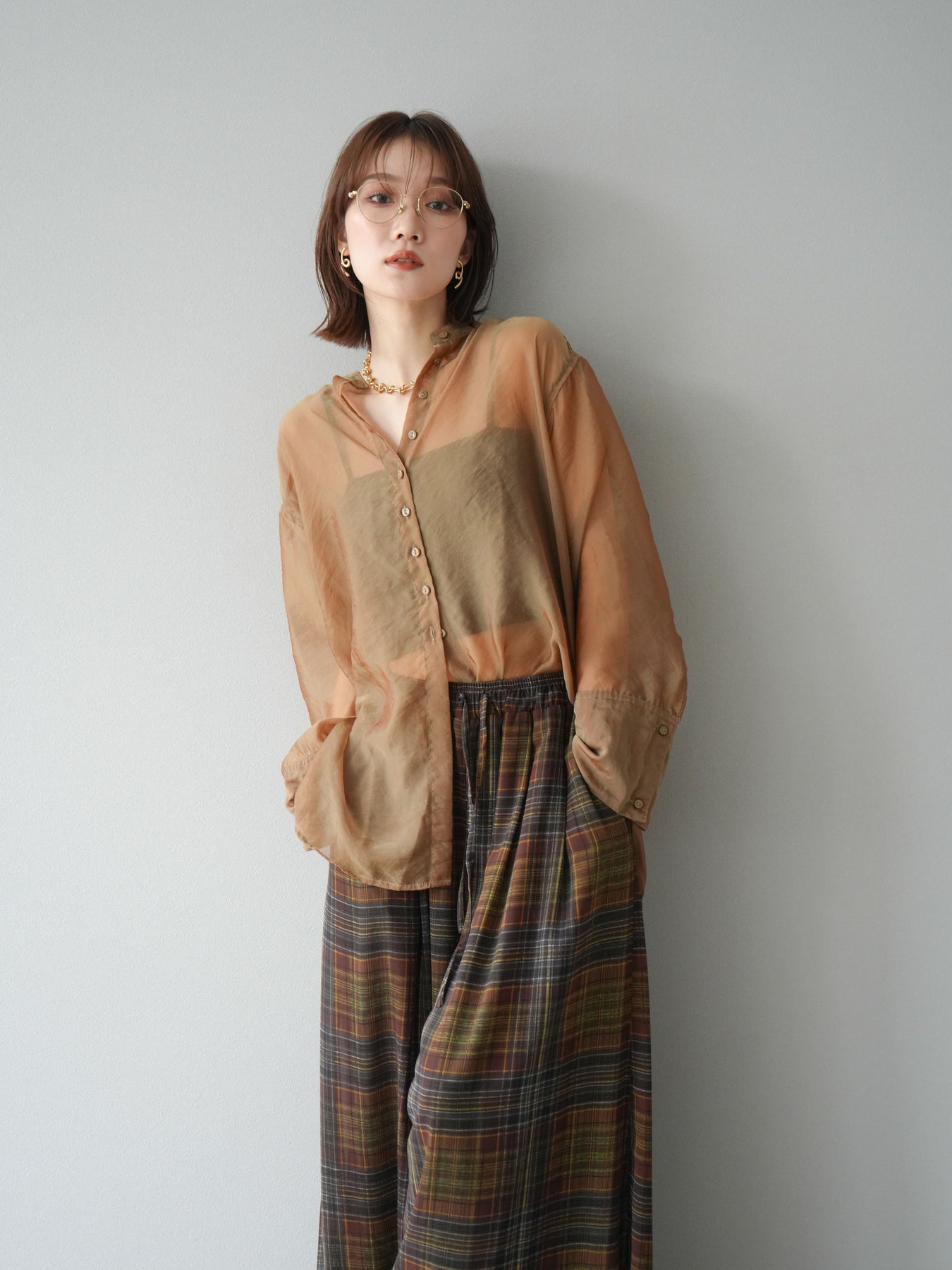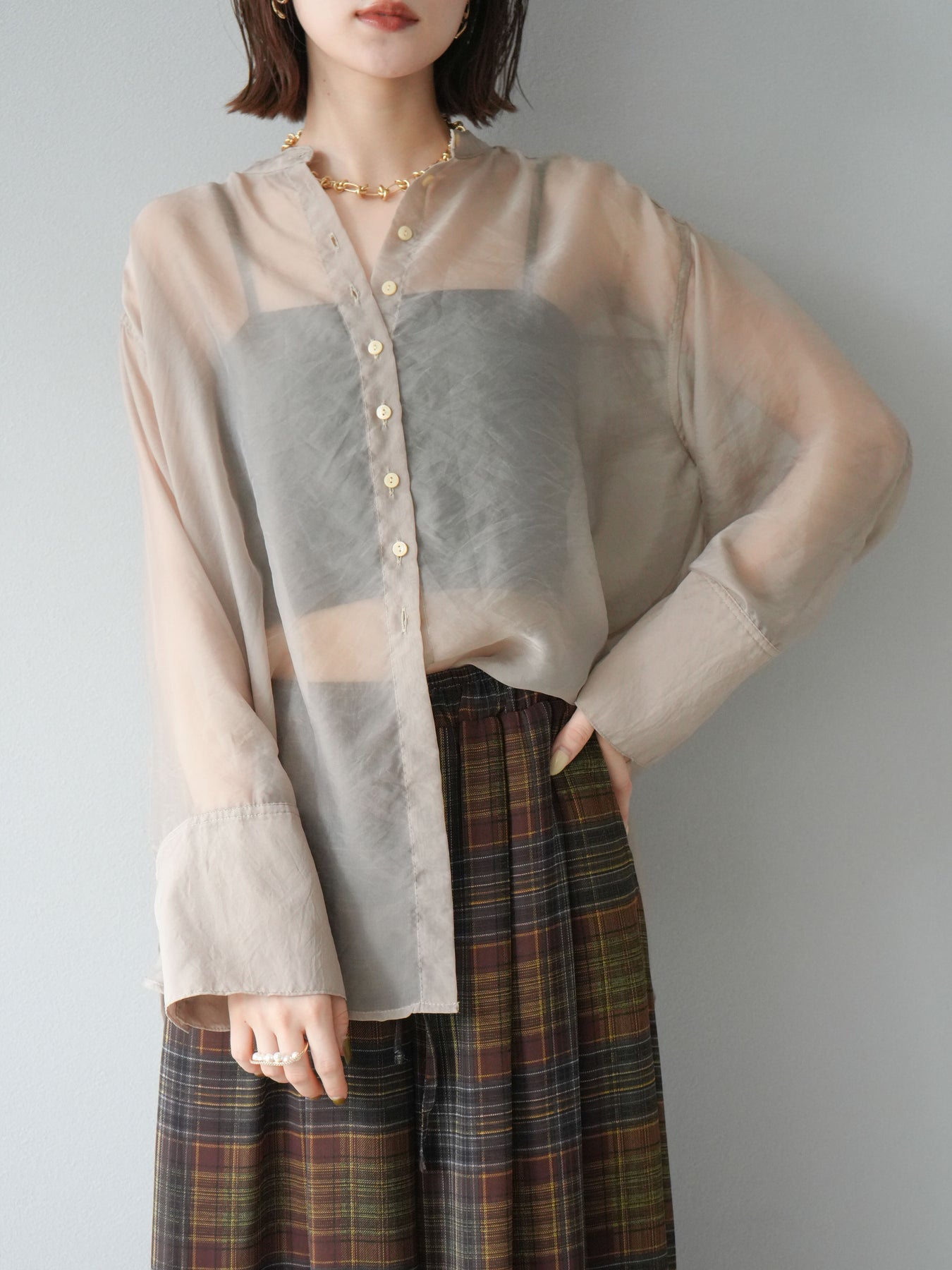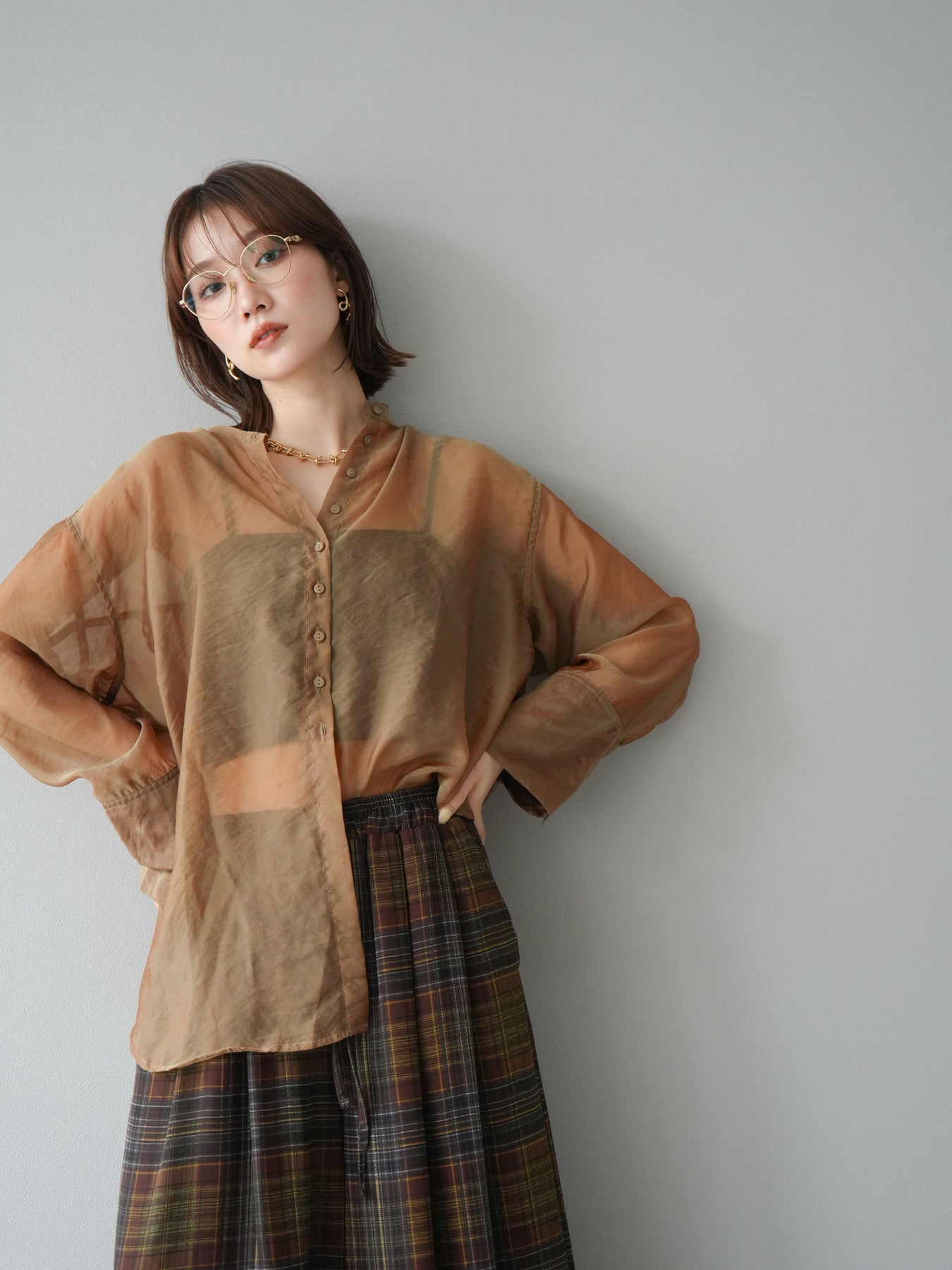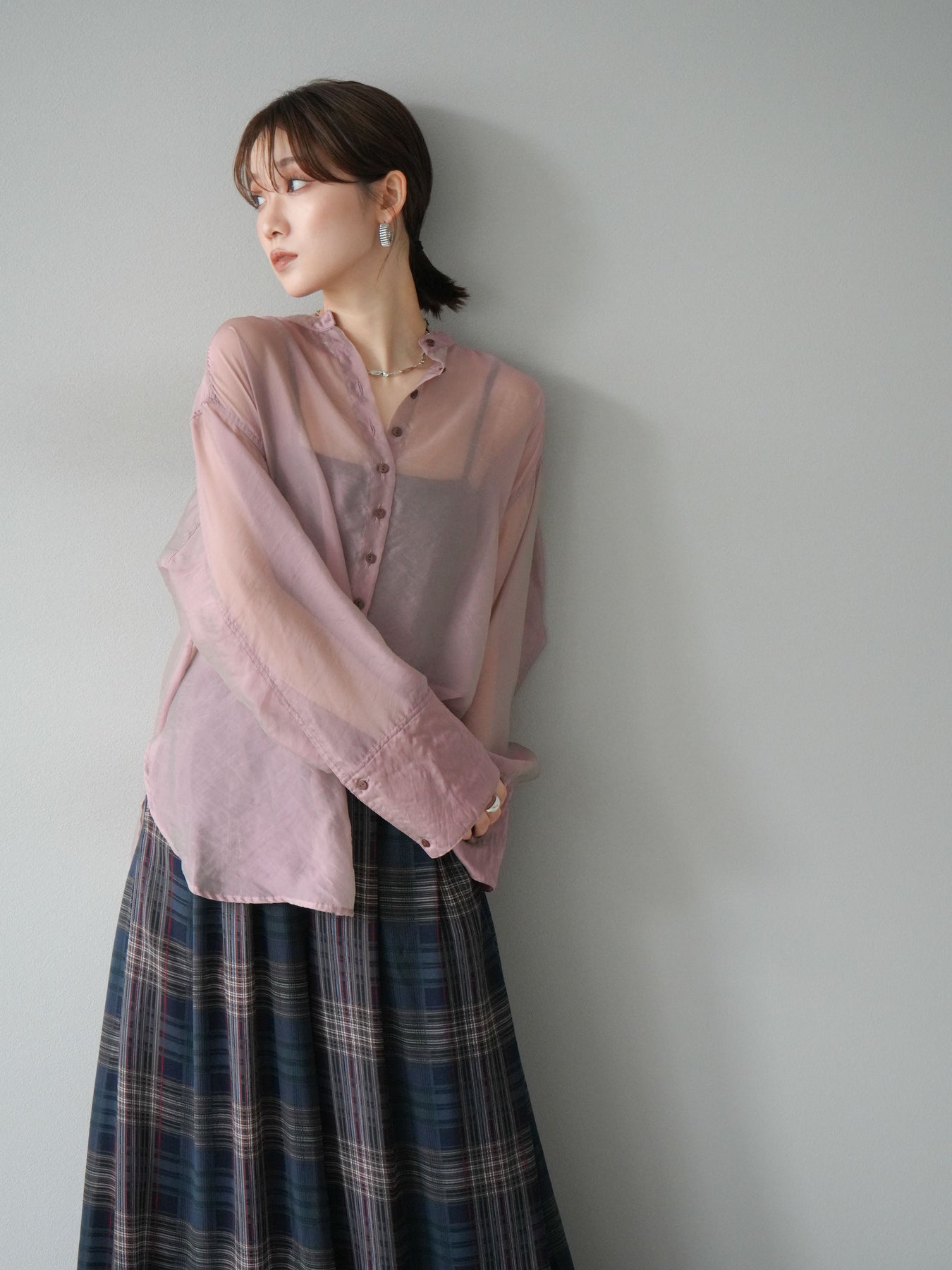 這款立領襯衫採用略帶光澤的透視布料製成,優雅又時尚。輕盈的透明度營造出休閒的造型,使其成為可單獨穿著的點睛之筆。 略長的長度和寬鬆的廓形,方便塞進或放出褲腰,打造均衡的造型。袖口收褶設計,更添一絲女性柔和。 這是一件用途極為廣泛的單品,可以根據您使用的內衣和分層以不同的方式穿著。 ※除下裝、吊帶背心(內衣)以外的商品均不含內衣。