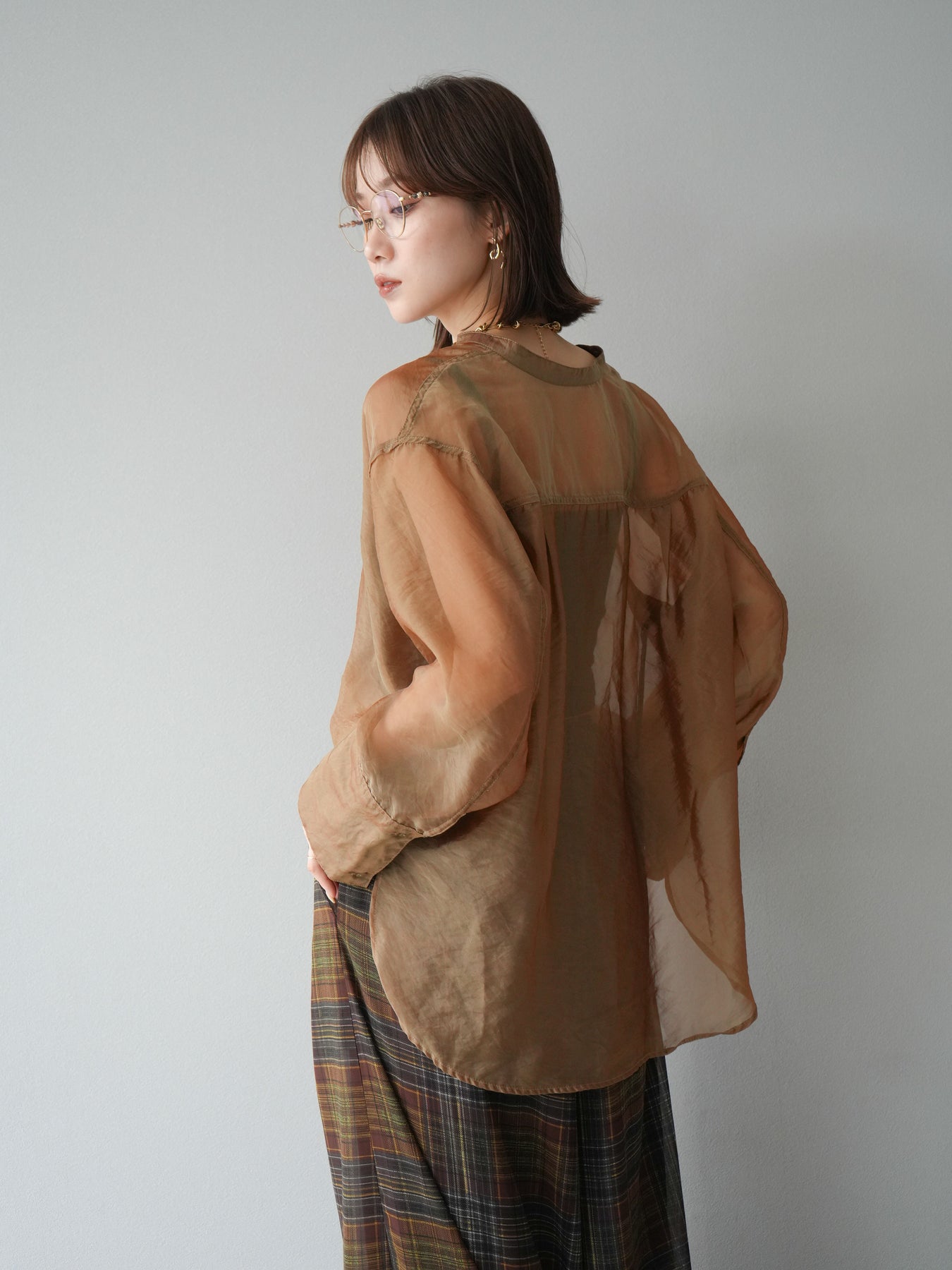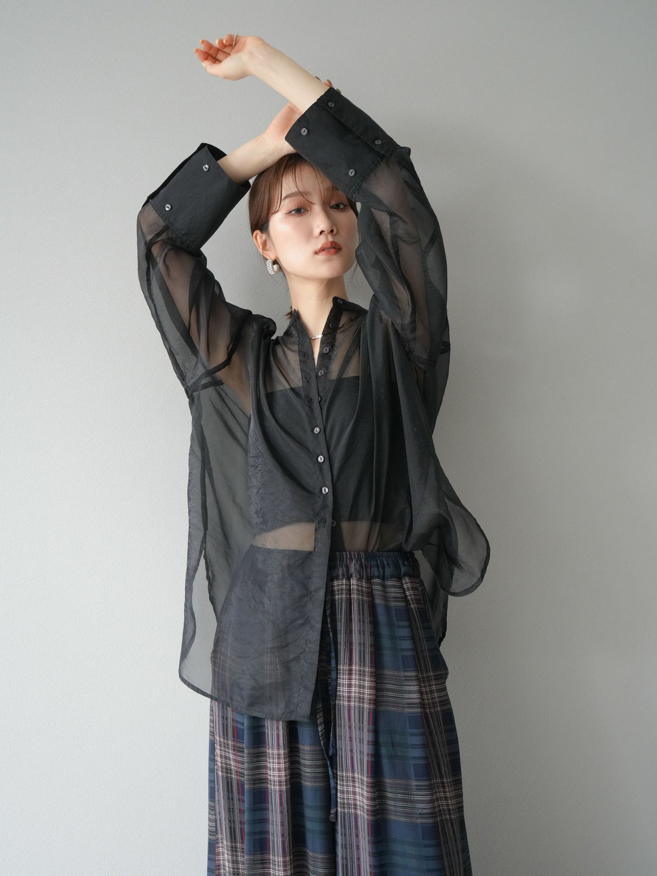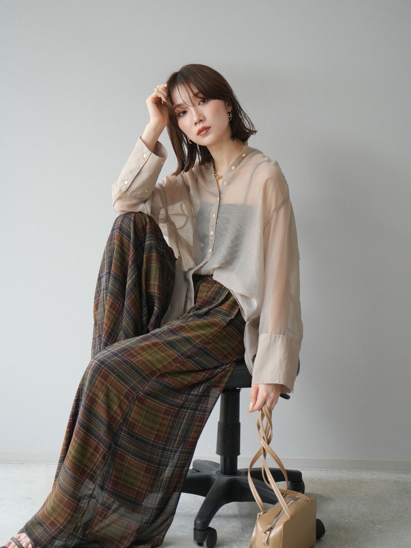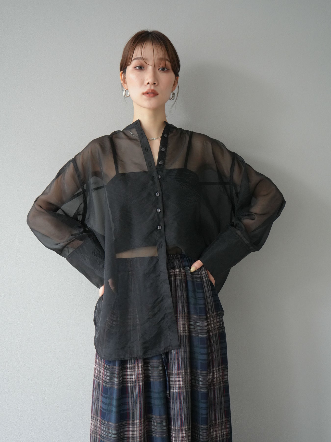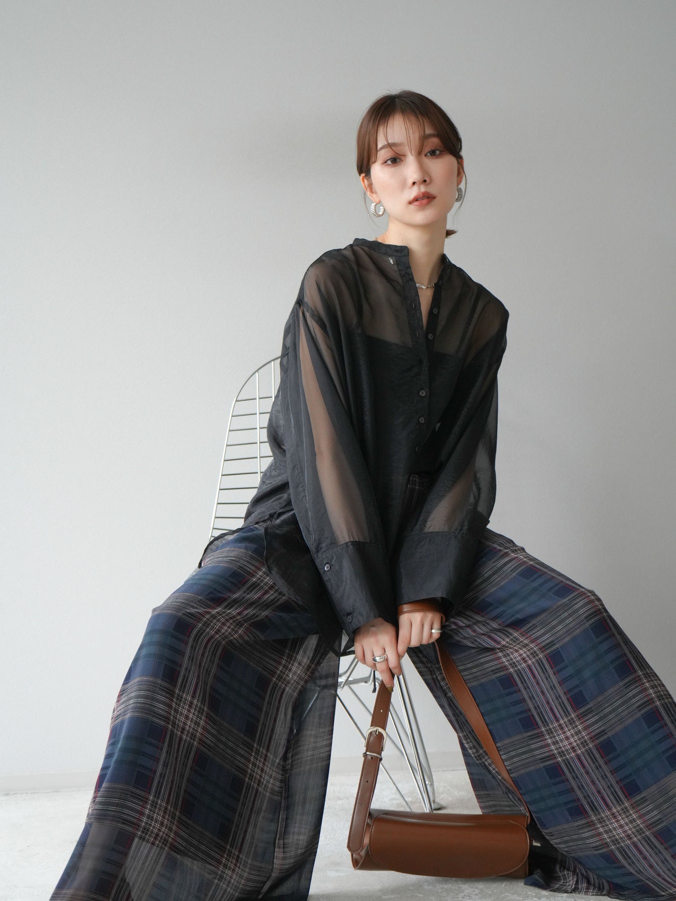 這款立領襯衫採用略帶光澤的透視布料製成,優雅又時尚。輕盈的透明度營造出休閒的造型,使其成為可單獨穿著的點睛之筆。 略長的長度和寬鬆的廓形,方便塞進或放出褲腰,打造均衡的造型。袖口收褶設計,更添一絲女性柔和。 這是一件用途極為廣泛的單品,可以根據您使用的內衣和分層以不同的方式穿著。 ※除下裝、吊帶背心(內衣)以外的商品均不含內衣。