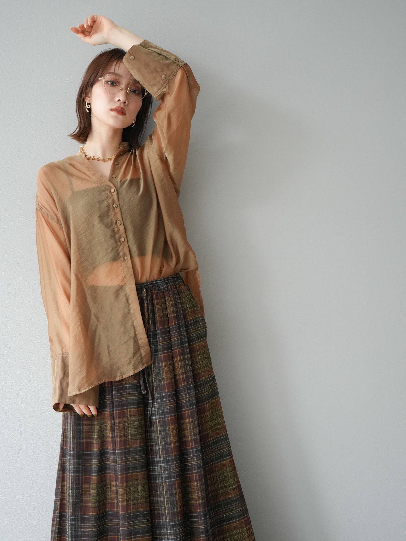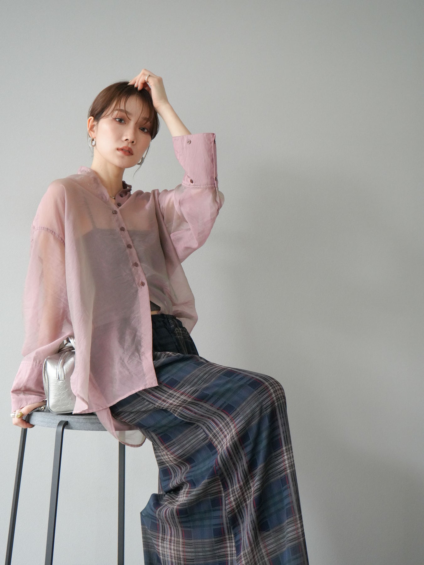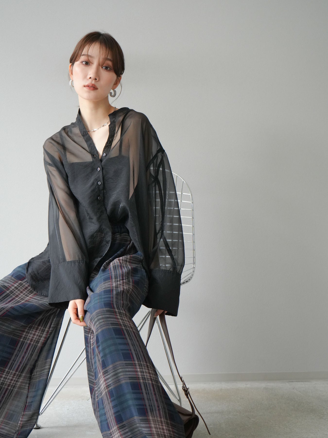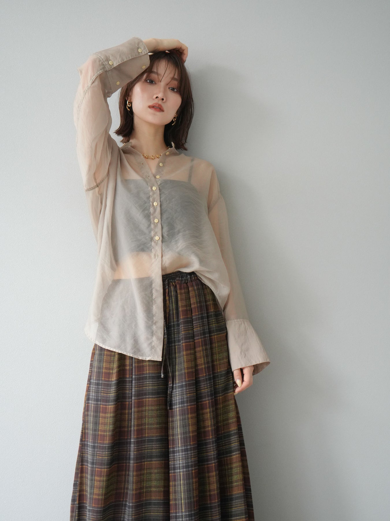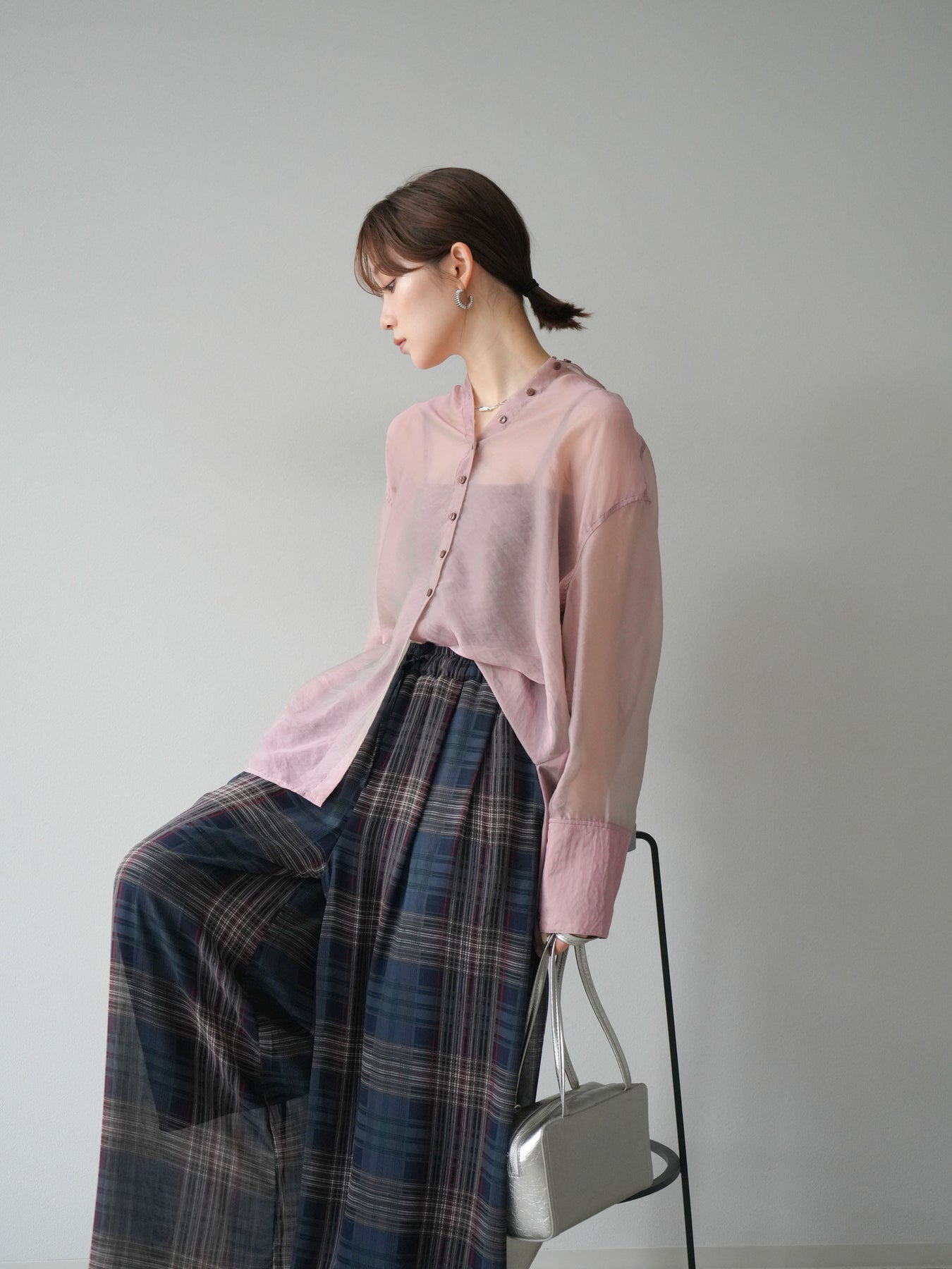 這款立領襯衫採用略帶光澤的透視布料製成,優雅又時尚。輕盈的透明度營造出休閒的造型,使其成為可單獨穿著的點睛之筆。 略長的長度和寬鬆的廓形,方便塞進或放出褲腰,打造均衡的造型。袖口收褶設計,更添一絲女性柔和。 這是一件用途極為廣泛的單品,可以根據您使用的內衣和分層以不同的方式穿著。 ※除下裝、吊帶背心(內衣)以外的商品均不含內衣。