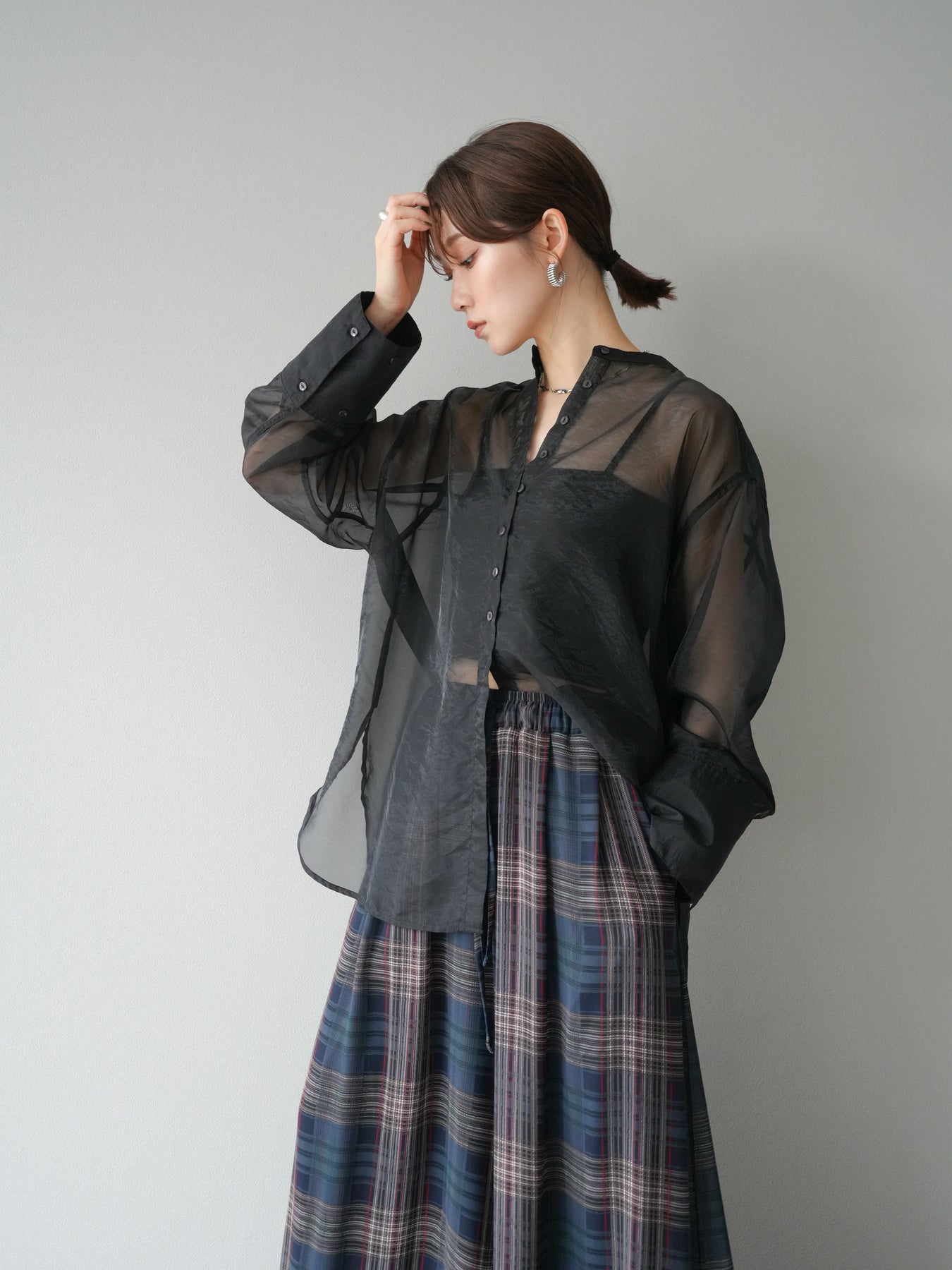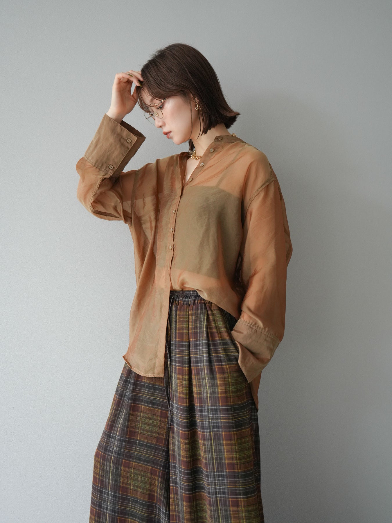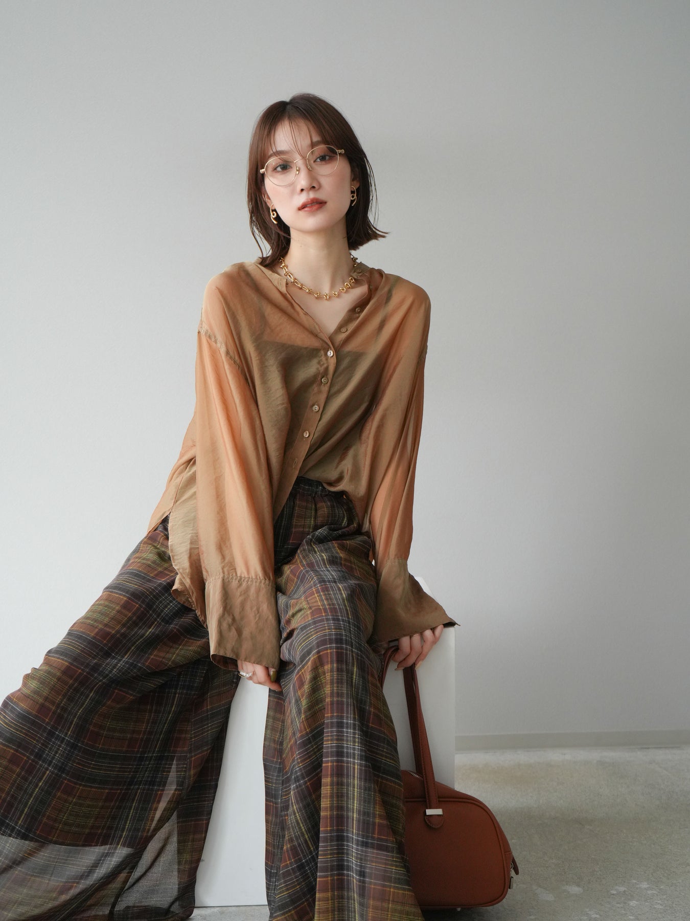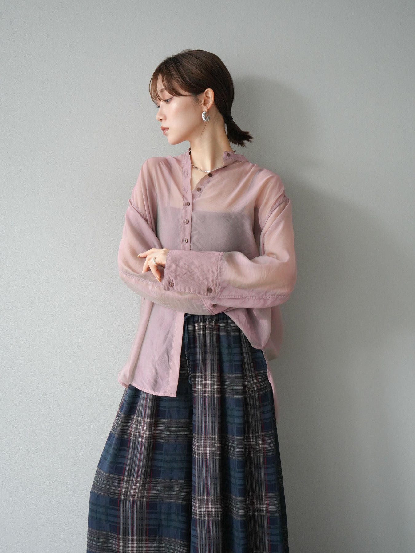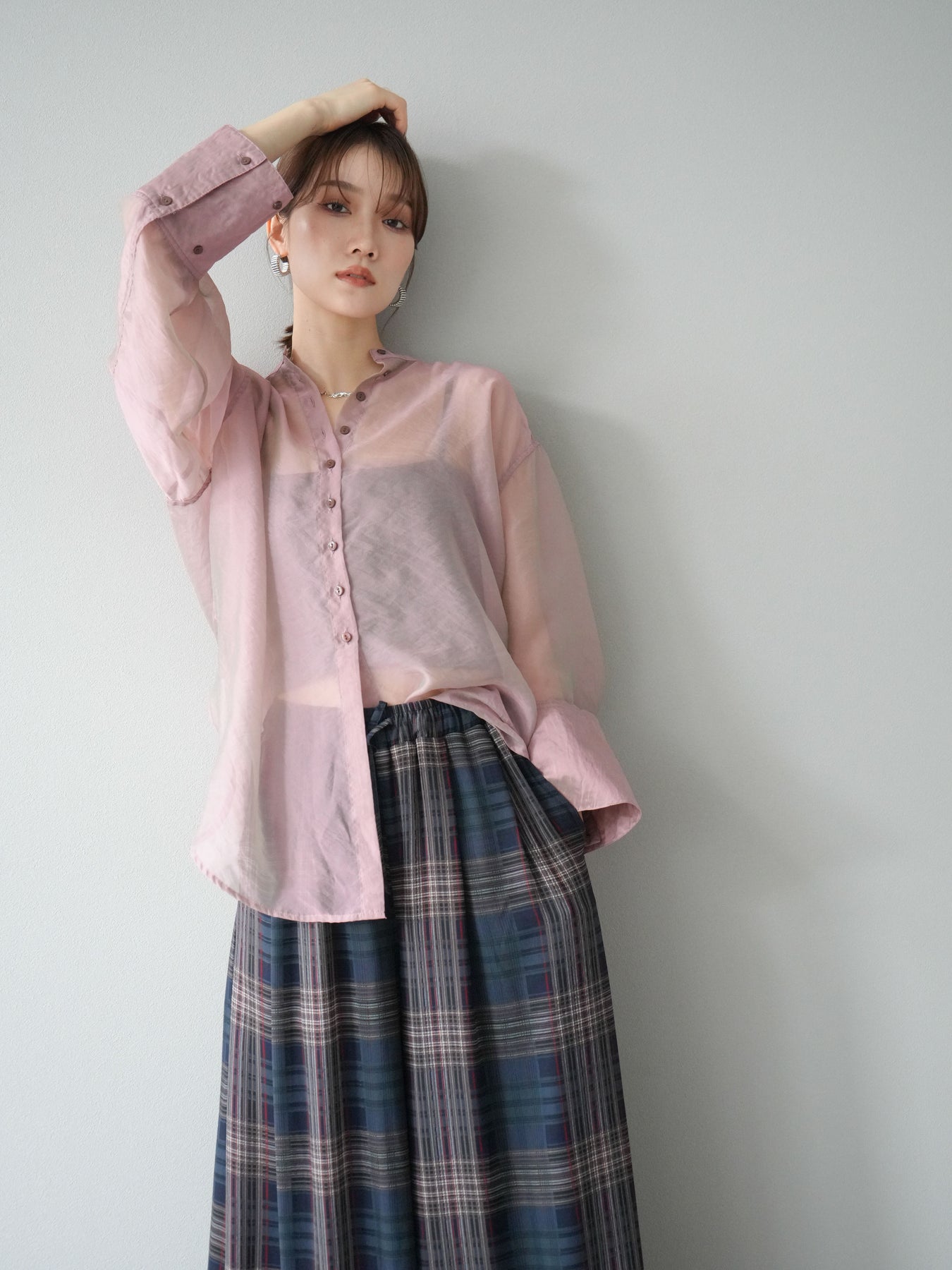 這款立領襯衫採用略帶光澤的透視布料製成,優雅又時尚。輕盈的透明度營造出休閒的造型,使其成為可單獨穿著的點睛之筆。 略長的長度和寬鬆的廓形,方便塞進或放出褲腰,打造均衡的造型。袖口收褶設計,更添一絲女性柔和。 這是一件用途極為廣泛的單品,可以根據您使用的內衣和分層以不同的方式穿著。 ※除下裝、吊帶背心(內衣)以外的商品均不含內衣。