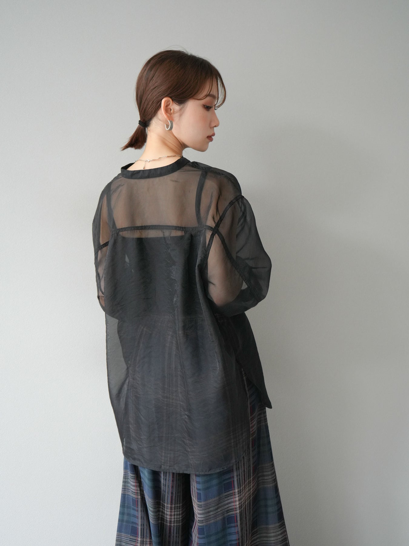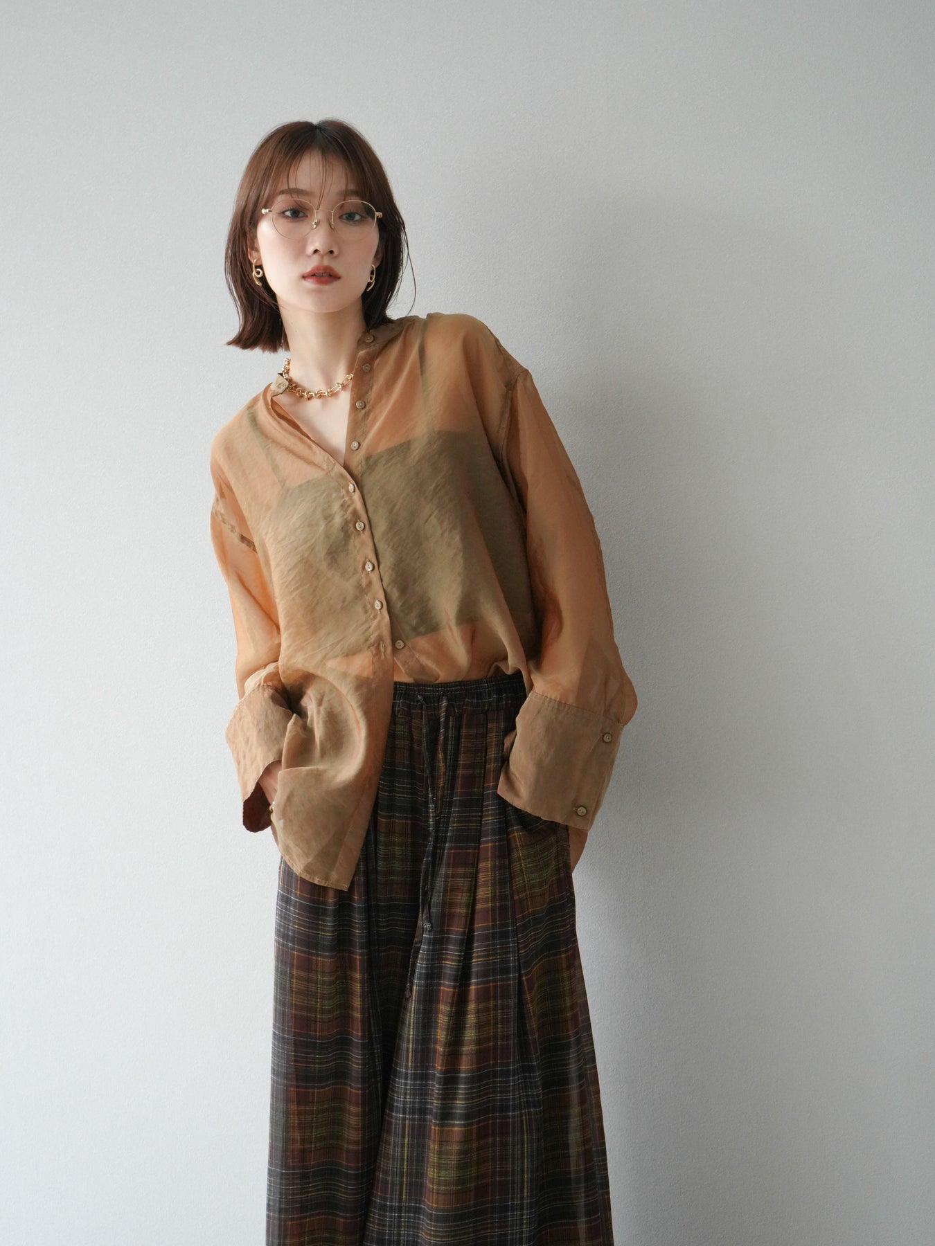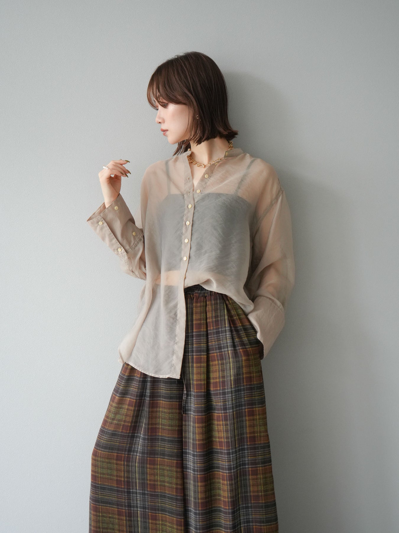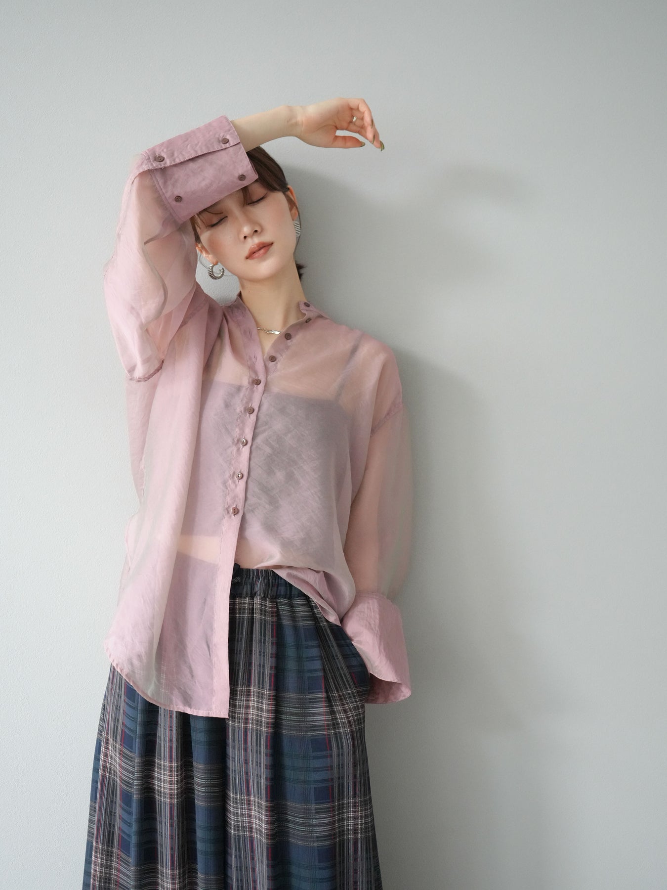 這款立領襯衫採用略帶光澤的透視布料製成,優雅又時尚。輕盈的透明度營造出休閒的造型,使其成為可單獨穿著的點睛之筆。 略長的長度和寬鬆的廓形,方便塞進或放出褲腰,打造均衡的造型。袖口收褶設計,更添一絲女性柔和。 這是一件用途極為廣泛的單品,可以根據您使用的內衣和分層以不同的方式穿著。 ※除下裝、吊帶背心(內衣)以外的商品均不含內衣。