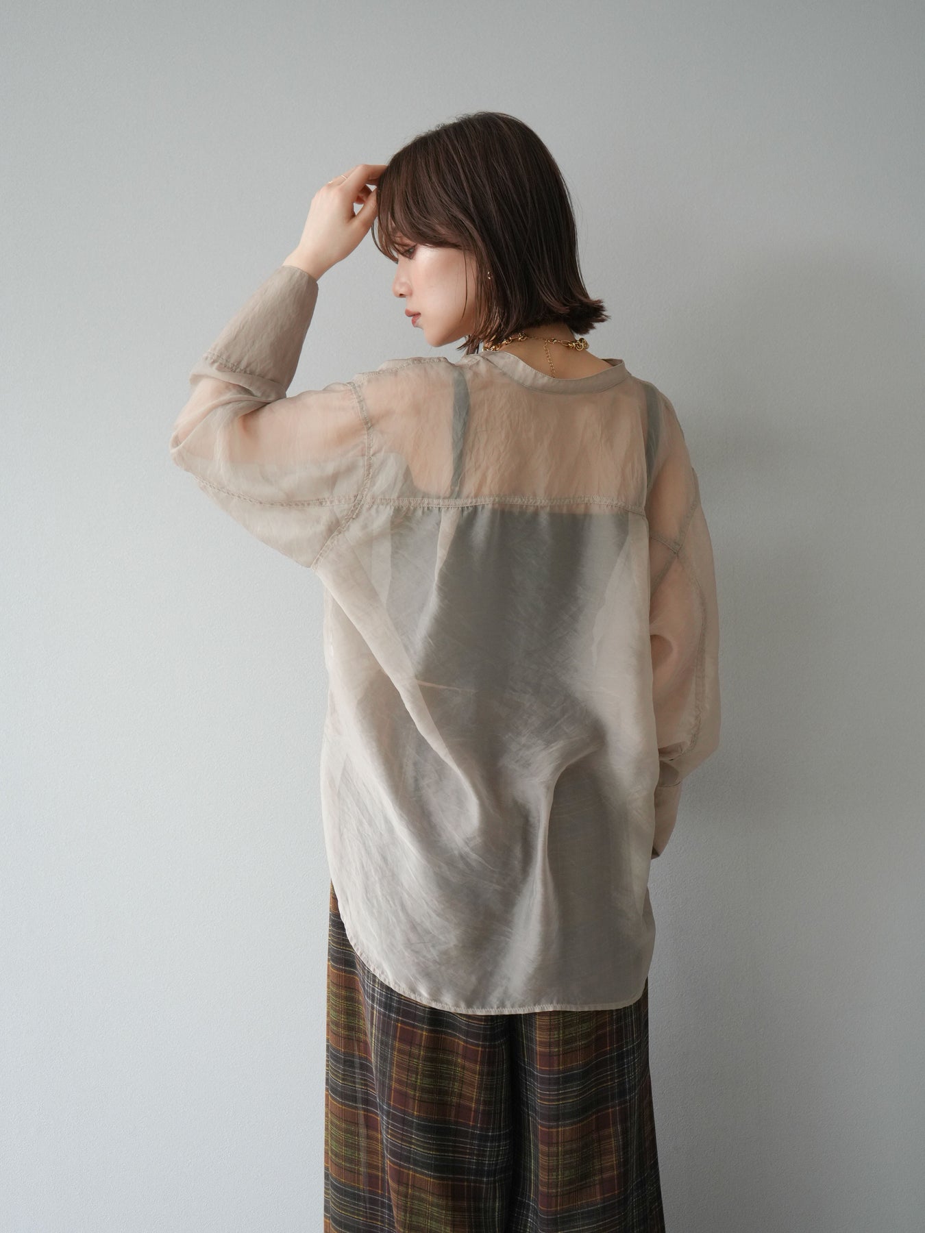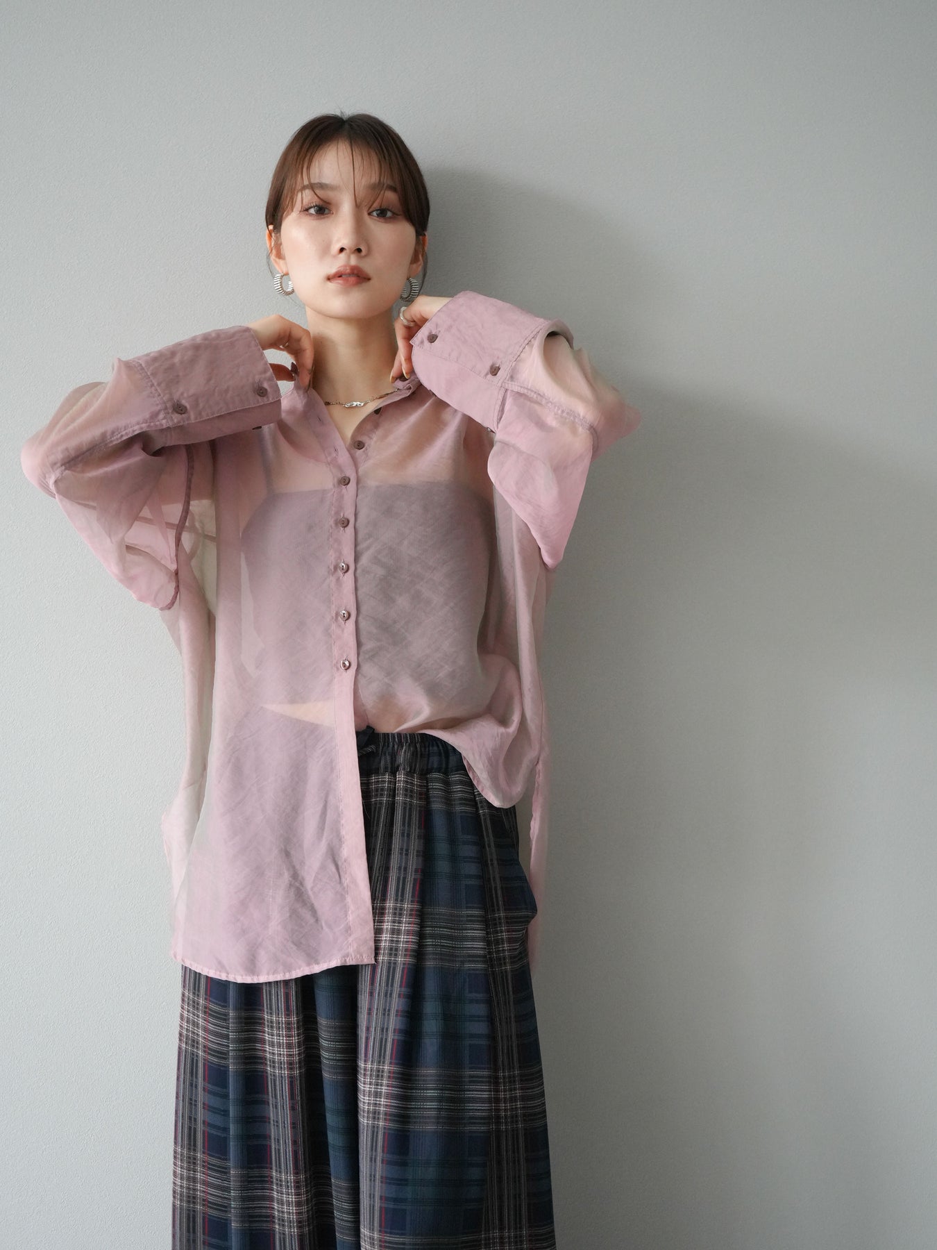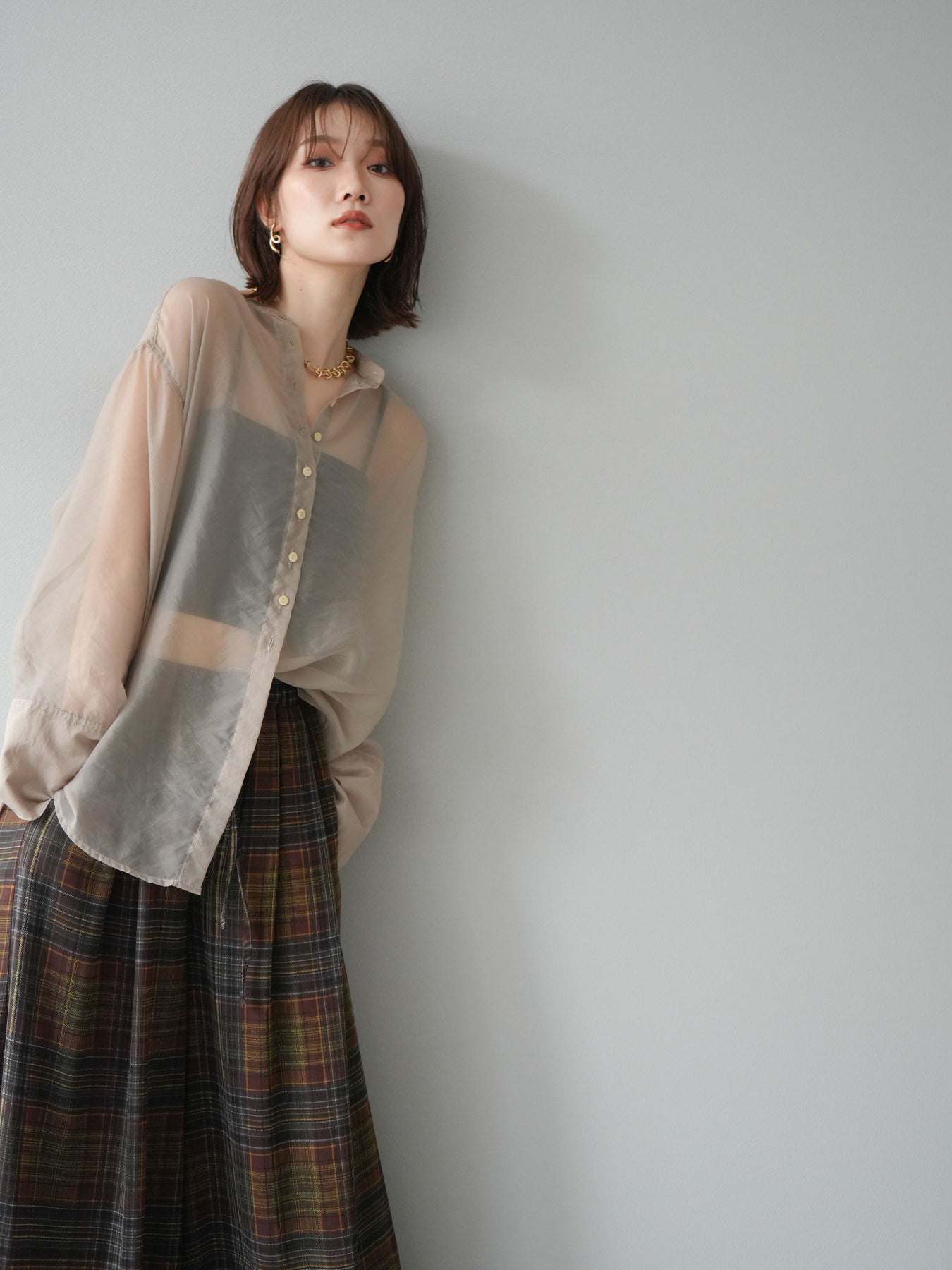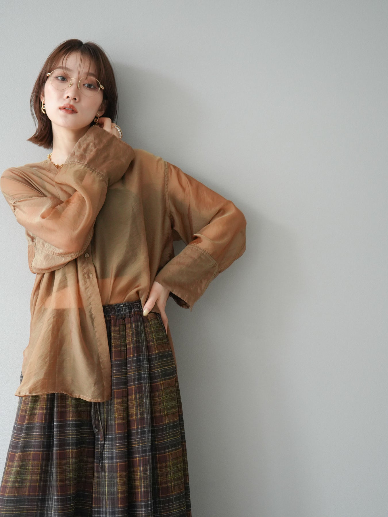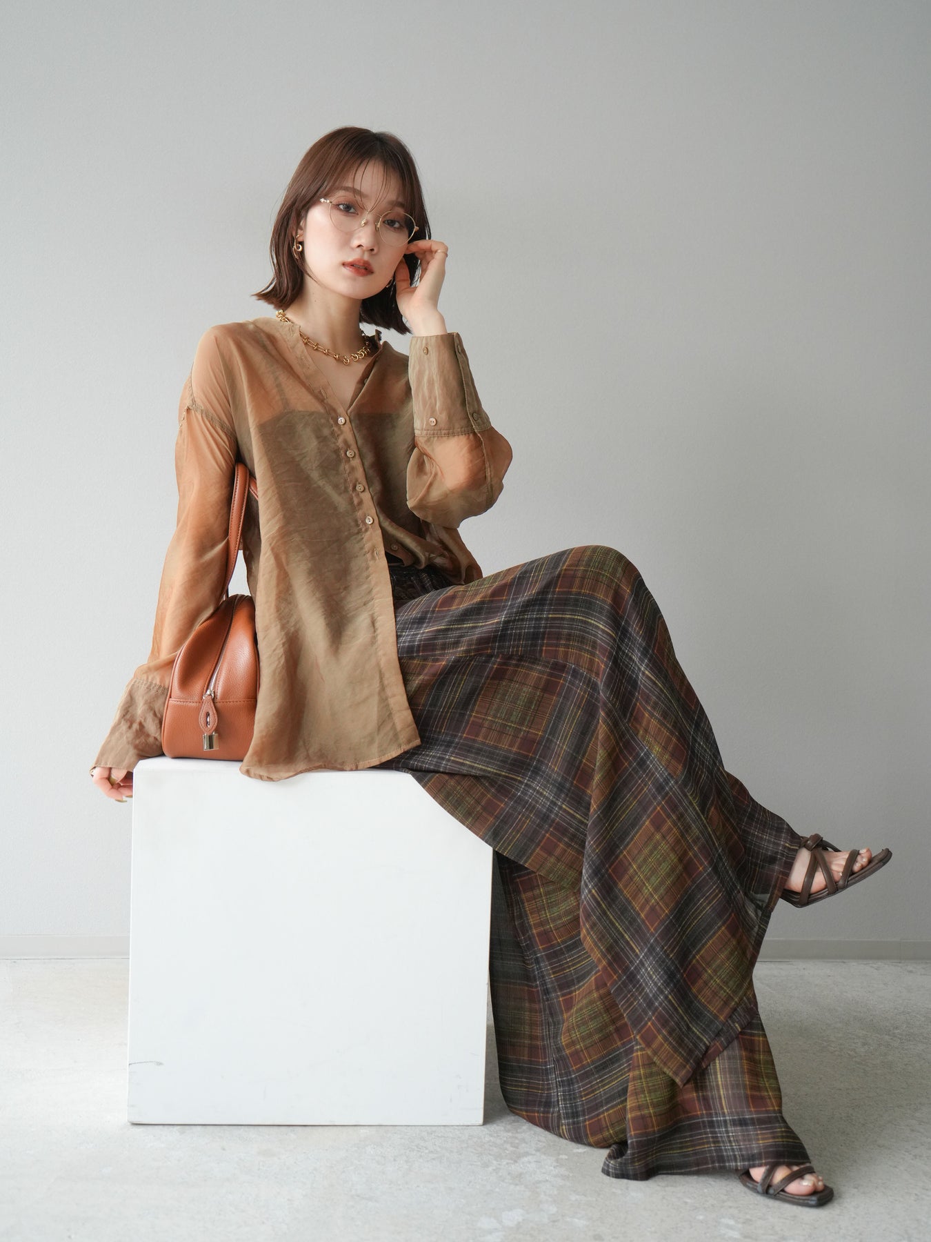 這款立領襯衫採用略帶光澤的透視布料製成,優雅又時尚。輕盈的透明度營造出休閒的造型,使其成為可單獨穿著的點睛之筆。 略長的長度和寬鬆的廓形,方便塞進或放出褲腰,打造均衡的造型。袖口收褶設計,更添一絲女性柔和。 這是一件用途極為廣泛的單品,可以根據您使用的內衣和分層以不同的方式穿著。 ※除下裝、吊帶背心(內衣)以外的商品均不含內衣。