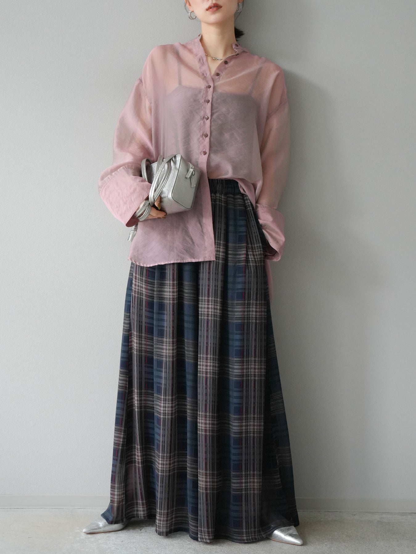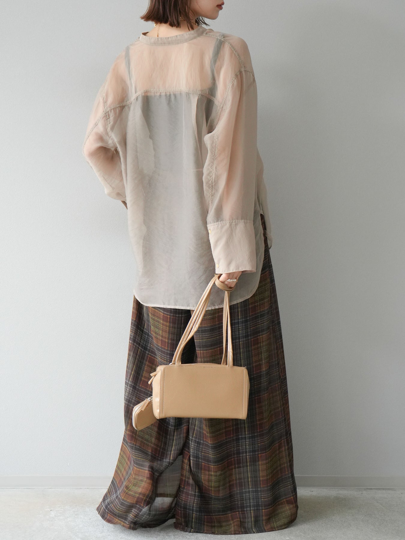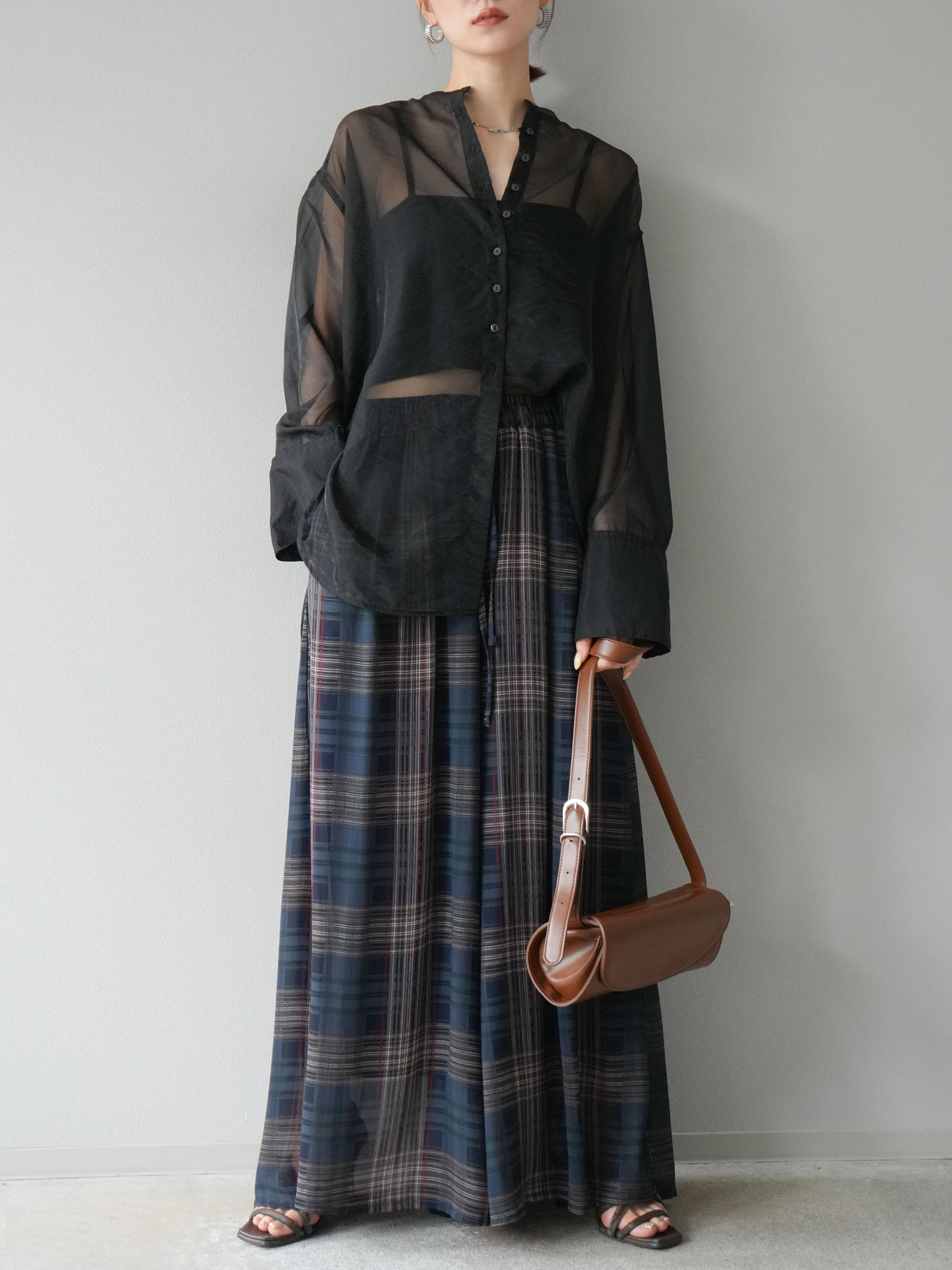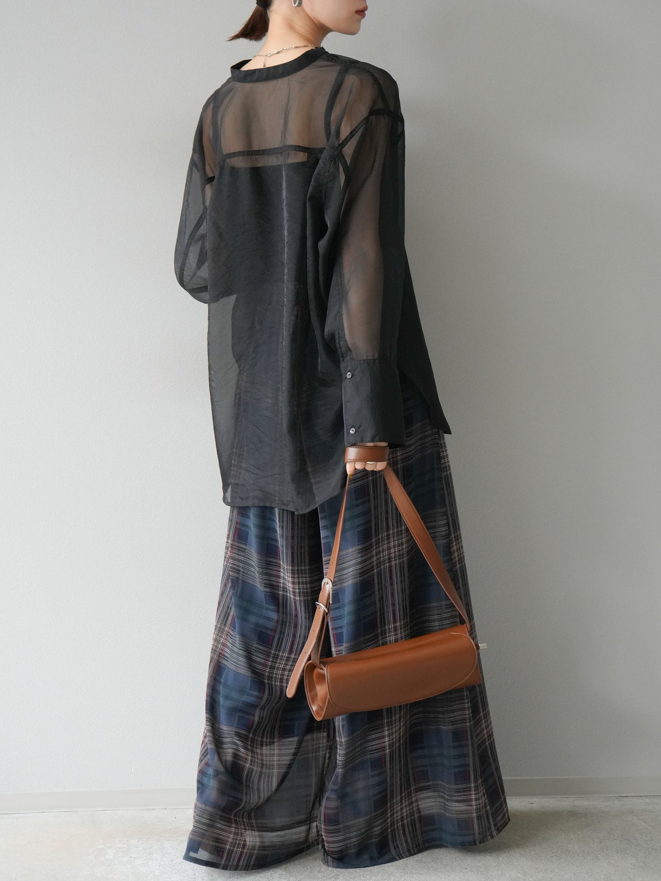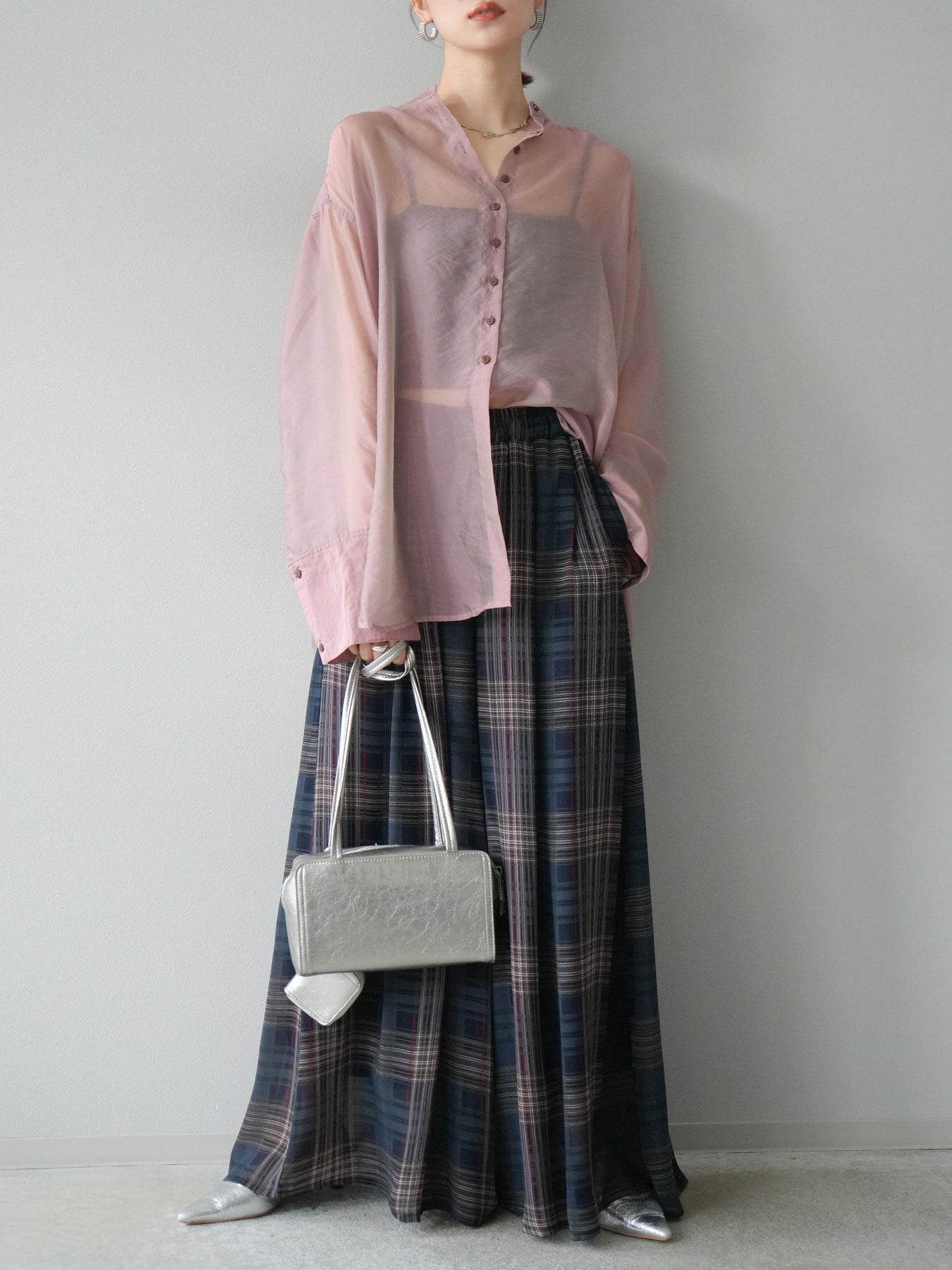 這款立領襯衫採用略帶光澤的透視布料製成,優雅又時尚。輕盈的透明度營造出休閒的造型,使其成為可單獨穿著的點睛之筆。 略長的長度和寬鬆的廓形,方便塞進或放出褲腰,打造均衡的造型。袖口收褶設計,更添一絲女性柔和。 這是一件用途極為廣泛的單品,可以根據您使用的內衣和分層以不同的方式穿著。 ※除下裝、吊帶背心(內衣)以外的商品均不含內衣。
