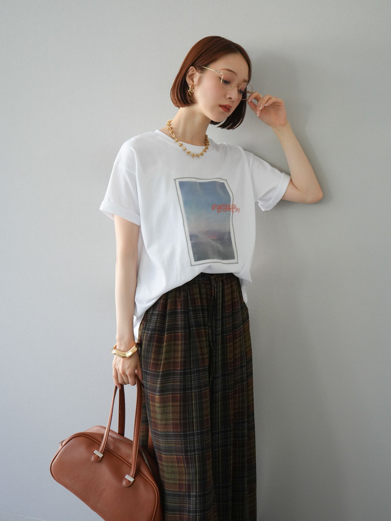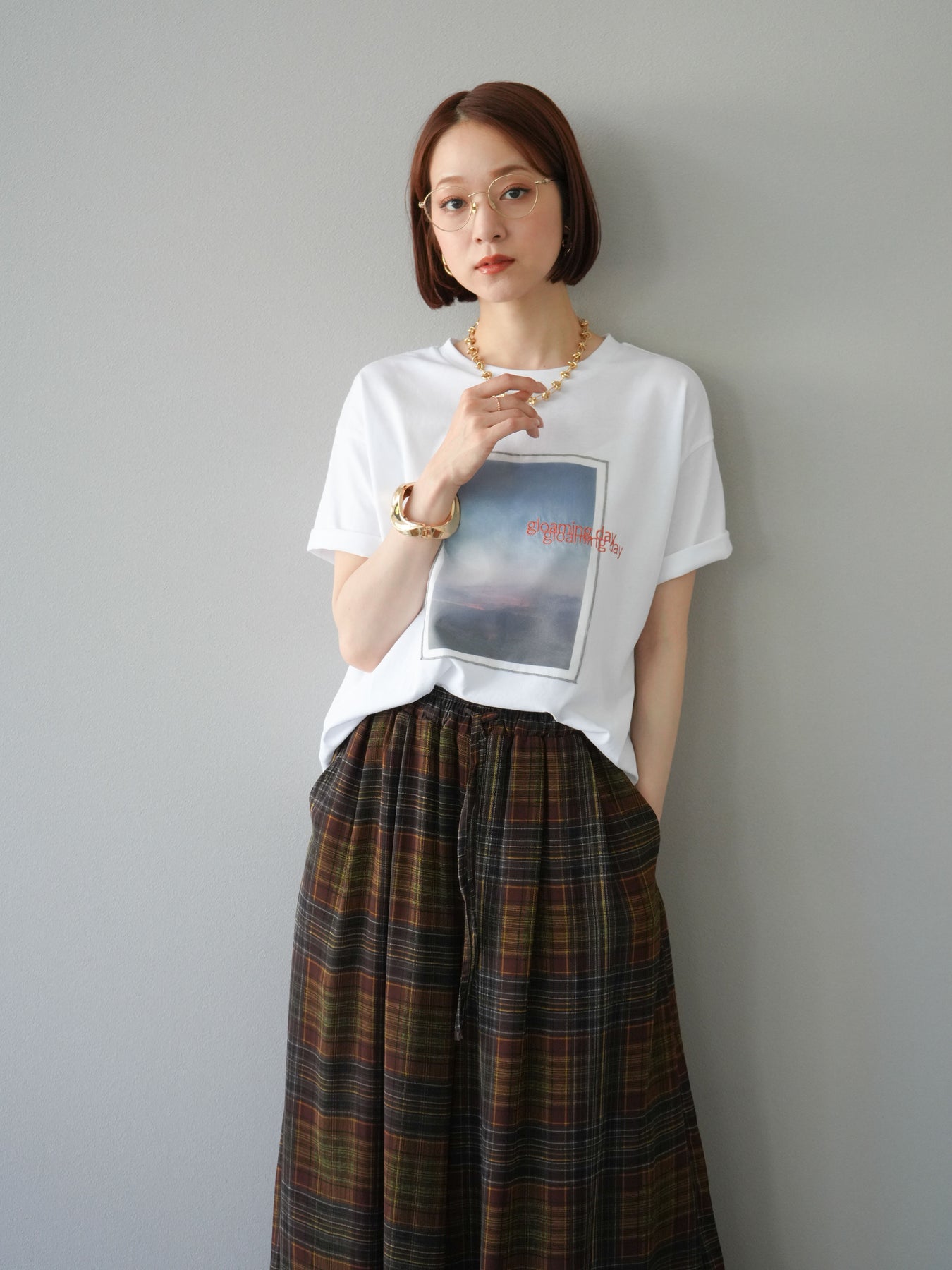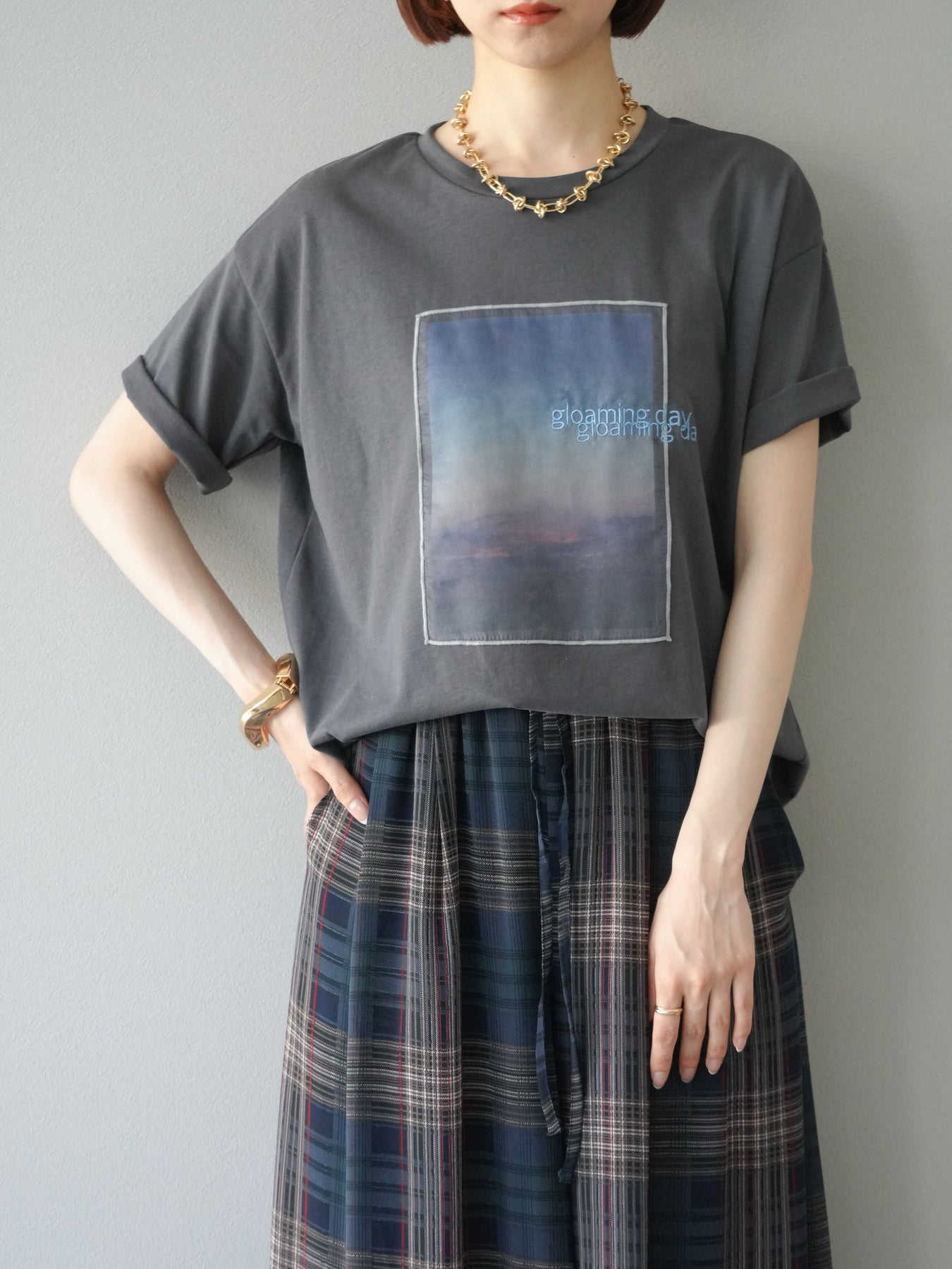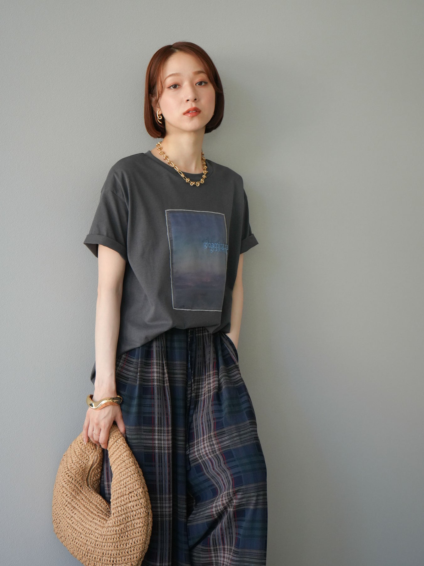 分層設計印花 T 卹,薄紗上層疊著奇妙的圖案。 透明薄紗覆蓋在印花上,營造出深度和立體感。 適度寬鬆的廓形,無論單獨穿著或疊穿都很好看。 這是一件休閒又前衛、非常精緻的作品。 ※除下裝、吊帶背心(內衣)以外的商品均不含內衣。