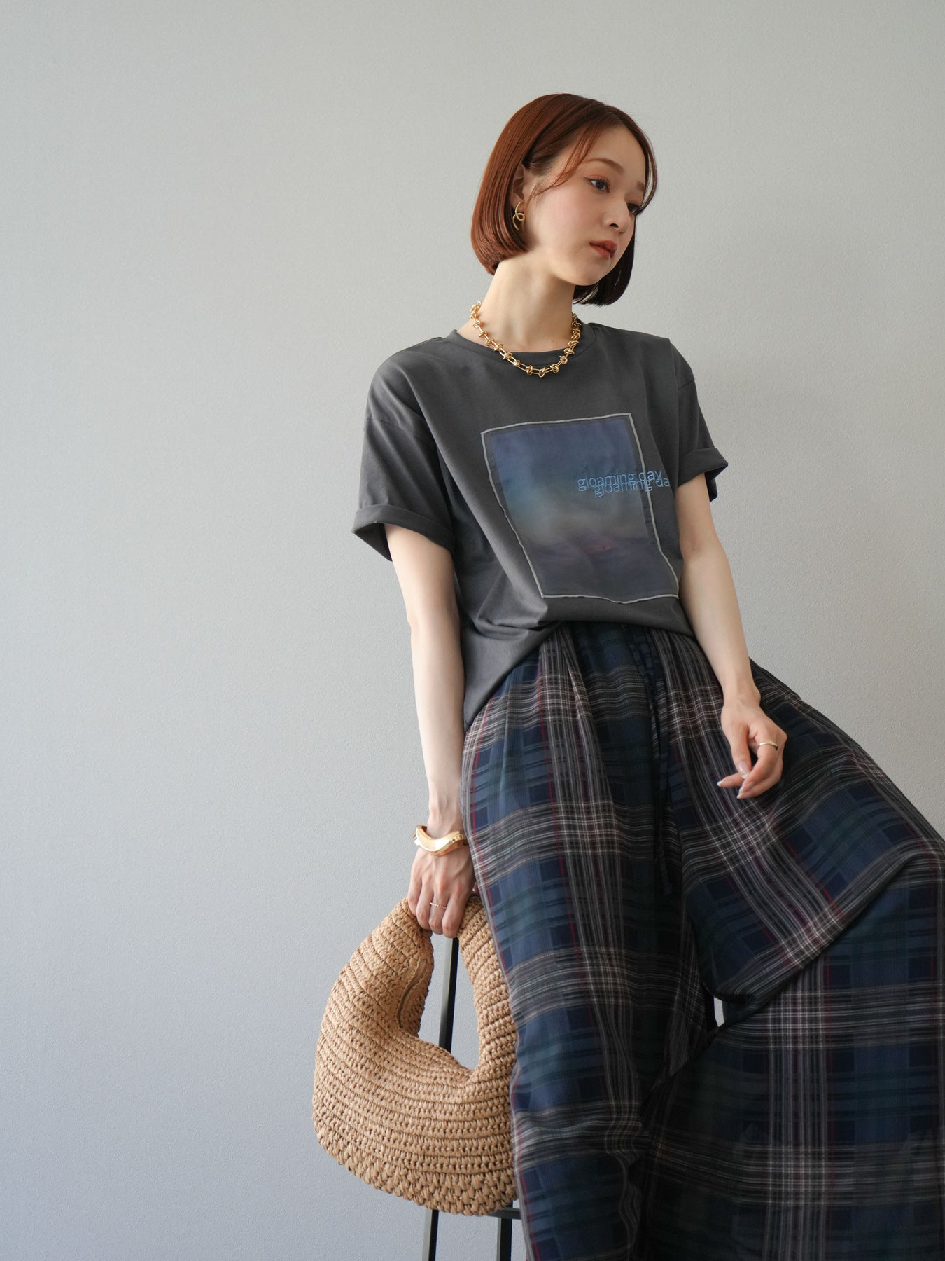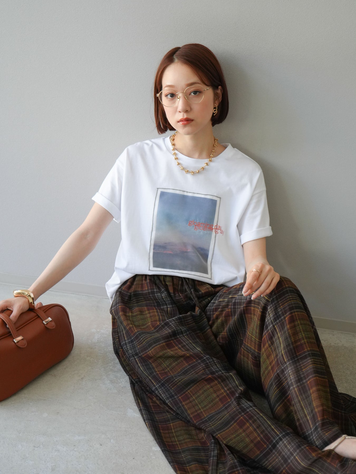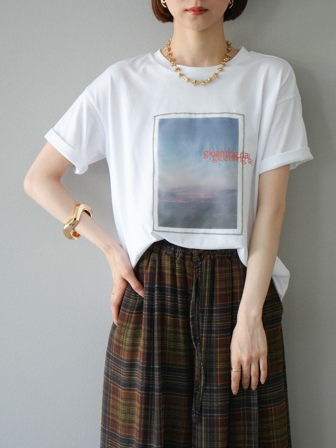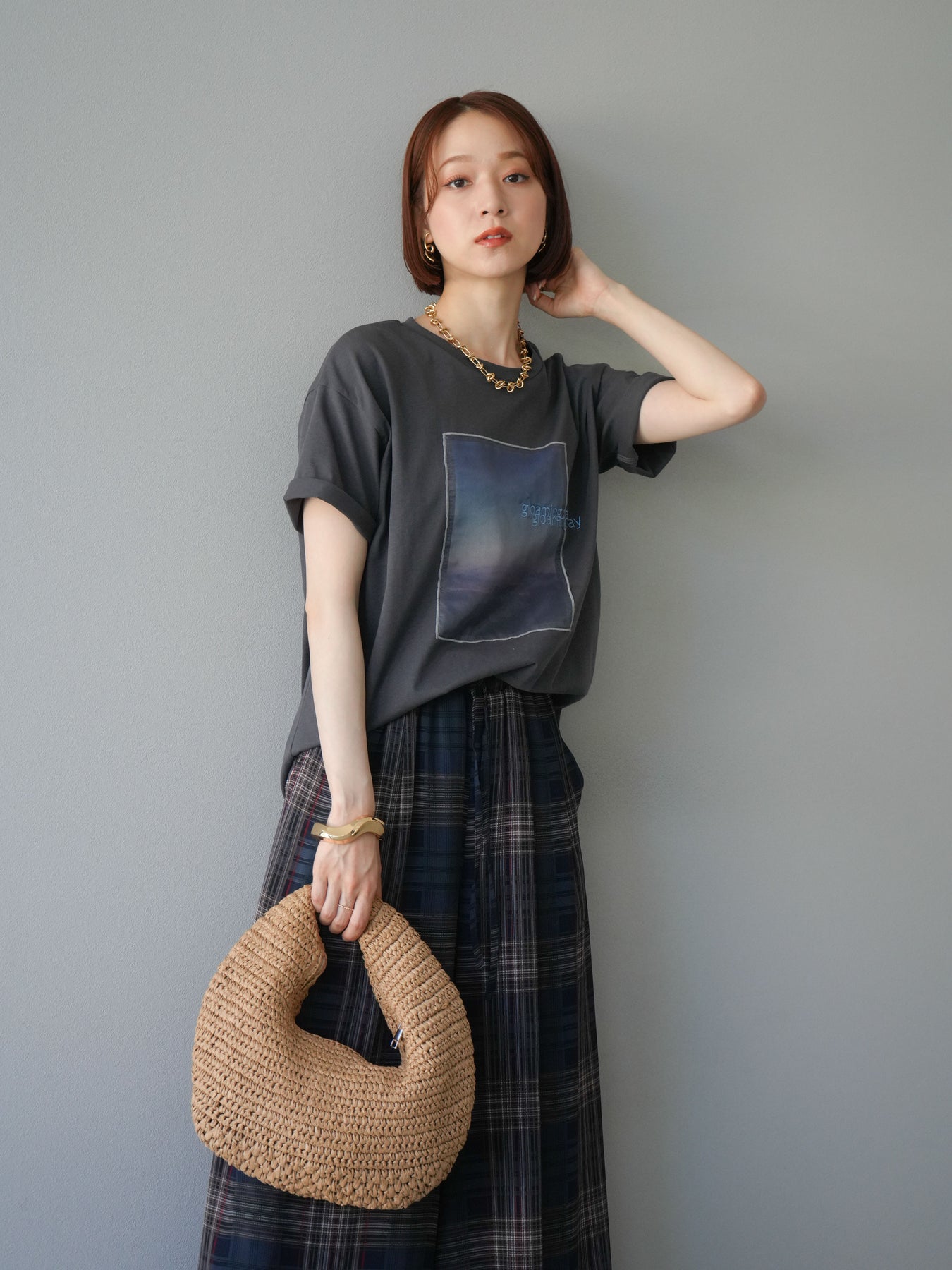 分層設計印花 T 卹,薄紗上層疊著奇妙的圖案。 透明薄紗覆蓋在印花上,營造出深度和立體感。 適度寬鬆的廓形,無論單獨穿著或疊穿都很好看。 這是一件休閒又前衛、非常精緻的作品。 ※除下裝、吊帶背心(內衣)以外的商品均不含內衣。