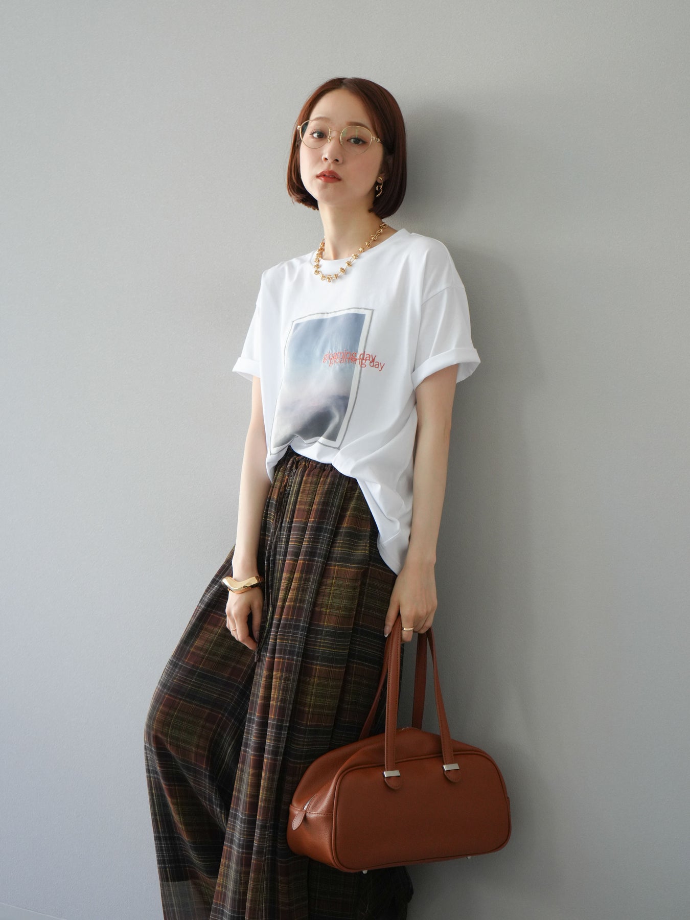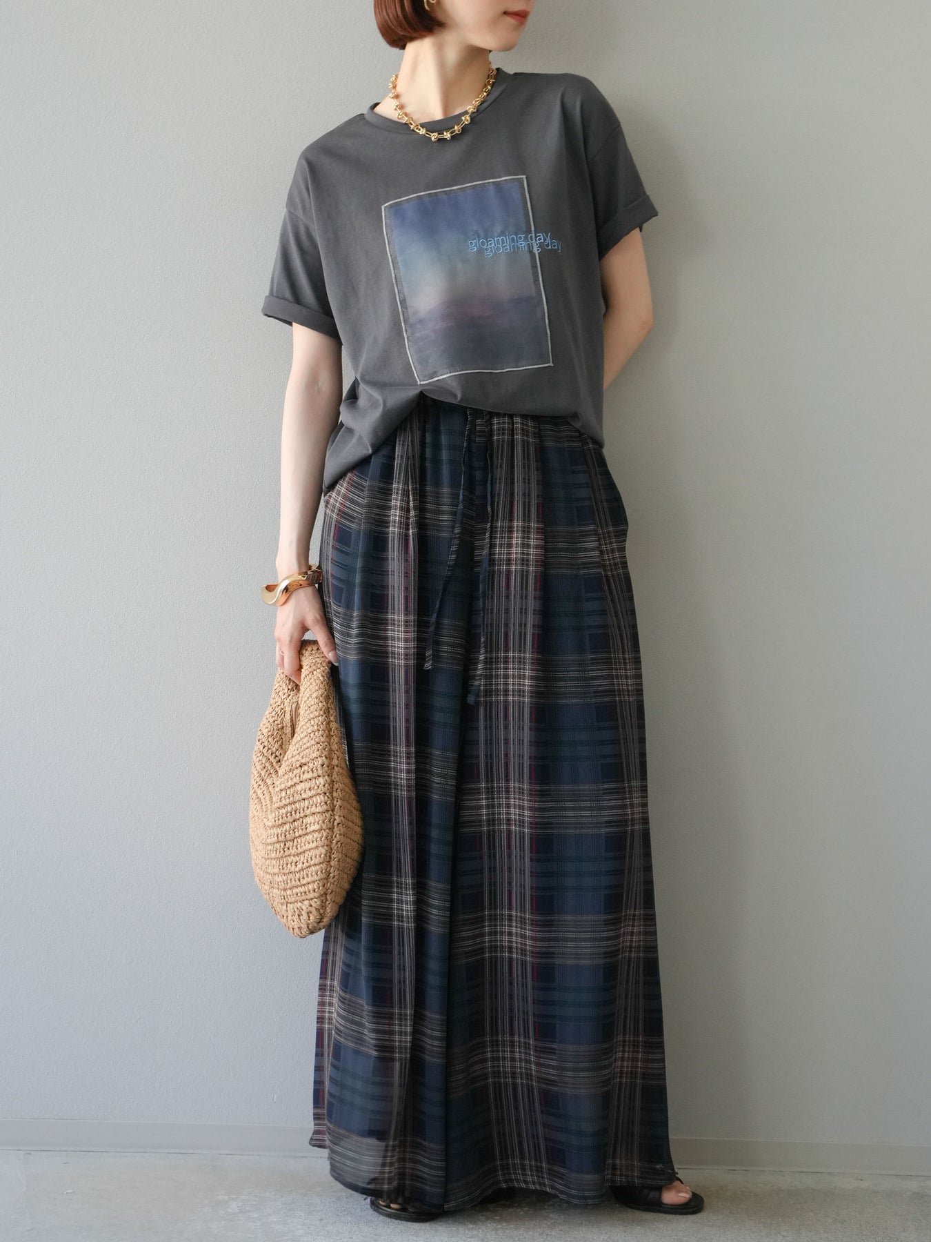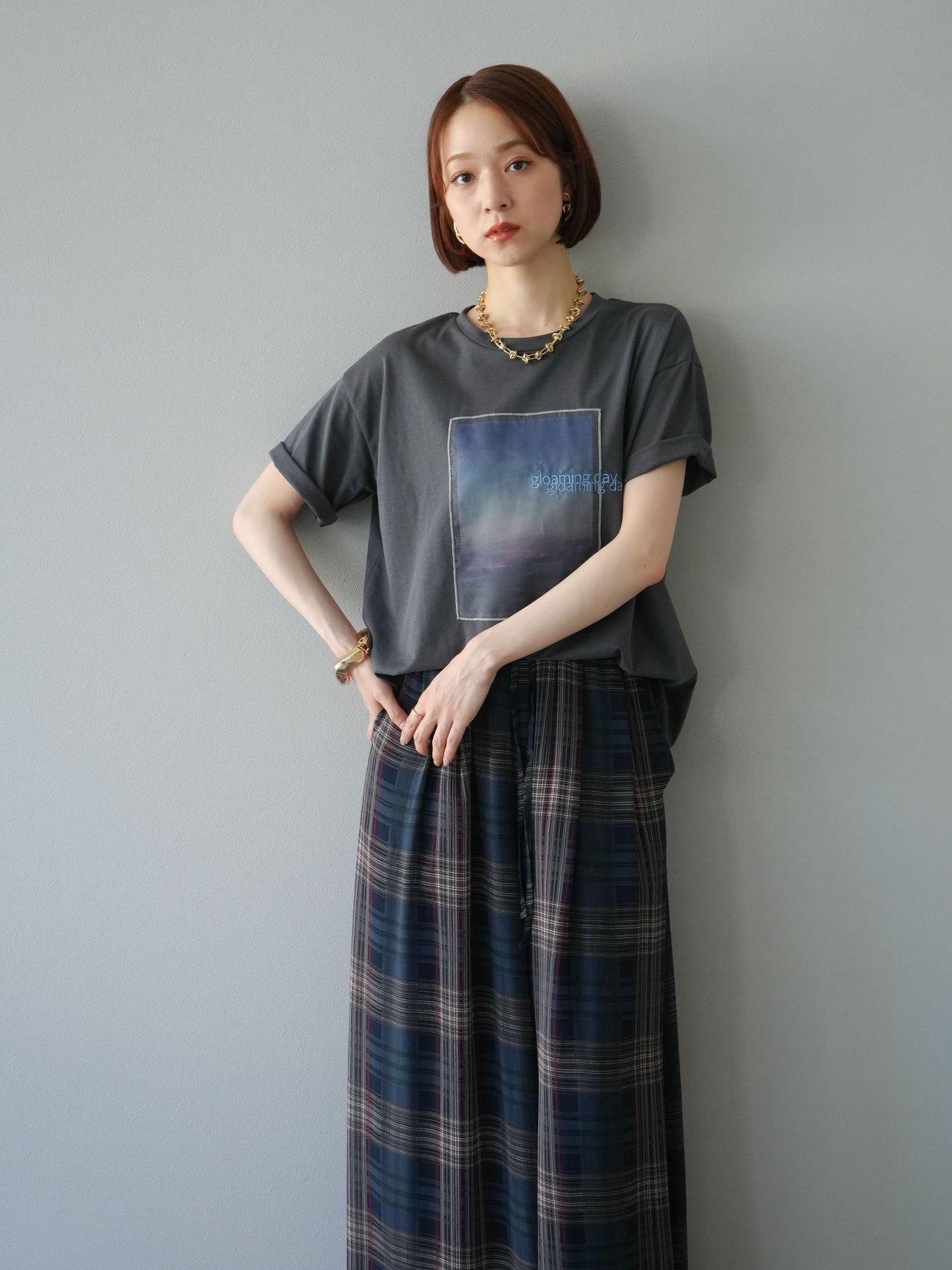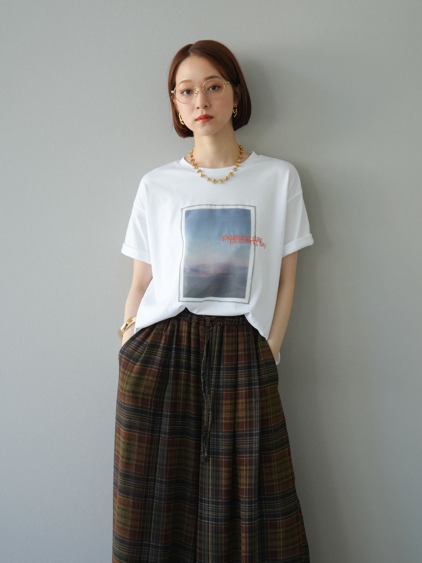 分層設計印花 T 卹,薄紗上層疊著奇妙的圖案。 透明薄紗覆蓋在印花上,營造出深度和立體感。 適度寬鬆的廓形,無論單獨穿著或疊穿都很好看。 這是一件休閒又前衛、非常精緻的作品。 ※除下裝、吊帶背心(內衣)以外的商品均不含內衣。