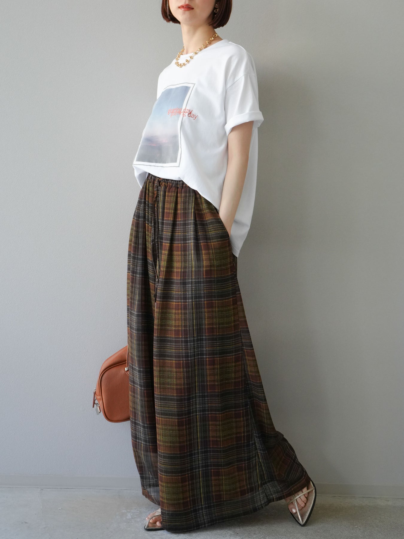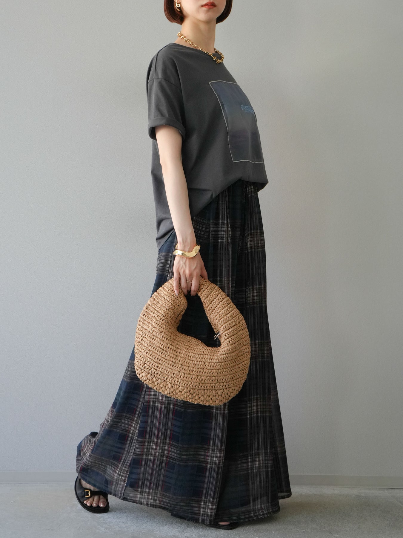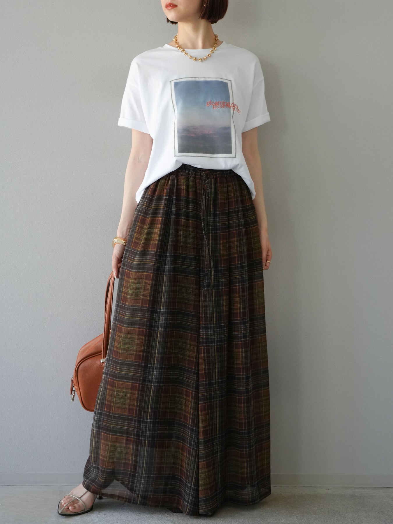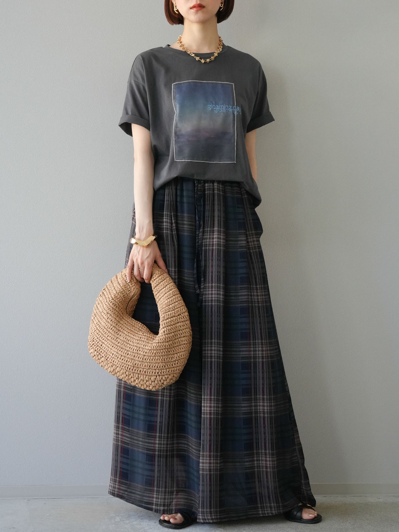 分層設計印花 T 卹,薄紗上層疊著奇妙的圖案。 透明薄紗覆蓋在印花上,營造出深度和立體感。 適度寬鬆的廓形,無論單獨穿著或疊穿都很好看。 這是一件休閒又前衛、非常精緻的作品。 ※除下裝、吊帶背心(內衣)以外的商品均不含內衣。