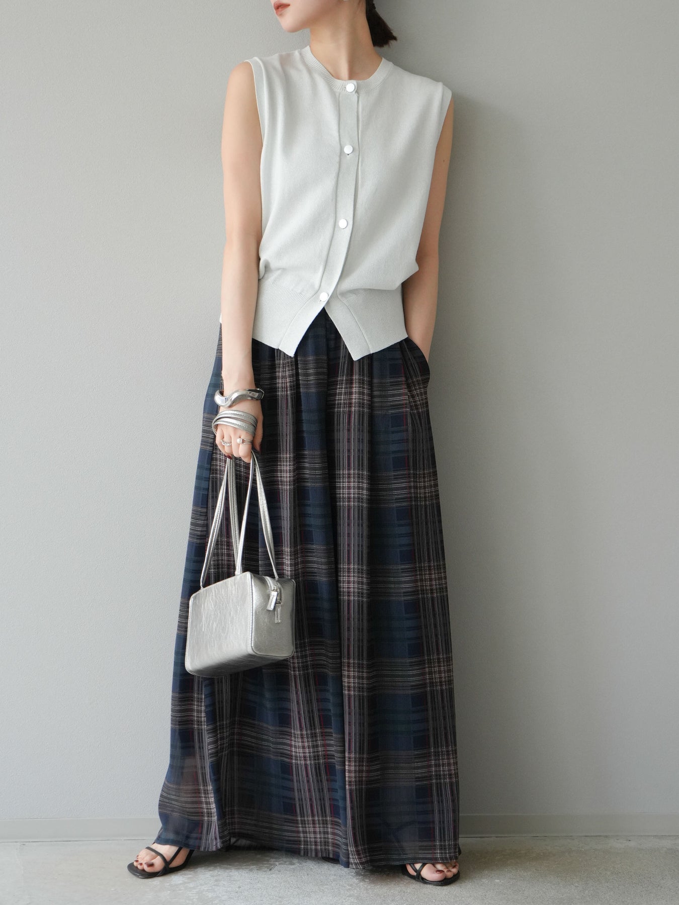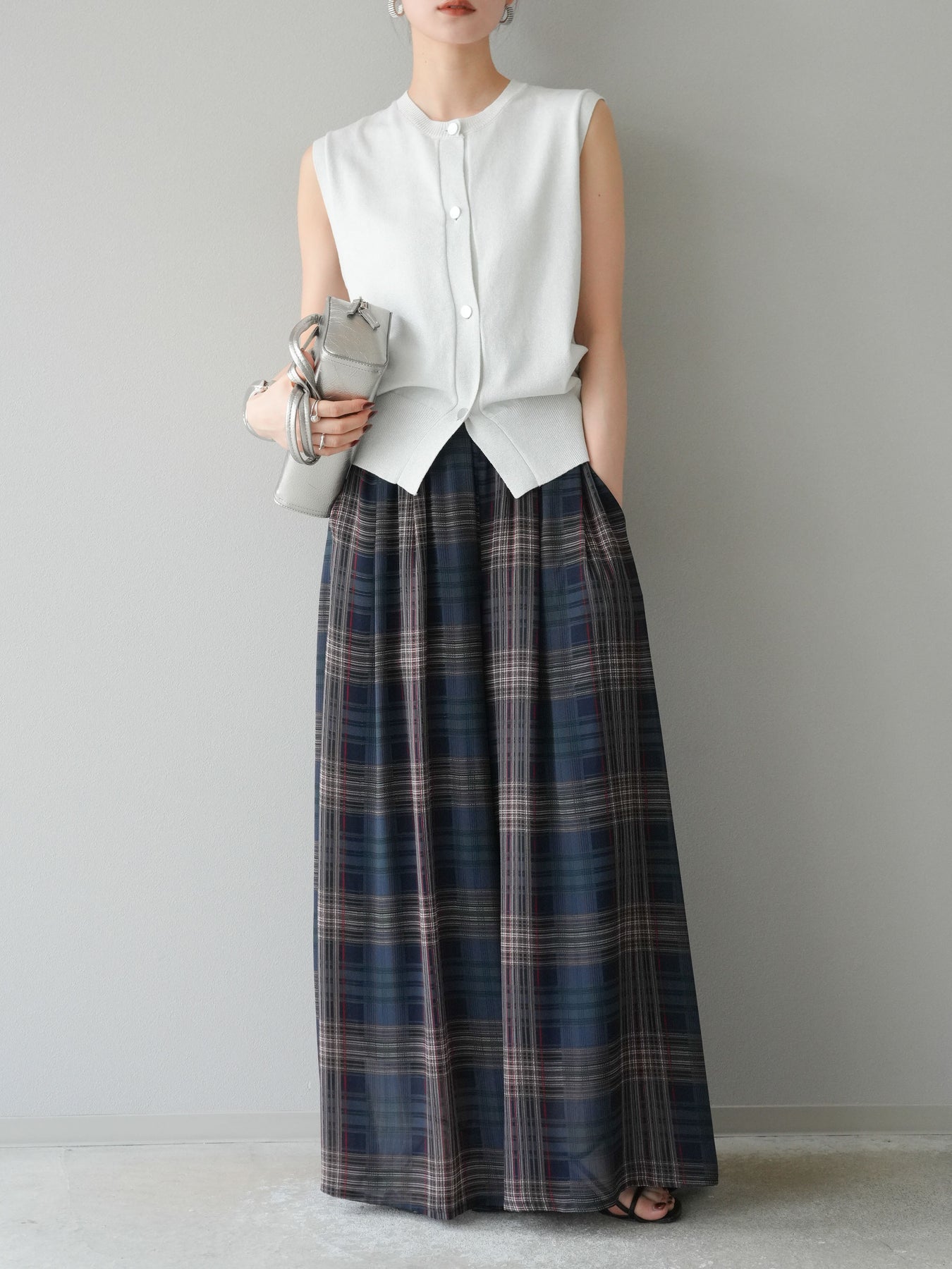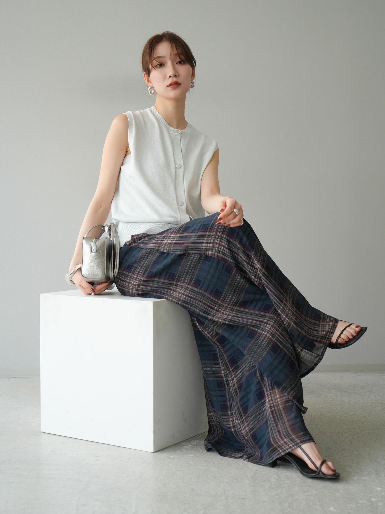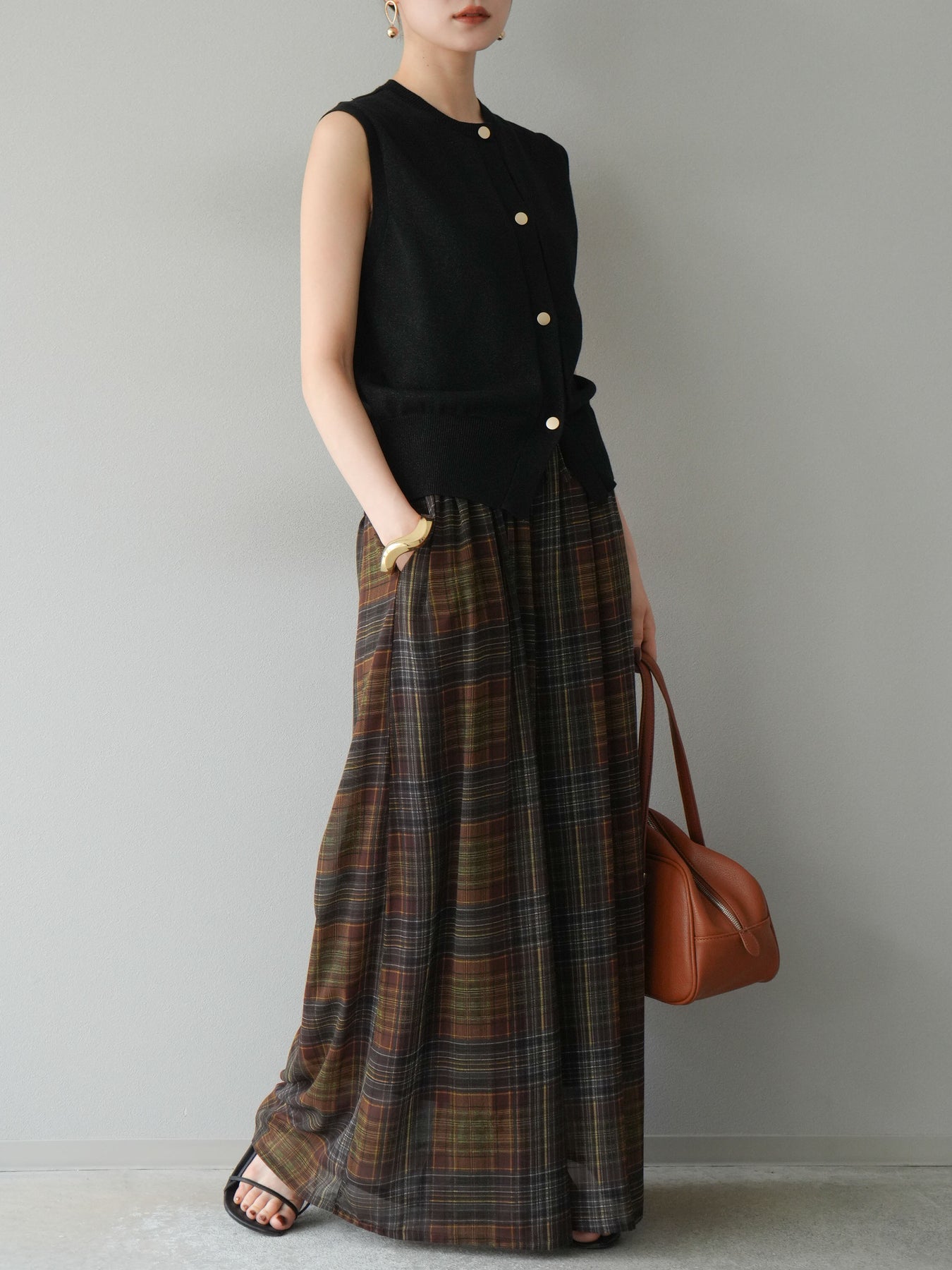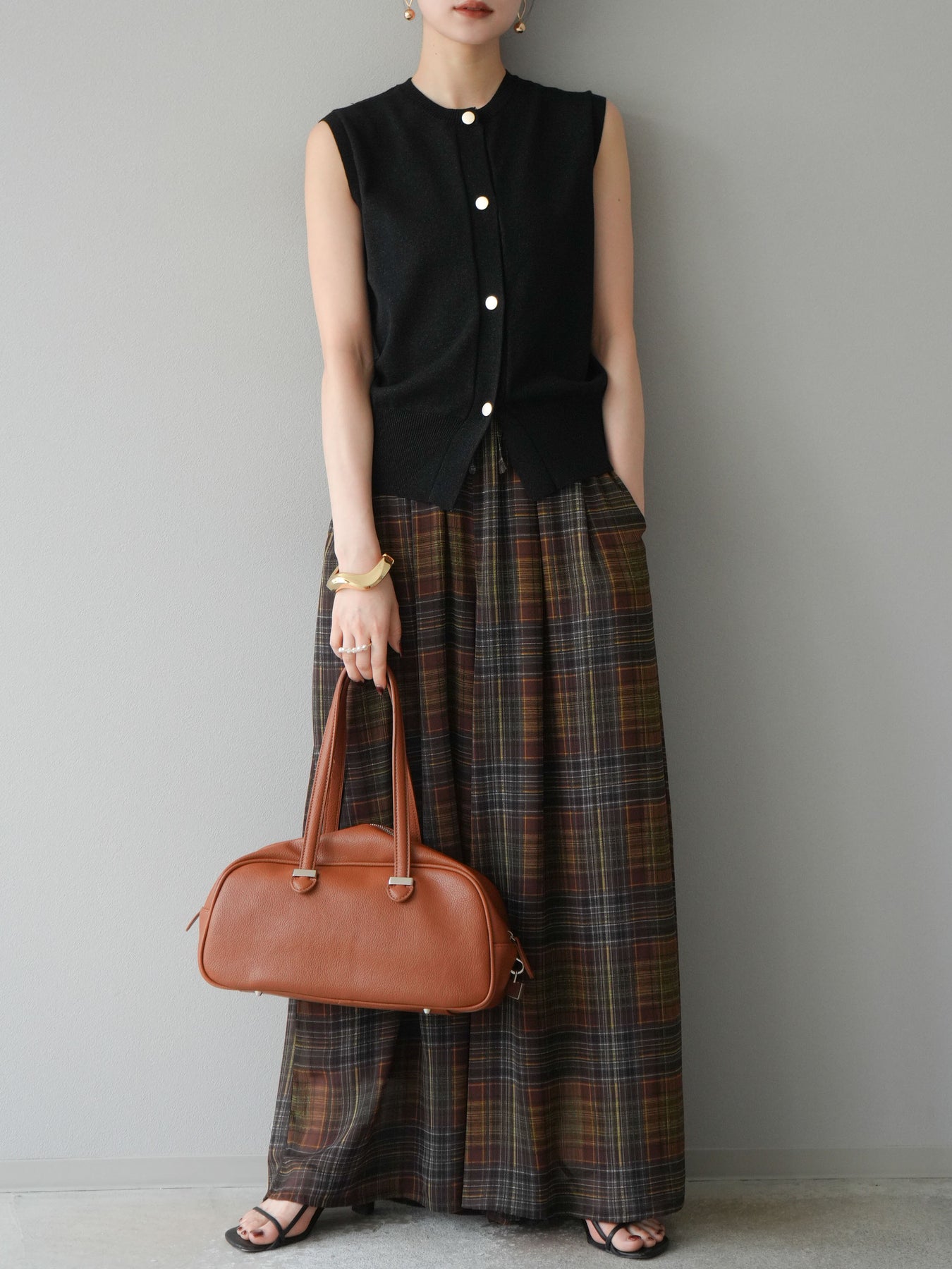 無袖針織背心,帶有微妙的閃光,閃耀優雅。 正面的金屬紐扣增添了經典的點綴,營造出簡約優雅的外觀。 它由柔軟的針織材料製成,可以單獨穿著,也可以與襯衫或剪裁上衣搭配。 該設計允許您將其在前面敞開作為背心穿著,使其成為可以在任何季節穿著的多功能服裝。 ※除下裝、吊帶背心(內衣)以外的商品均不含內衣。