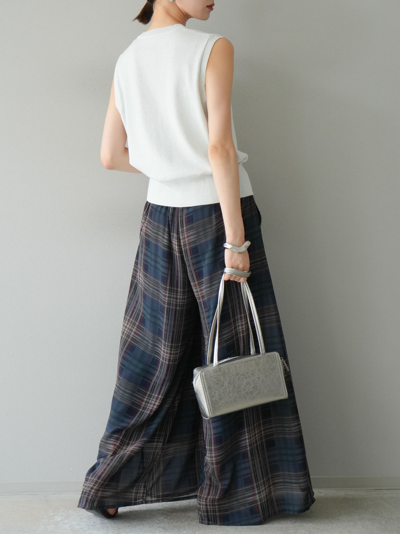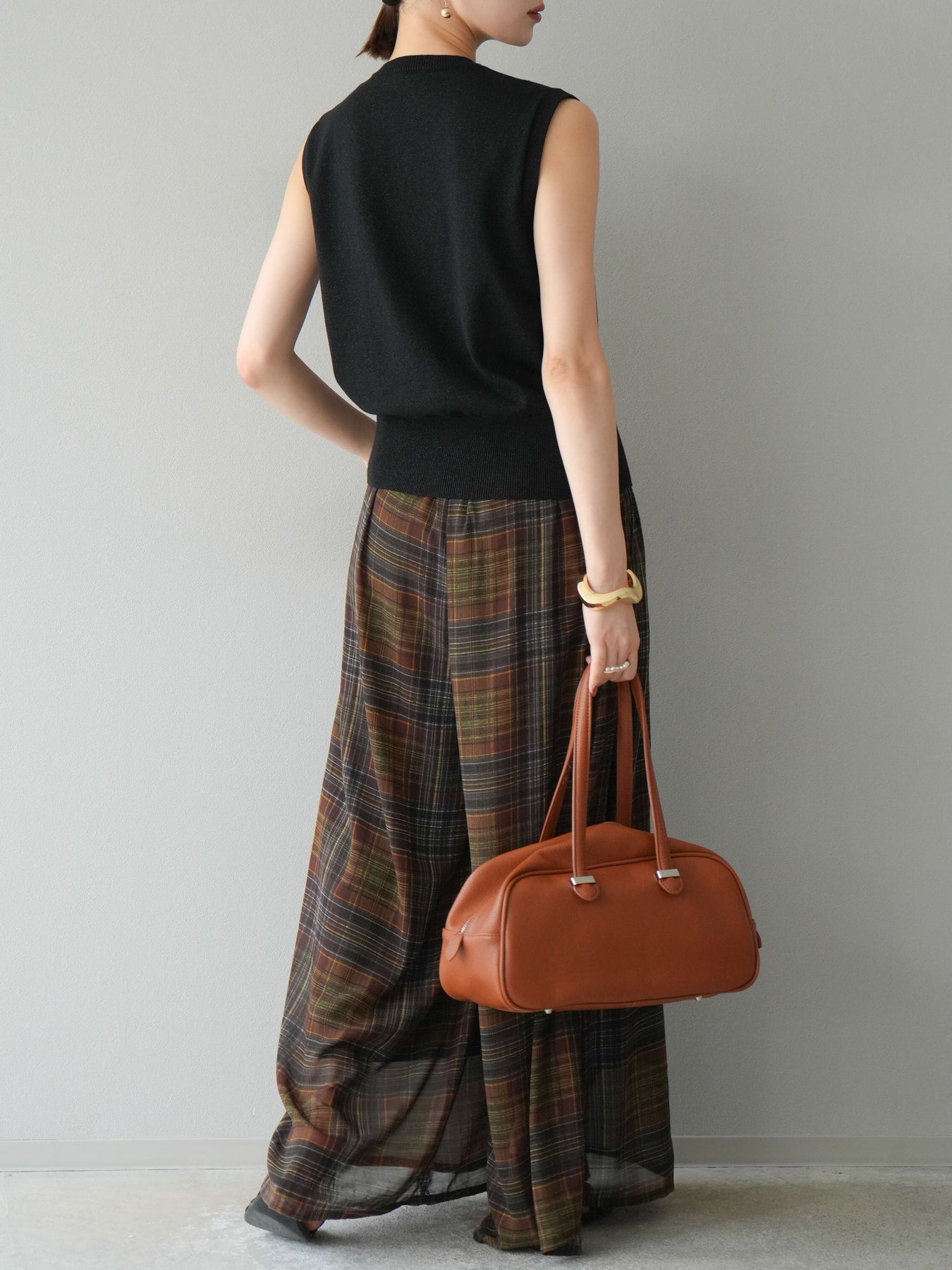 這款寬鬆褲休閒成熟,深色格紋圖案搭配透視布料,更能襯托出季節的氛圍。適度的透明度營造出輕盈飄逸的感覺,是一條既能提升時尚感又不失休閒感的褲子。 腰部採用全彈性設計,並配有抽繩,穿著舒適。布料厚實,垂墜感十足,讓您隨動作優雅擺動。 這是一款引人注目的單品,只需搭配一件簡單的上衣即可為您的服裝增添亮點。