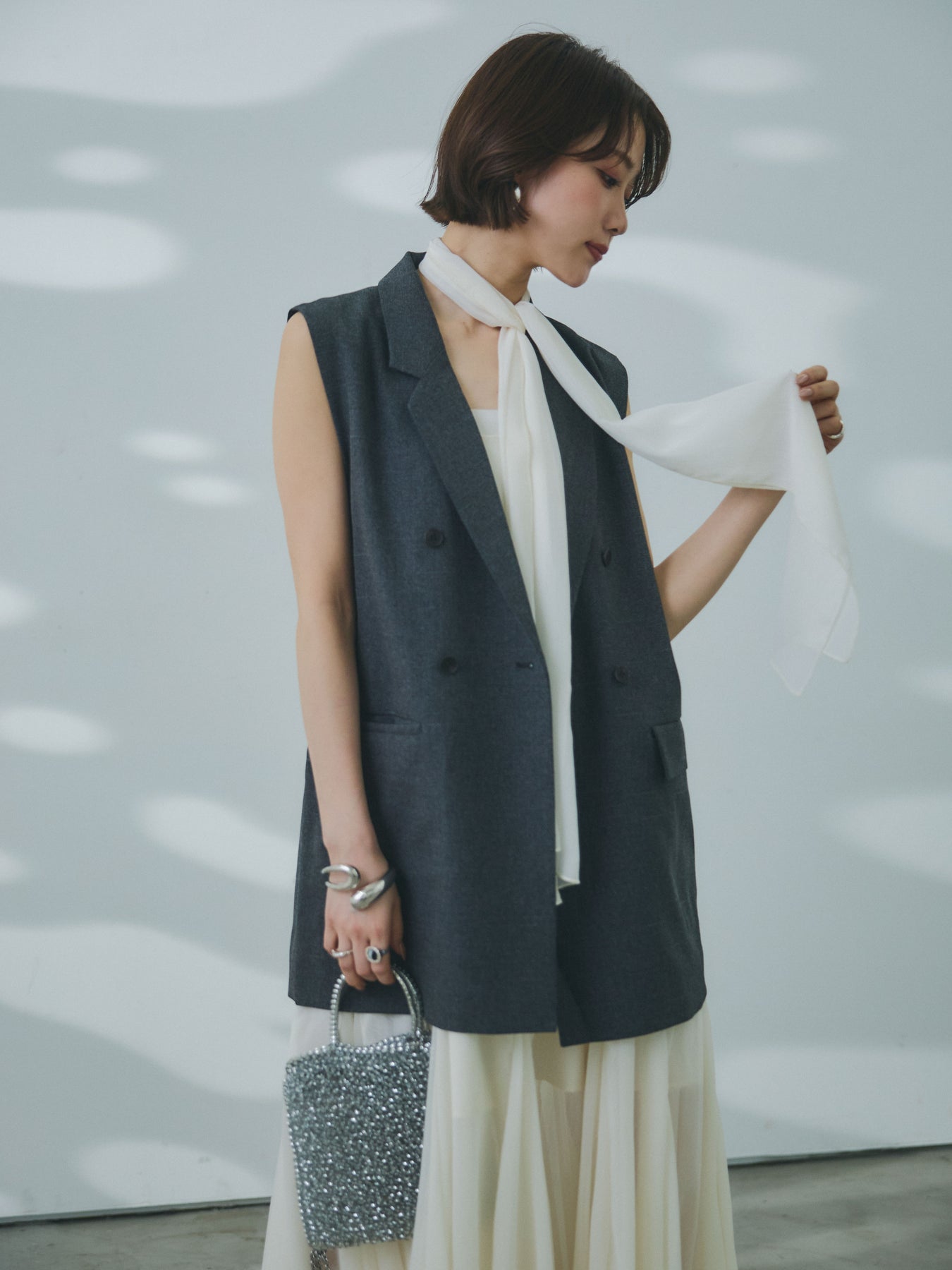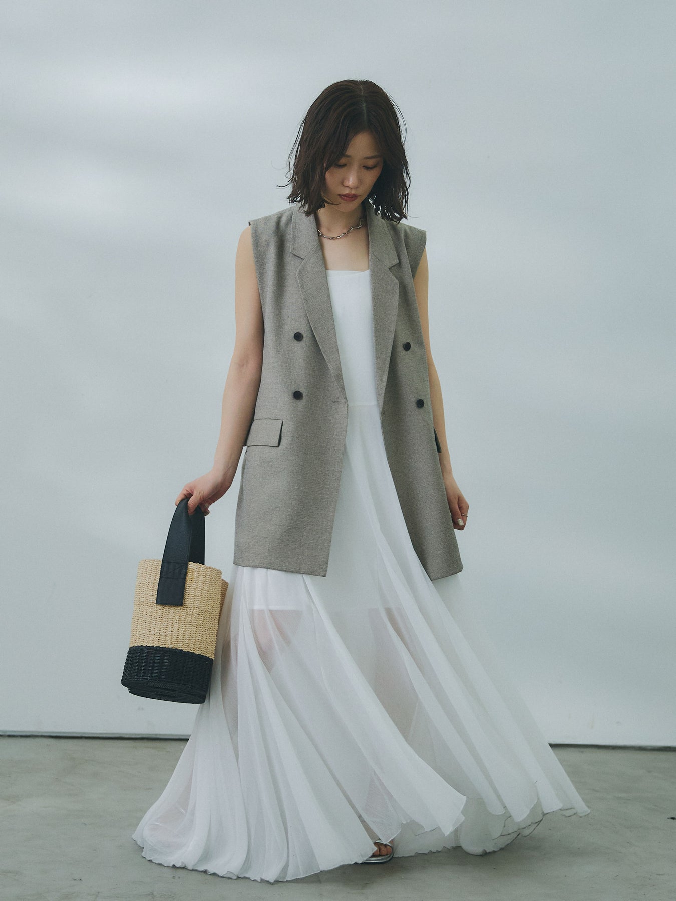 A camisole dress with a light, sheer material and a striking bow tie design. The delicate sheer fabric sways softly with movement, adding a touch of effortless elegance and glamour to your styling。 feminine and sophisticated look. The moderately relaxed silhouette allows for comfortable wear, and it can be styled in various ways depending on how you layer it with innerwear. It's perfect for wearing on its layer it with innerwear. It's perfect for wearing on its skirts, making it versatile for a wide range of occasions, from daily wear to going out. *Please note that innerwear is not included with any items other than bottoms and camisoles (innerwear).