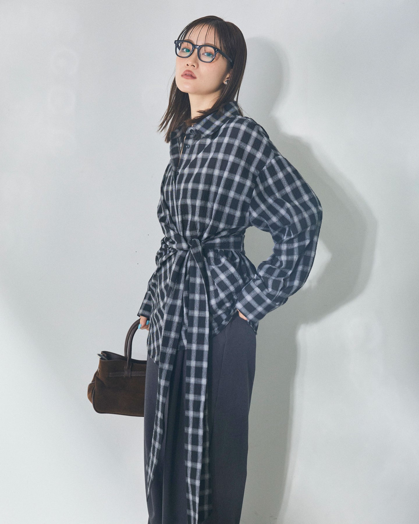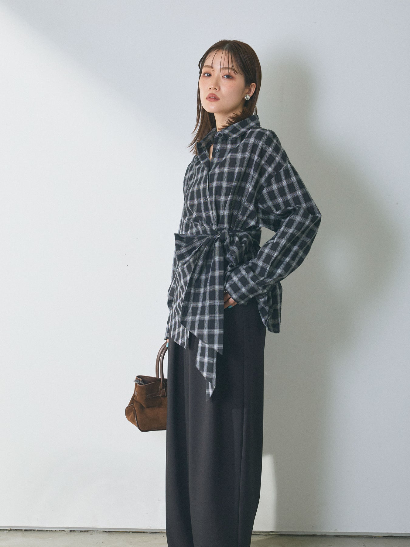 [予約]ウエストアシメリボンシャツ/blackcheck