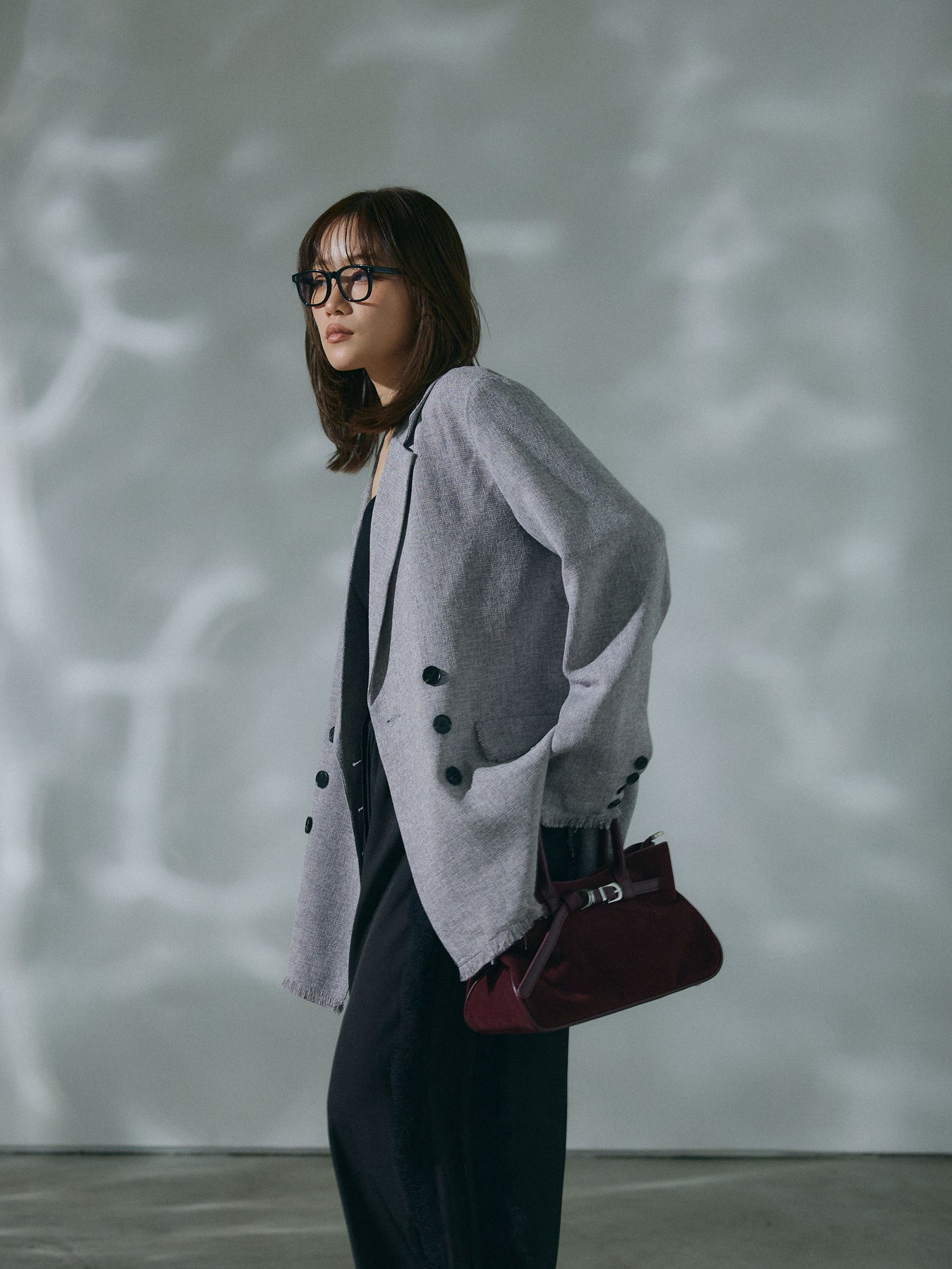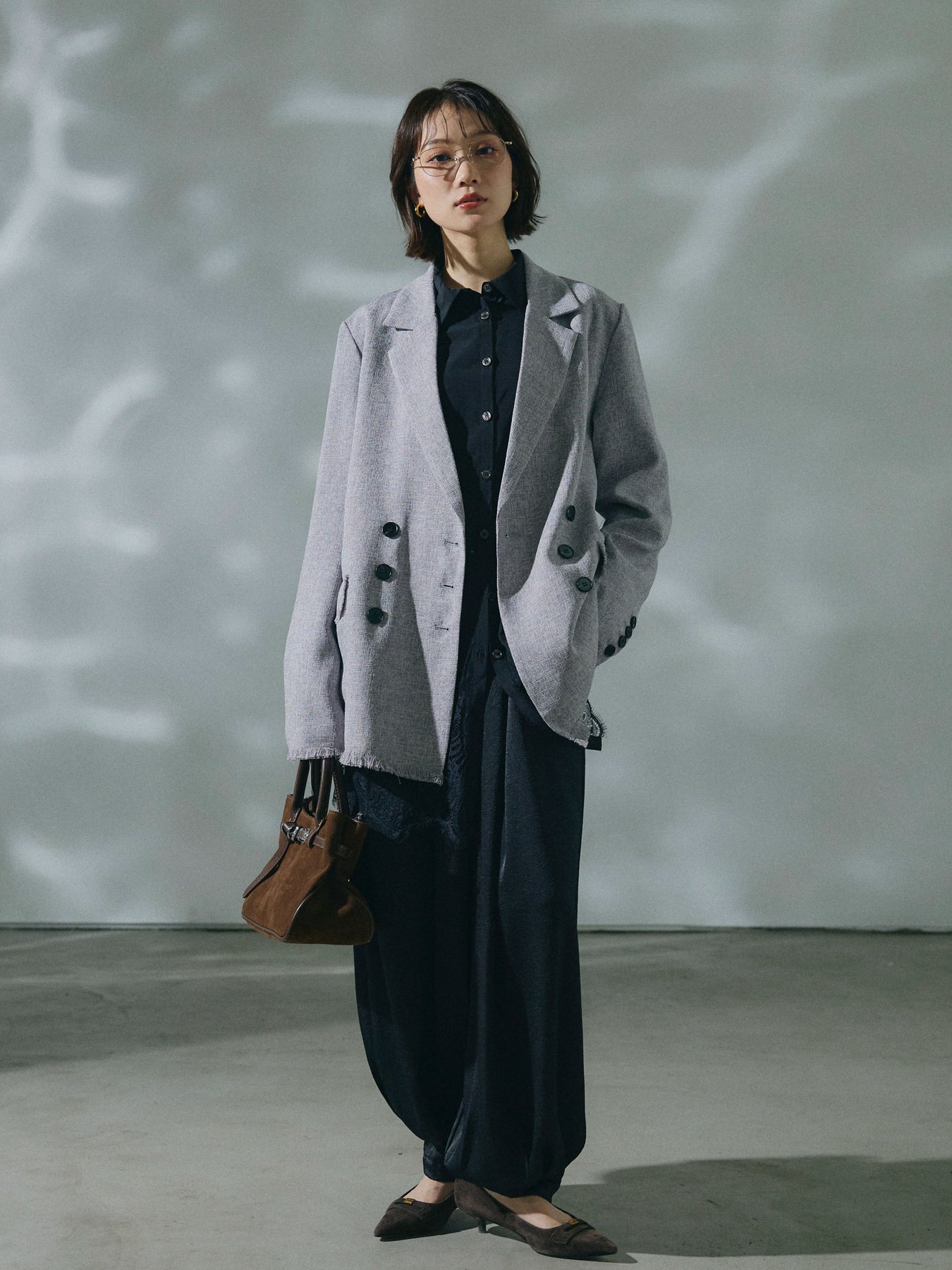 凹凸感のあるスラブツイード素材が印象的な、フリンジディテール入りテーラージャケット。程よくきちんと感のあるシルエットに、裾や袖口のフリンジが抜け感をプラスし、羽織るだけでこなれたスタイリングが完成します。デニムなどのカジュアルアイテムからきれいめボトムスまで合わせやすく、オンオフ問わず活躍する一着です。