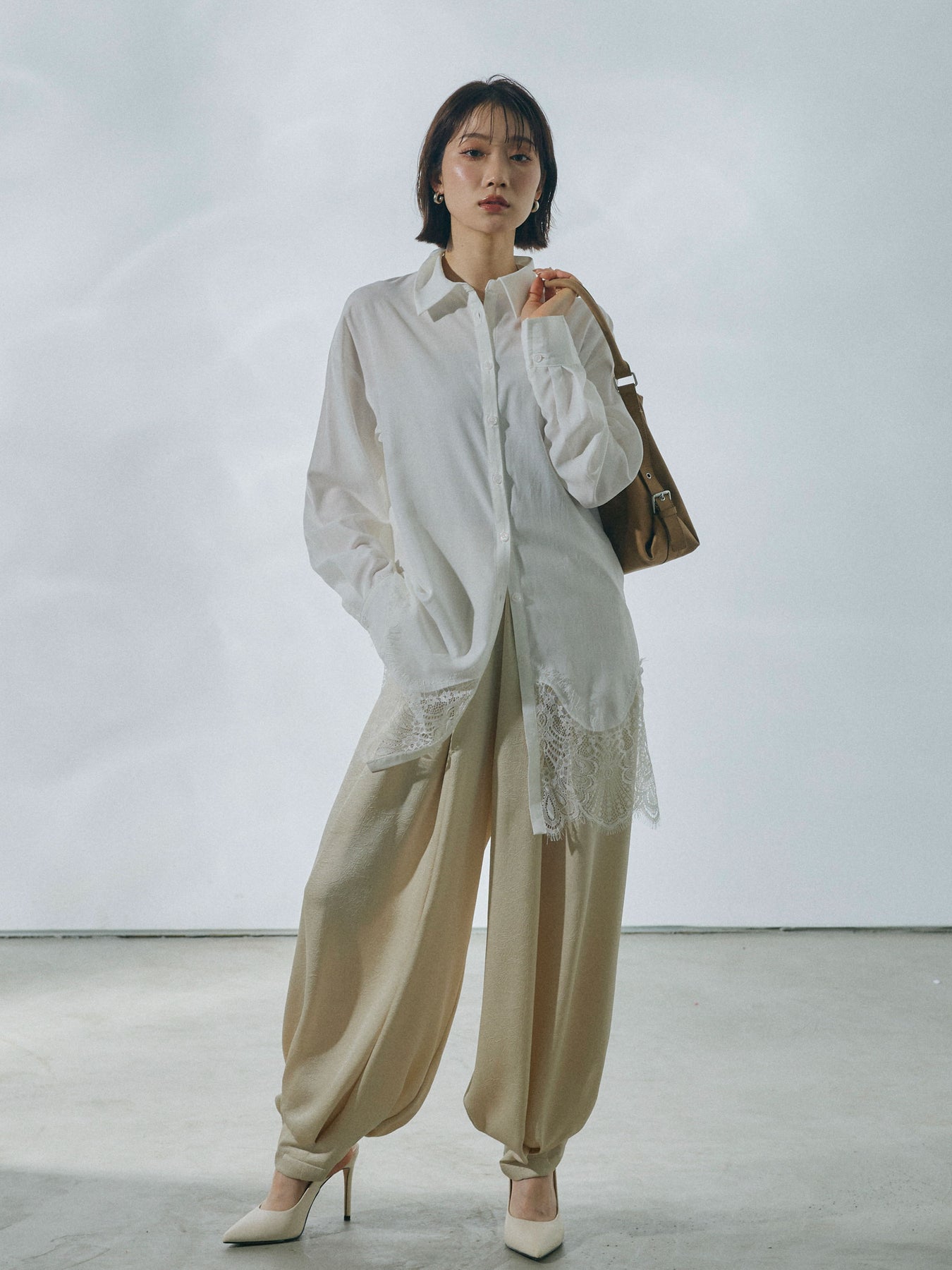 [予約]ワッシャーサテンタックジョガーパンツ/lightbeige