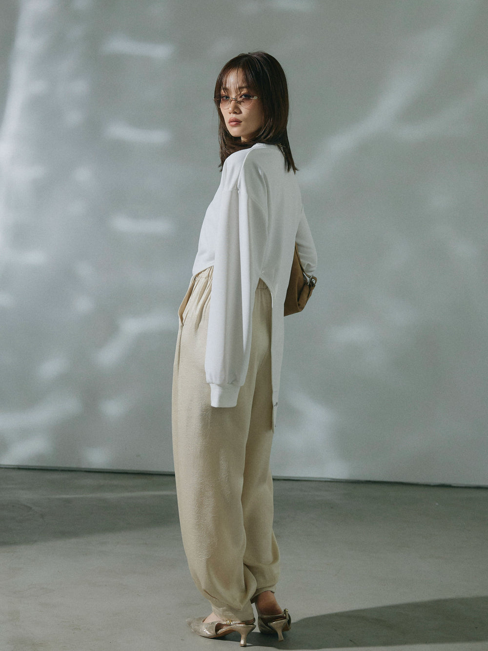 [予約]ワッシャーサテンタックジョガーパンツ/lightbeige