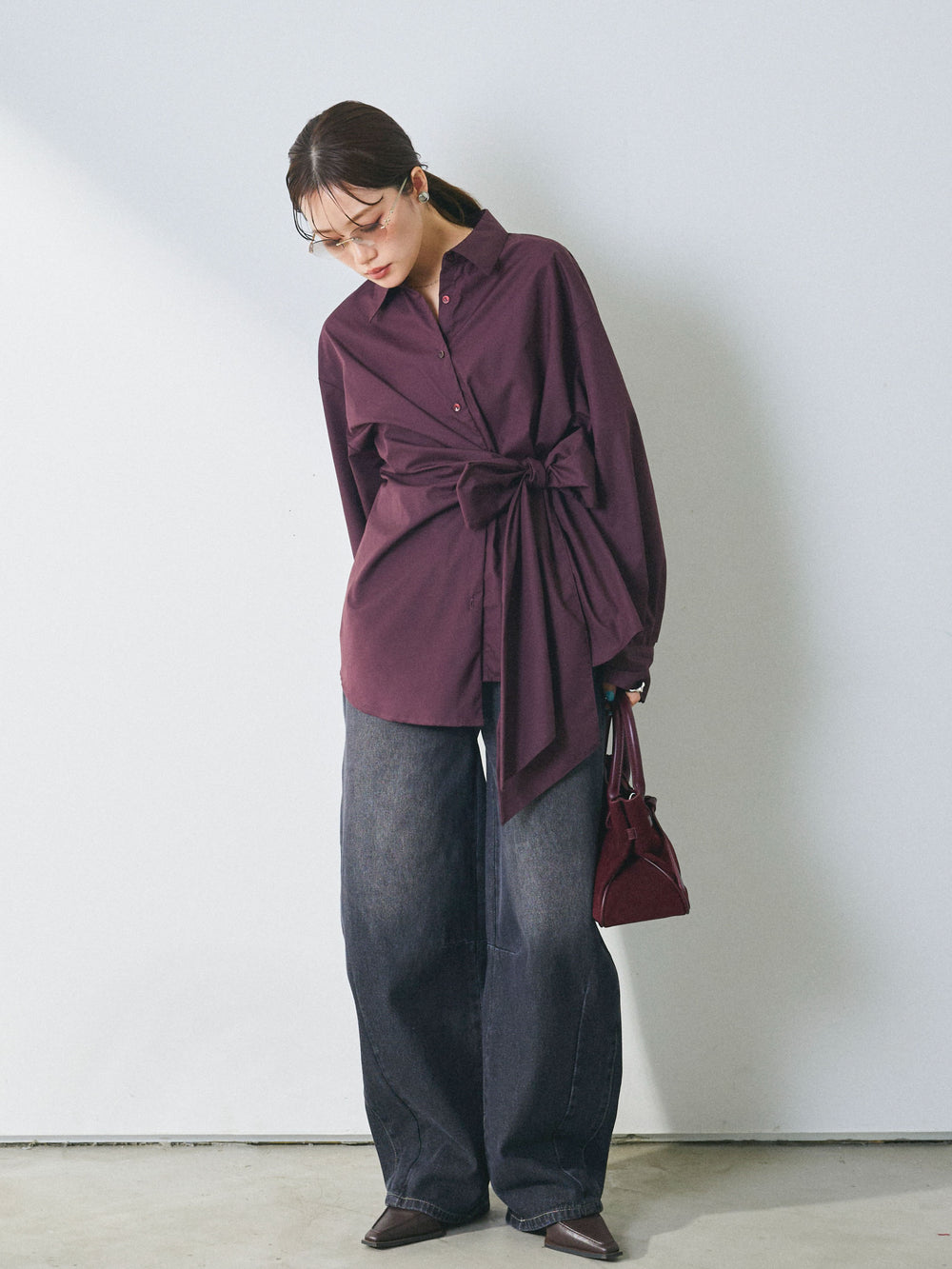 [予約]サイドピンタックレースイージーワイドパンツ/charcoal