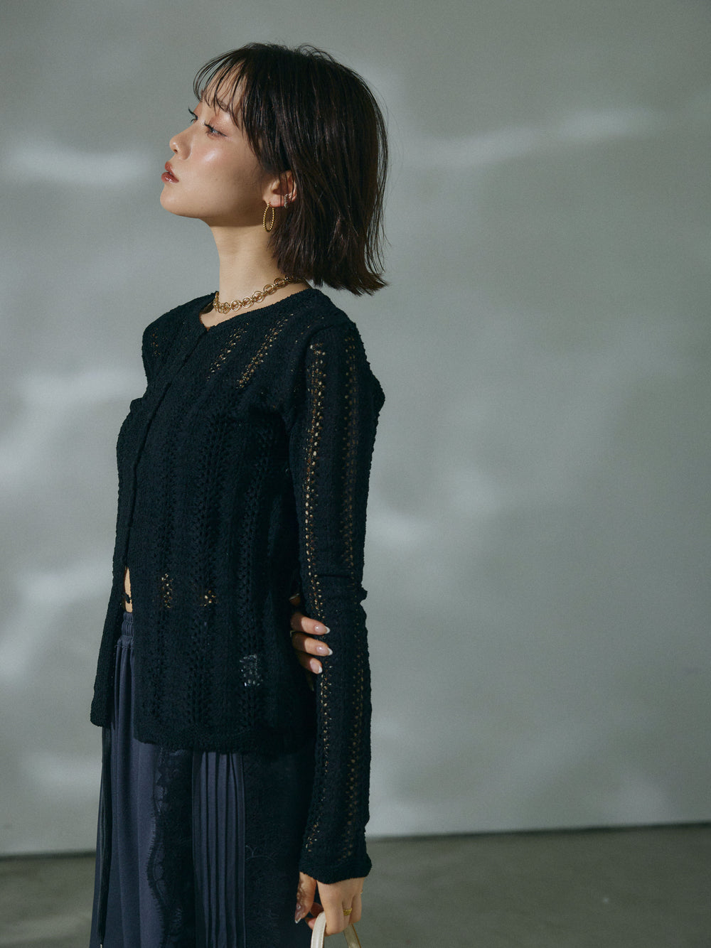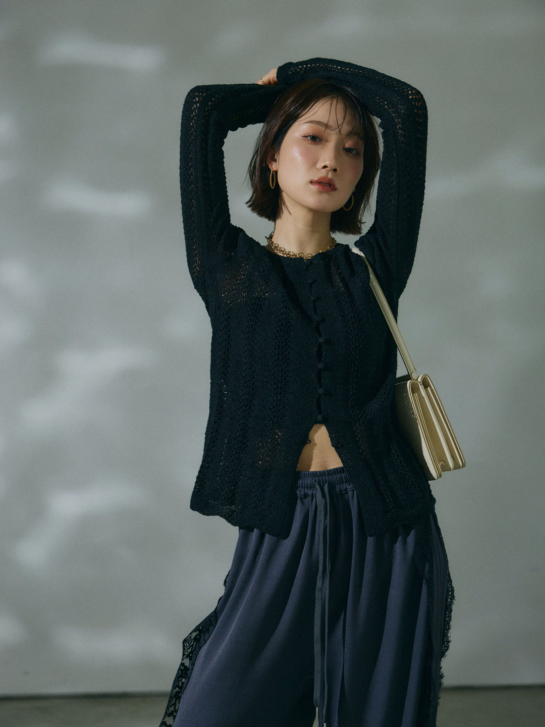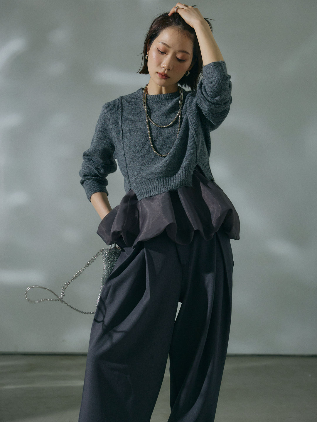 [予約]オーガンジーバルーンキャミアンサンブルニット/charcoal