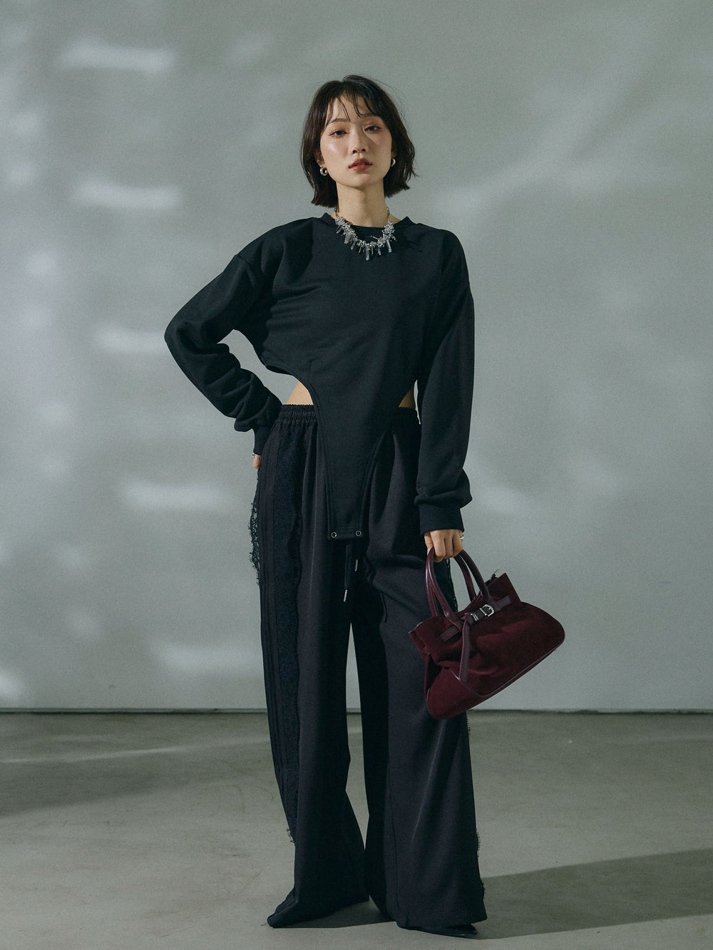[予約]サイドピンタックレースイージーワイドパンツ/black