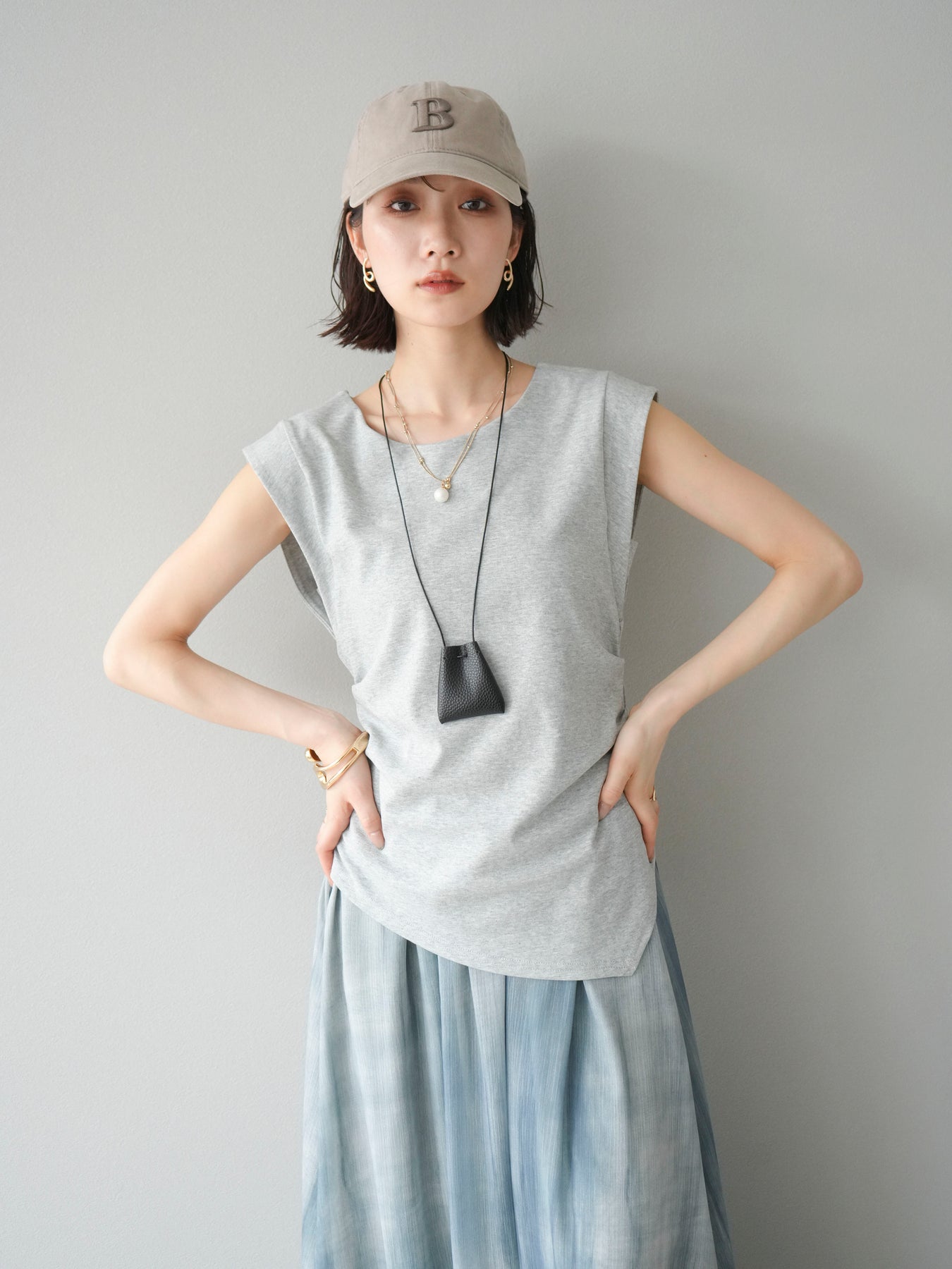 【預購】B logo刺繡棒球帽/灰褐色