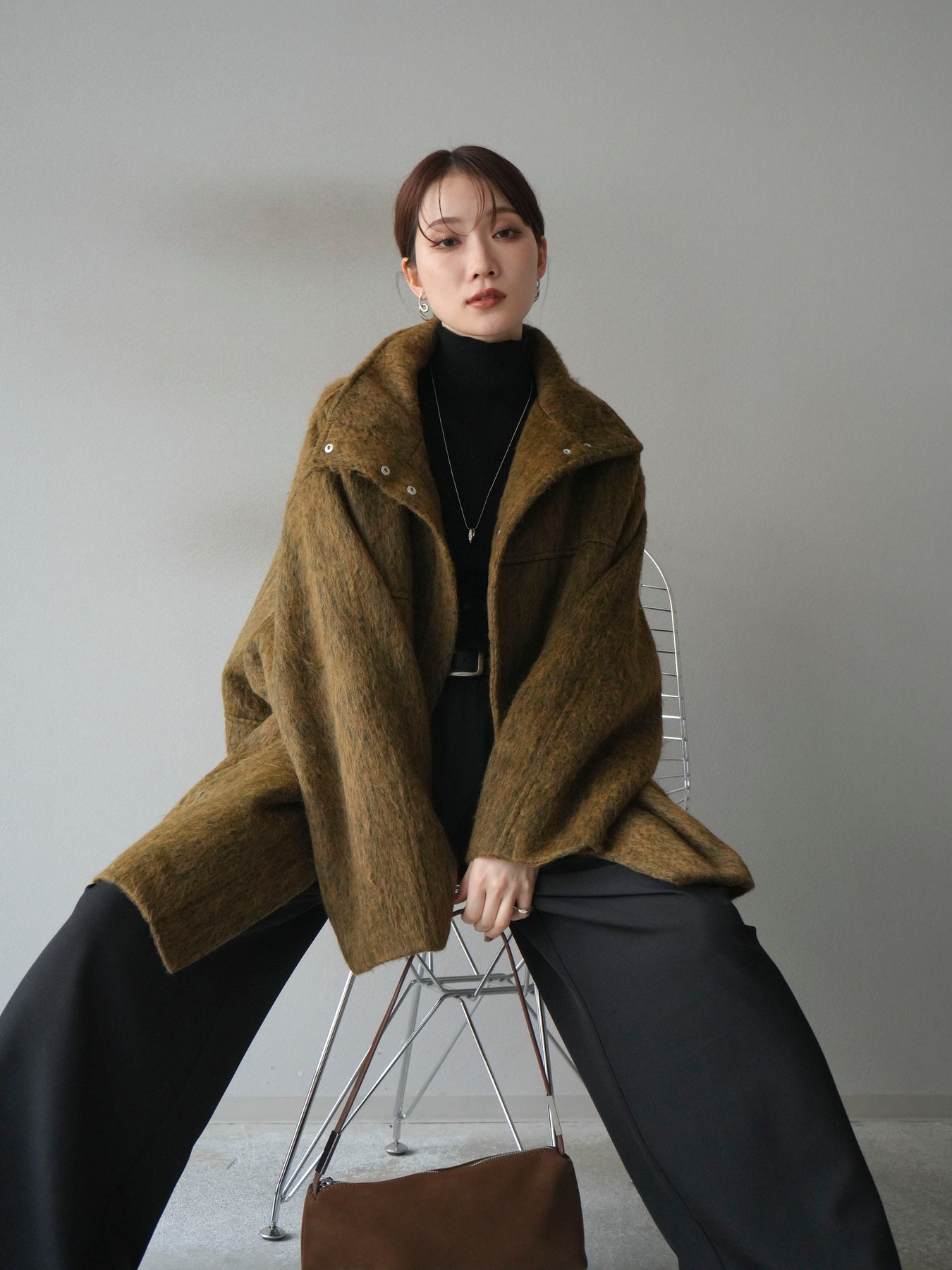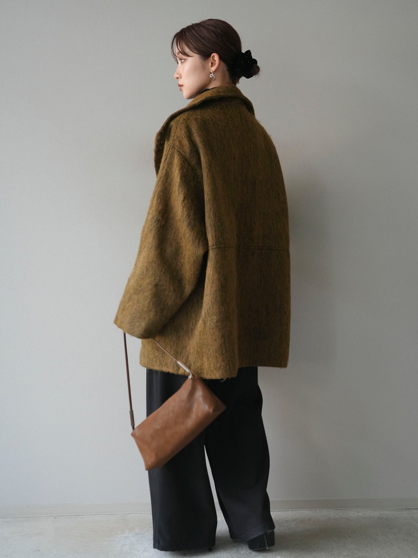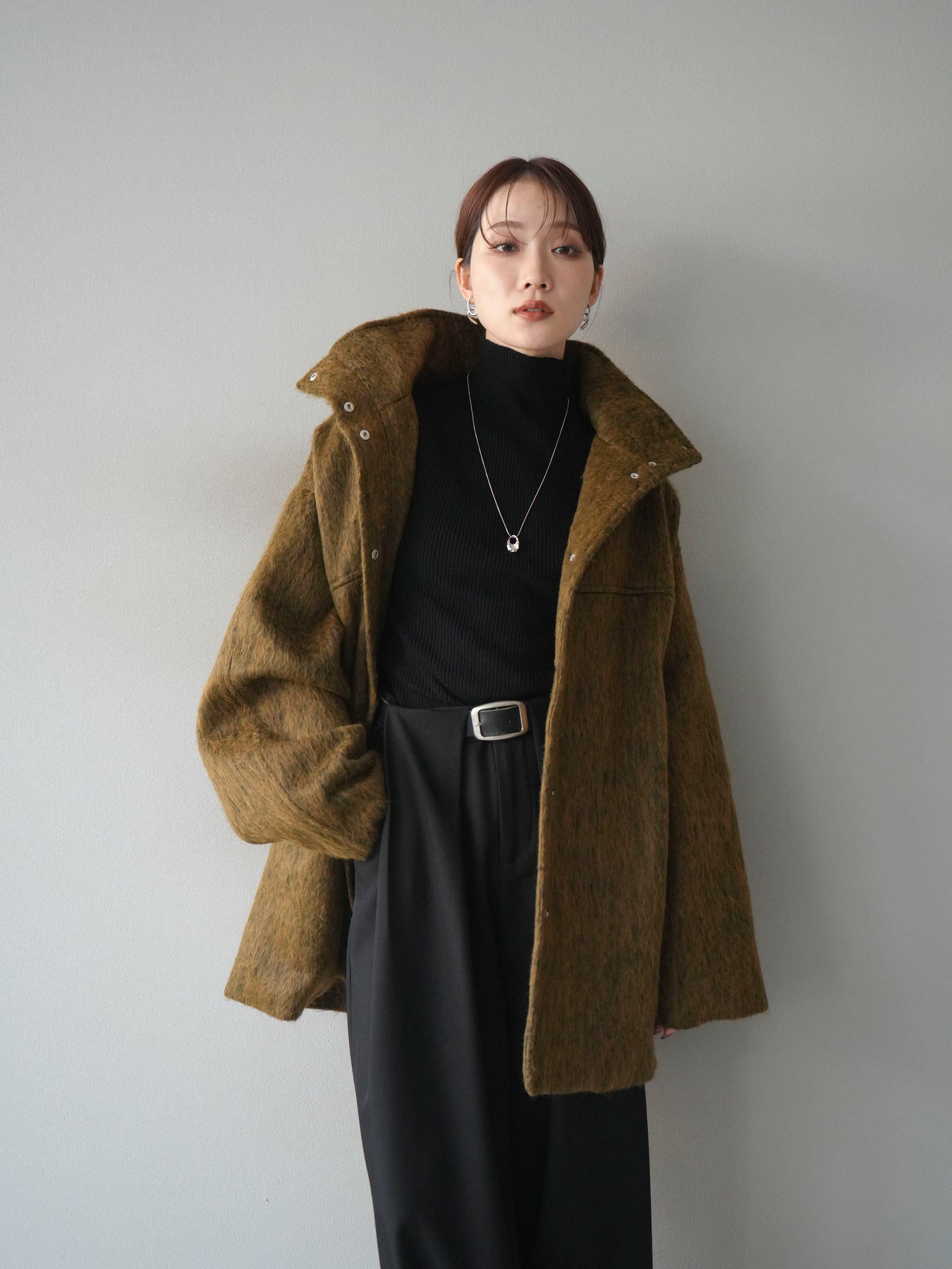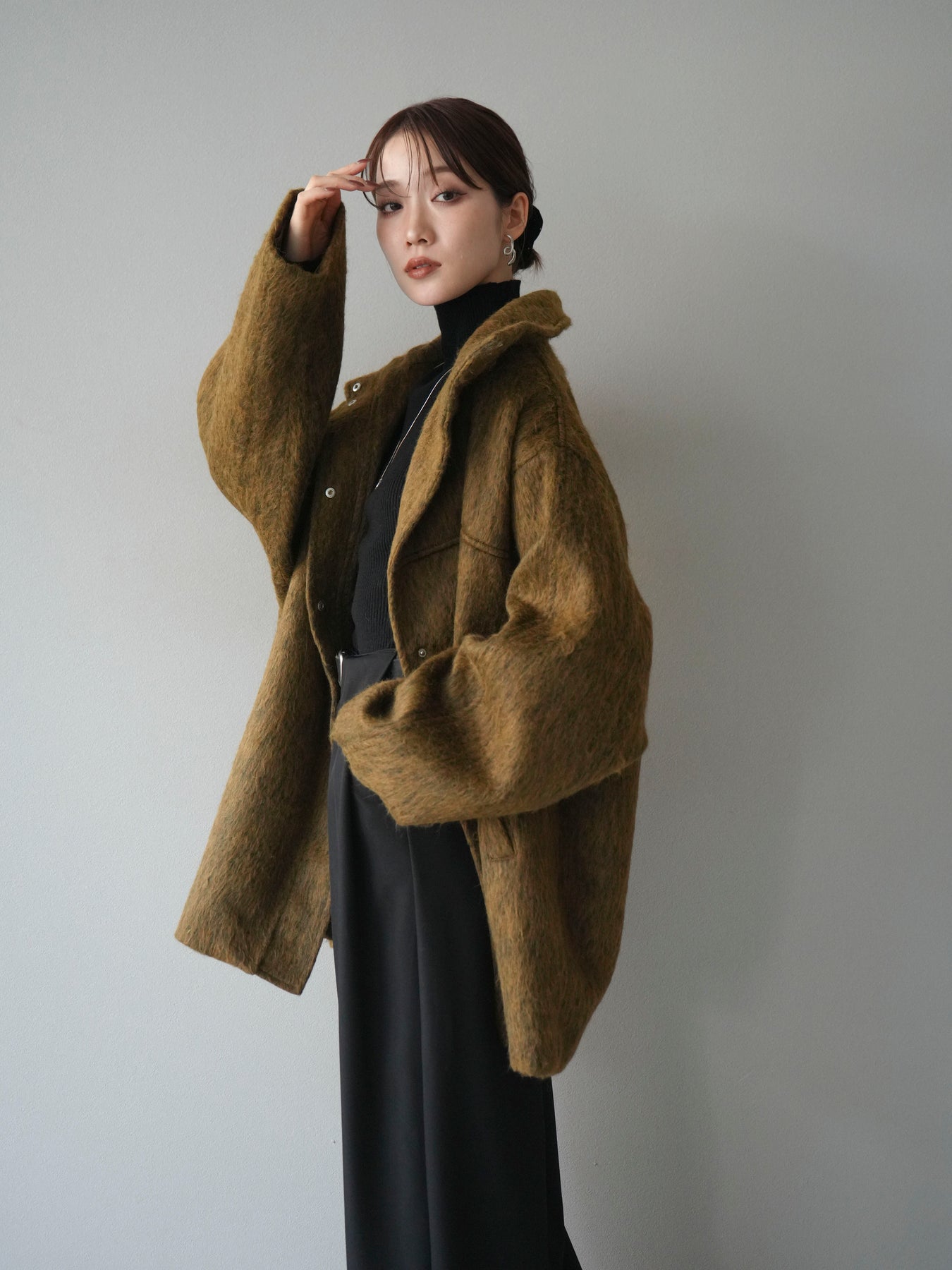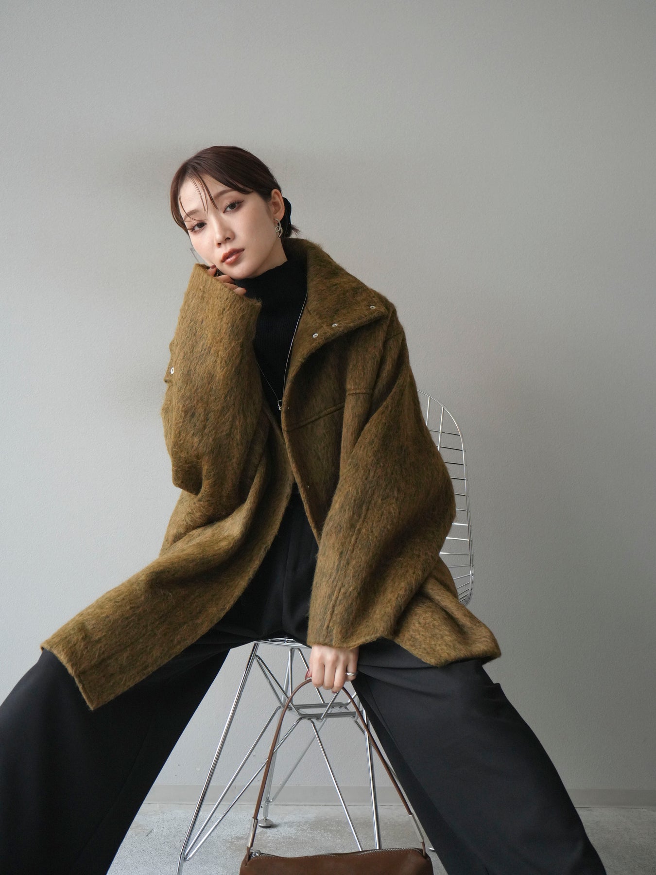 ふんわりとしたシャギー素材が上品な印象を与えるスタンドカラーコート。 柔らかな風合いと軽やかな着心地で、冬の装いにぬくもりをプラスします。 スタンドカラーが顔まわりをすっきり見せつつ、首元までしっかり暖かく包み込むデザイン。 ヒップまで隠れるミドル丈で、バランスの取りやすいシルエットも魅力です。 シンプルながらも素材の表情が引き立つ1着で、カジュアルにもきれいめにも合わせやすい万能アウターです。 ※ボトムス、キャミソール(インナー)以外の商品は一律でインナーは付属していません。
