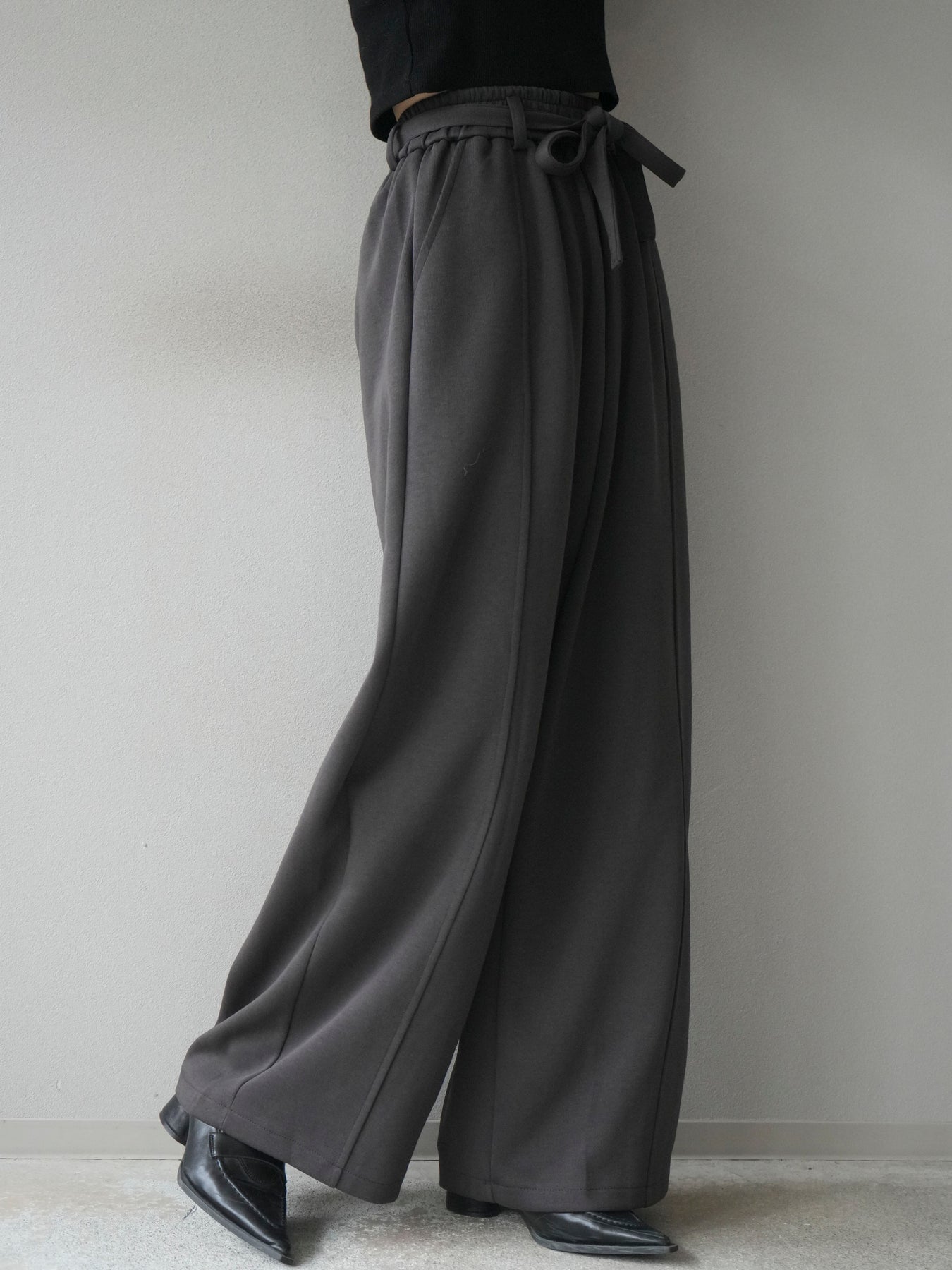 [予約]ベルト付スウェットワイドパンツ/charcoal