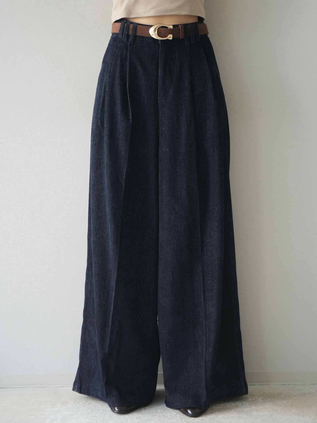 [予約]ベルト付ベルベットワイドパンツ/navy