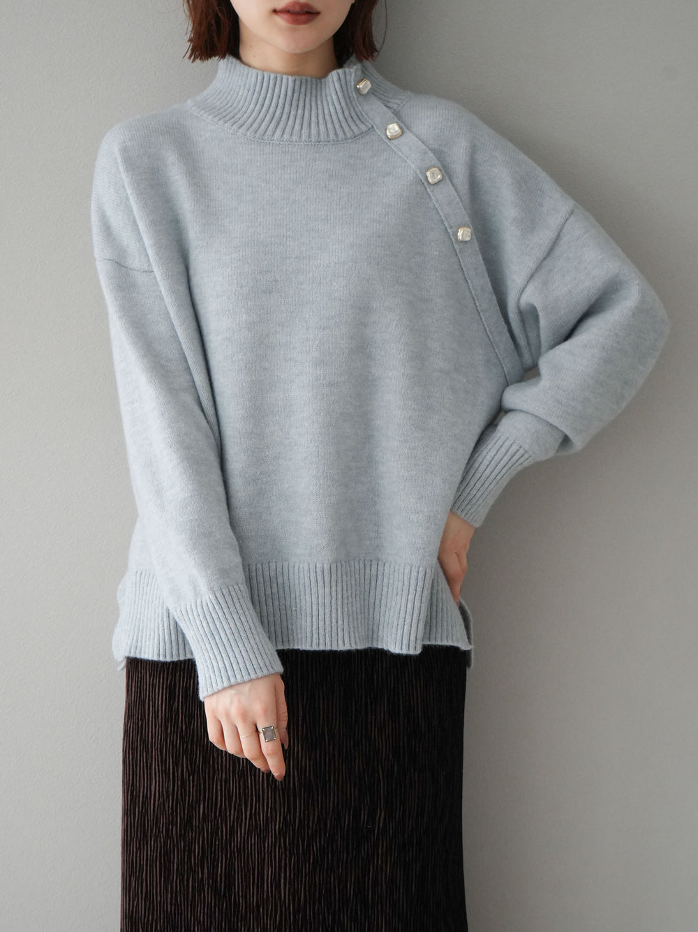 【預購】設計紐扣高領針織套頭衫/象牙色