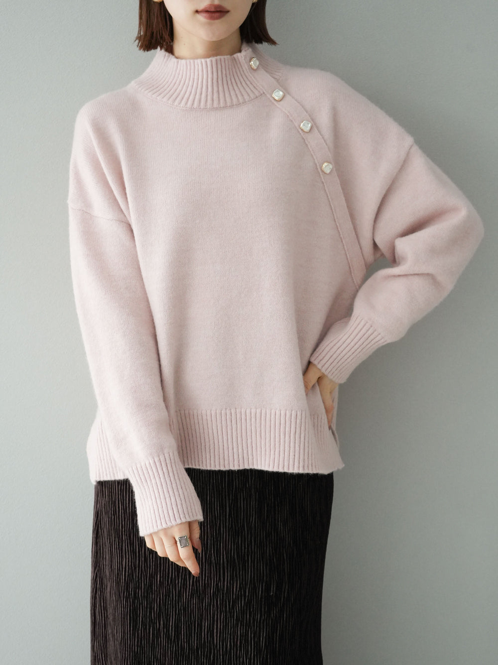【預購】設計紐扣高領針織套頭衫/粉紅色