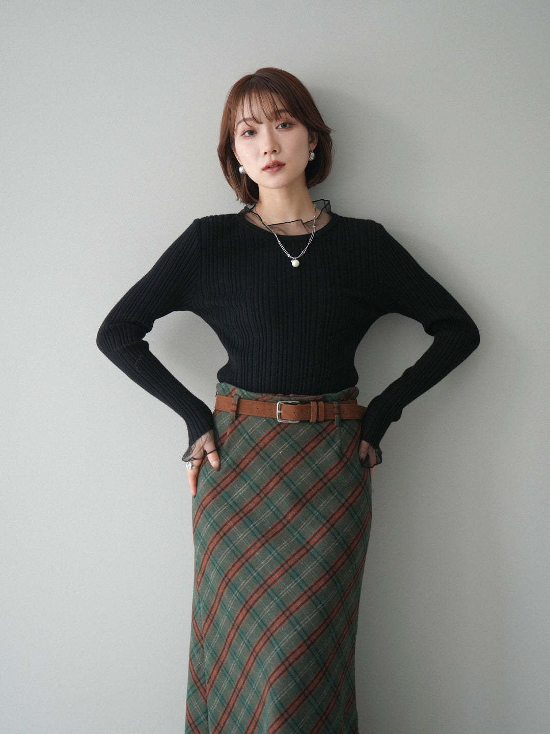 [予約]ブークレバイカラータイトニットスカート/チャコール