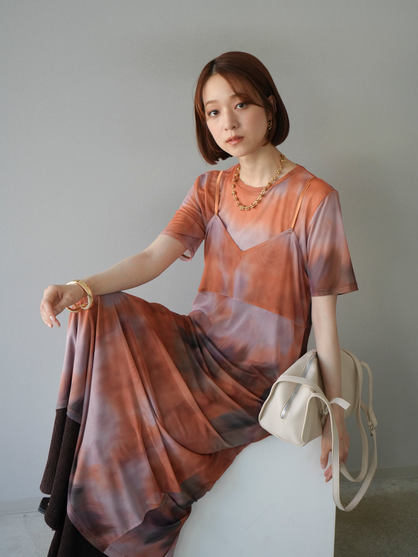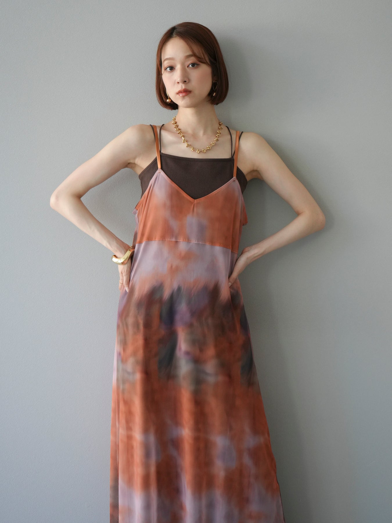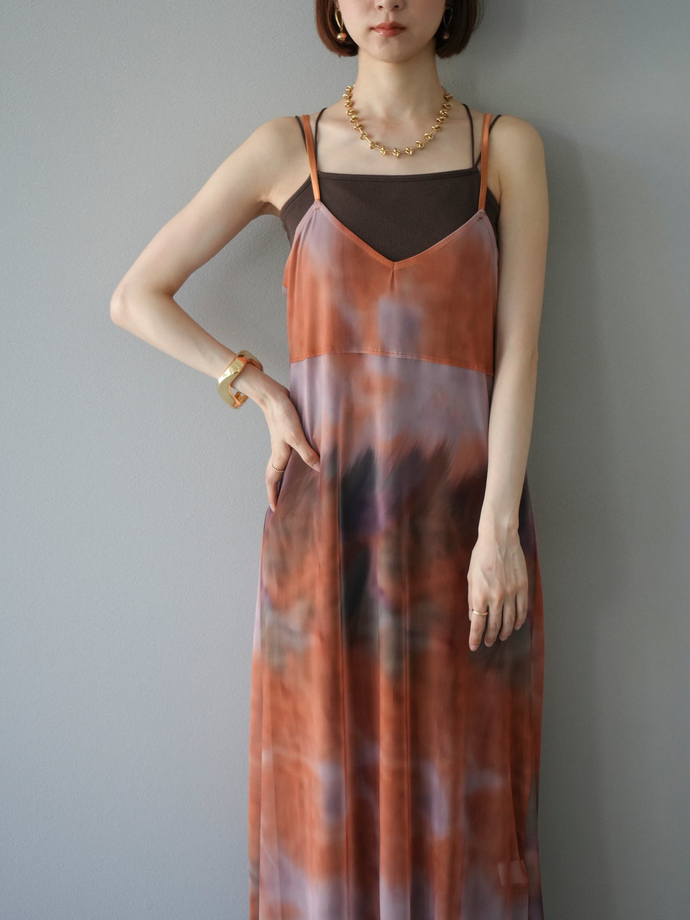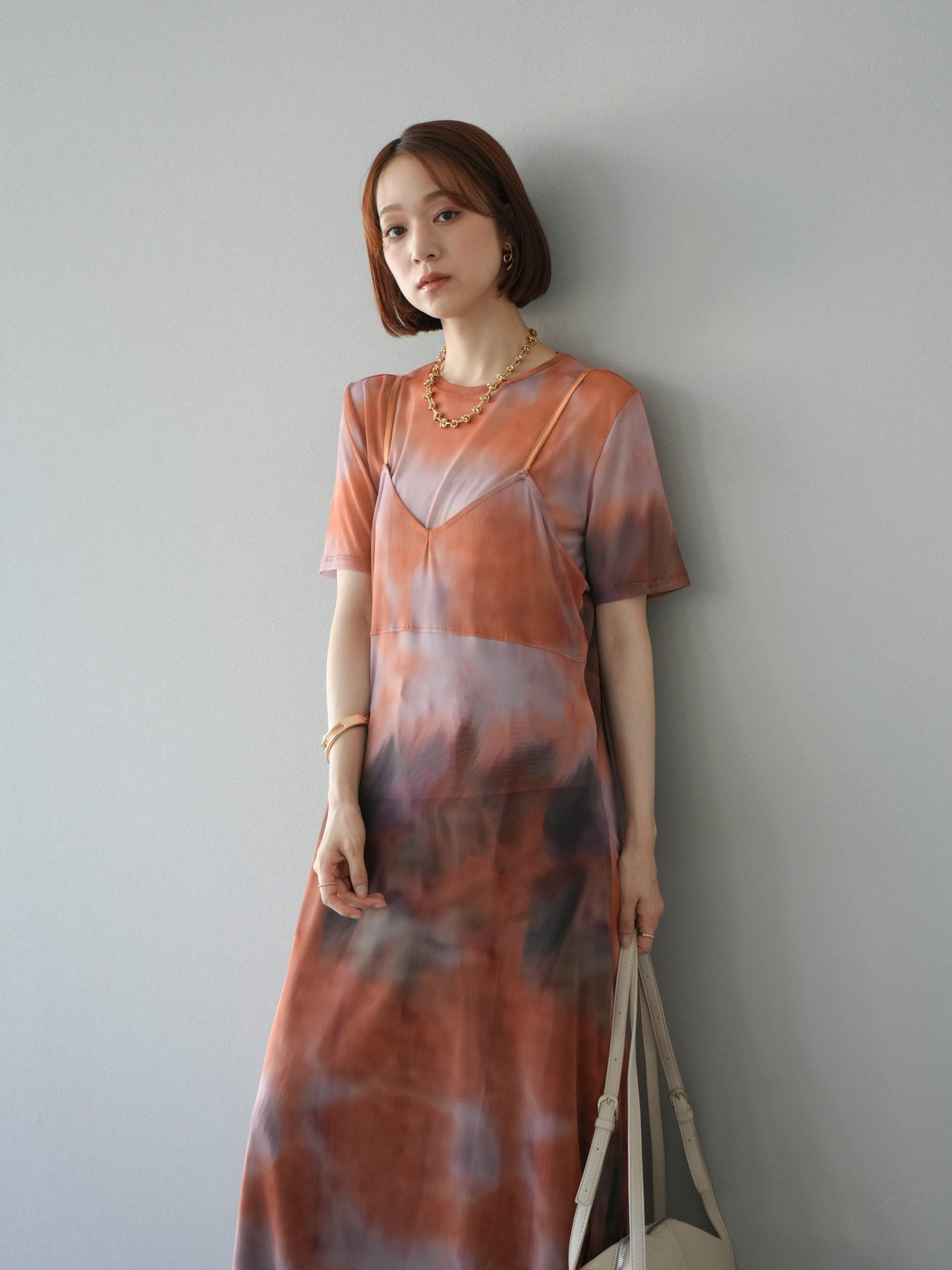 [予約タイダイ柄シアーキャミワンピース/オレンジ