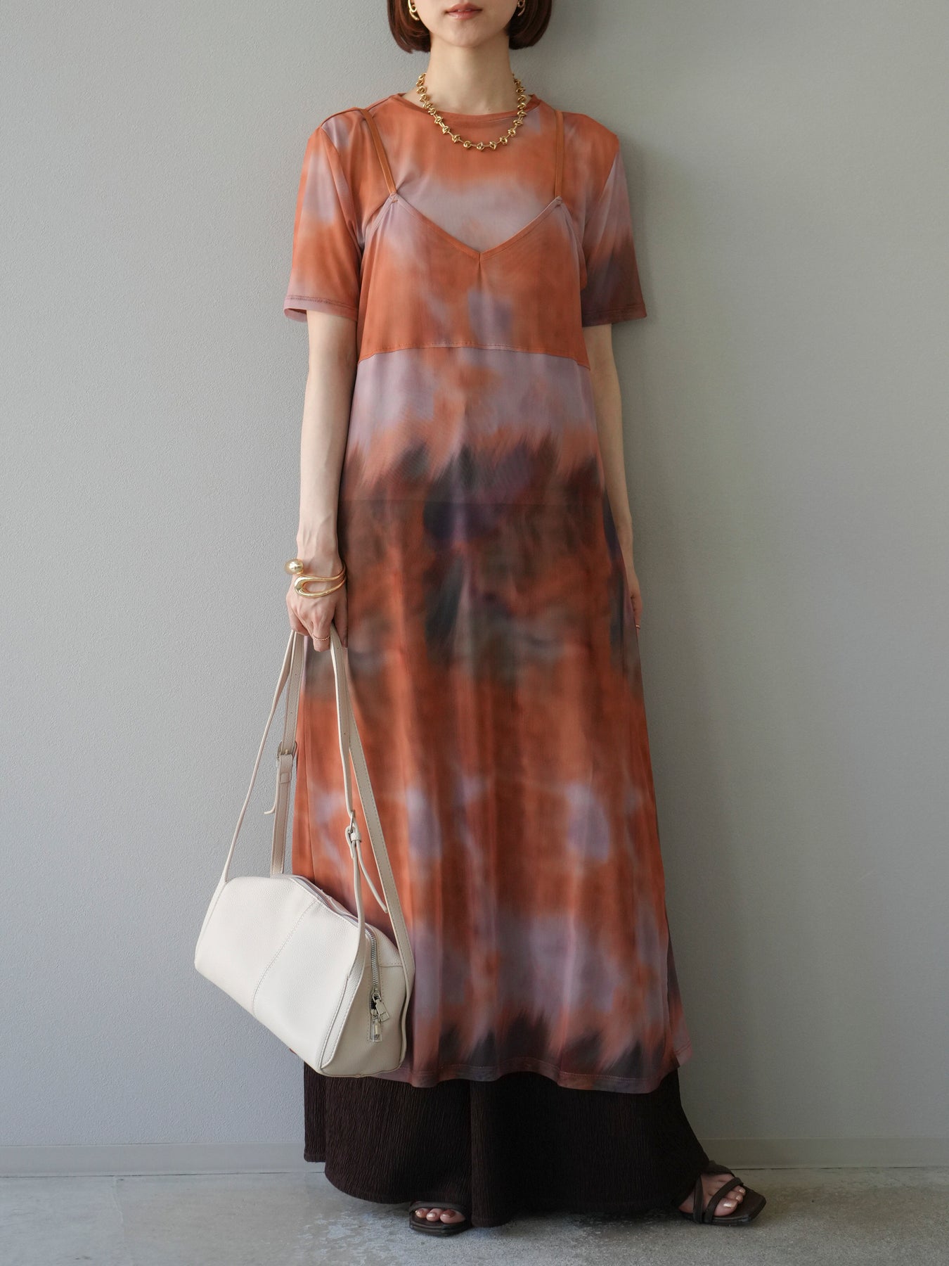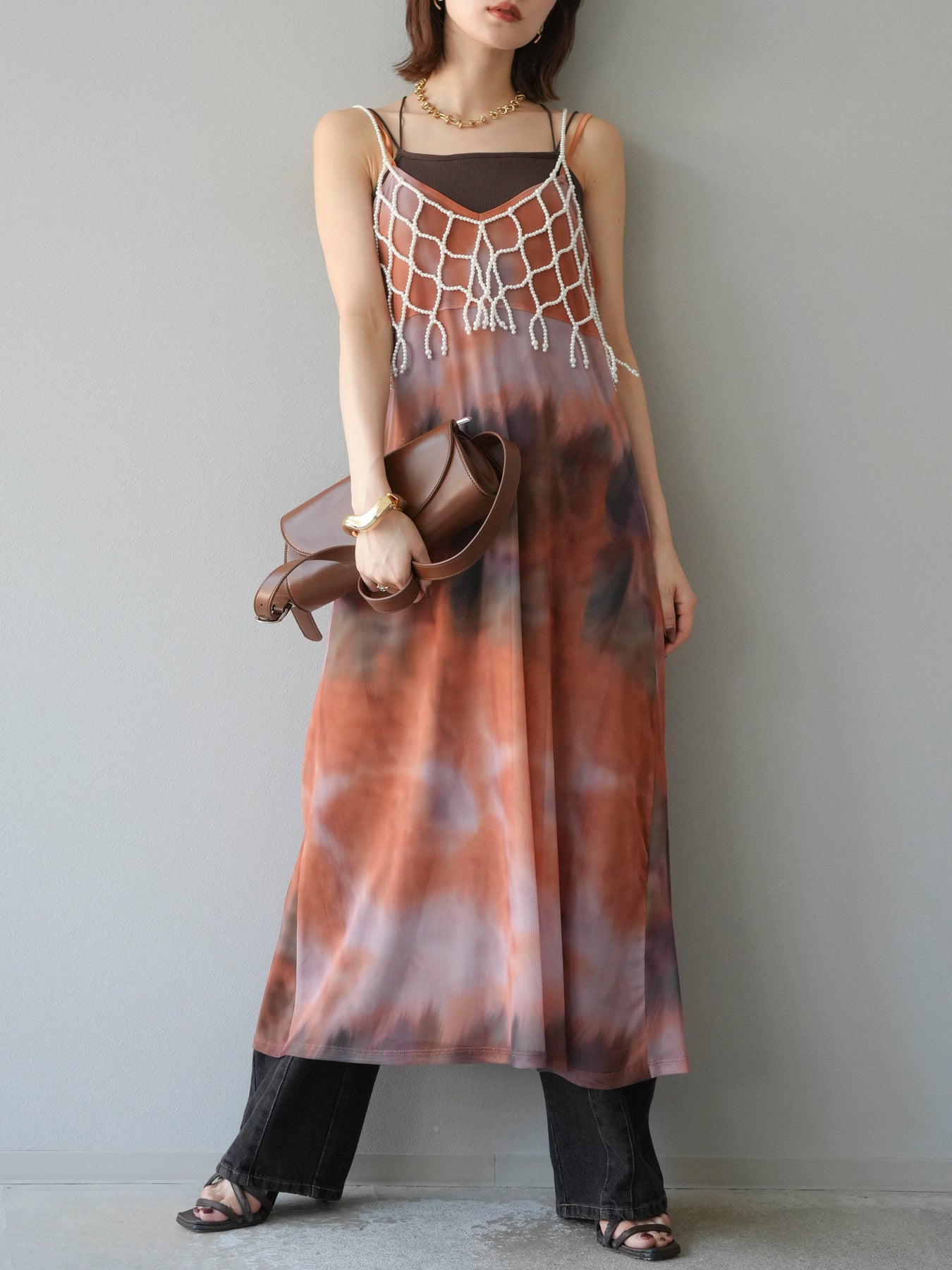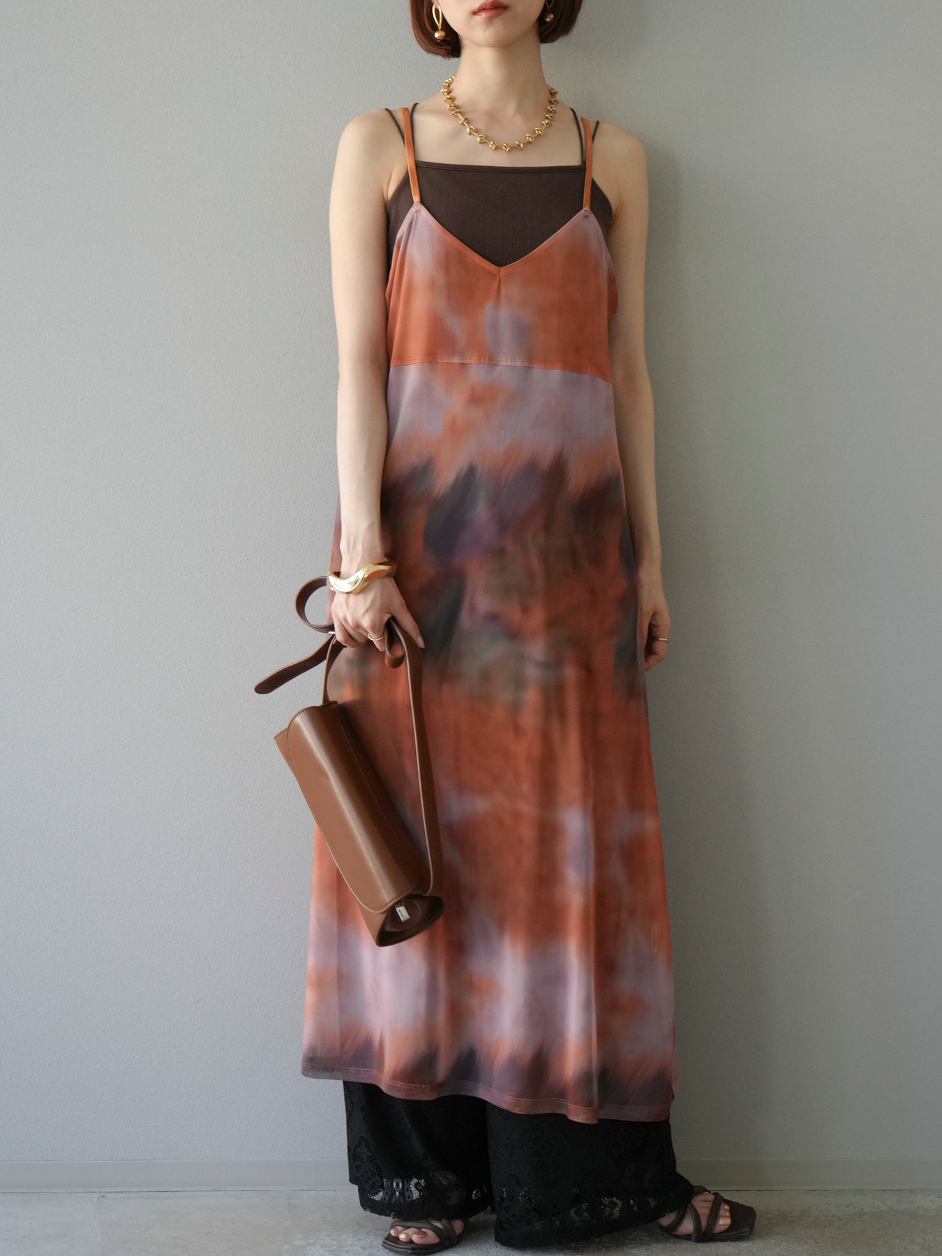 [予約タイダイ柄シアーキャミワンピース/オレンジ