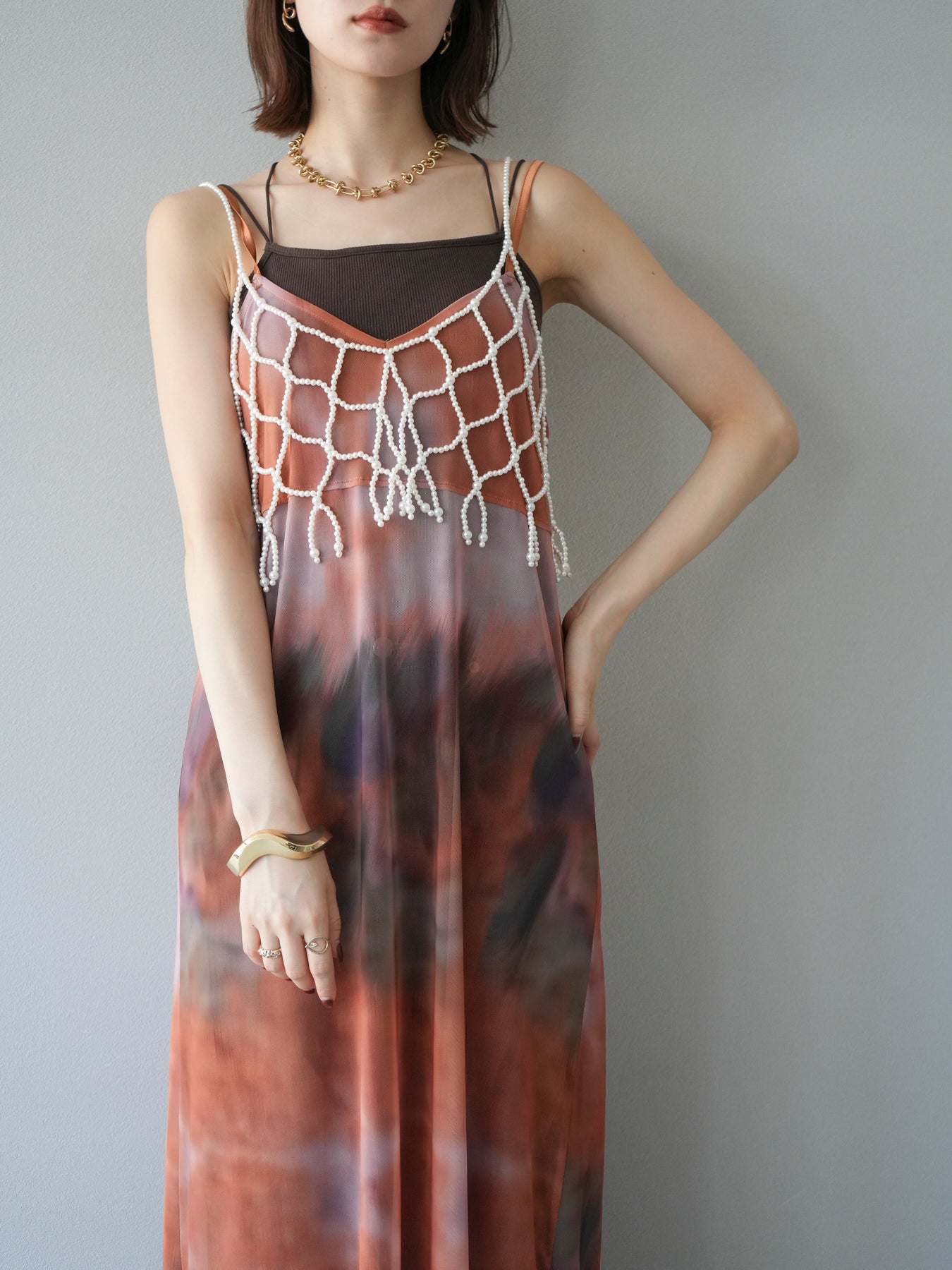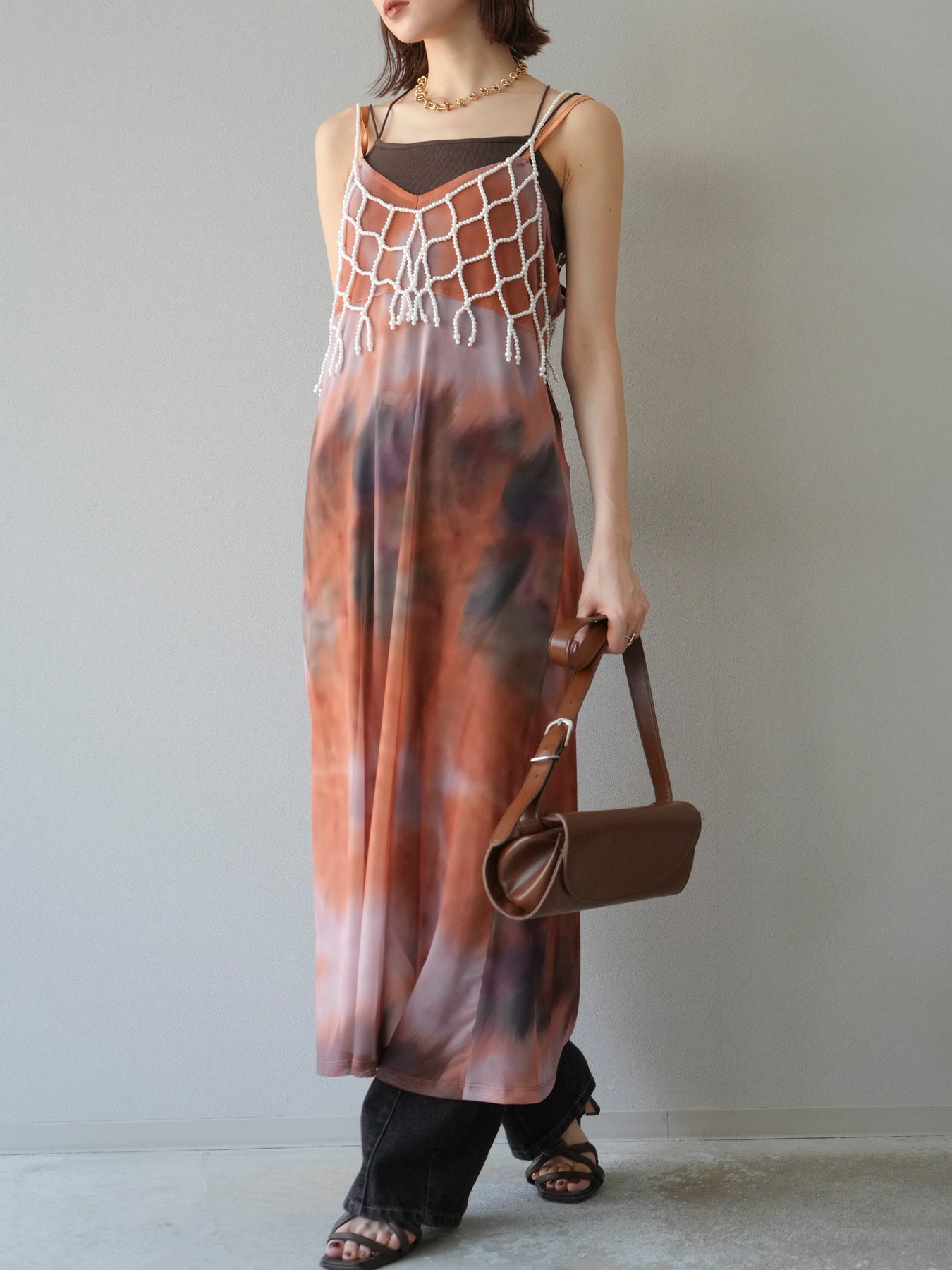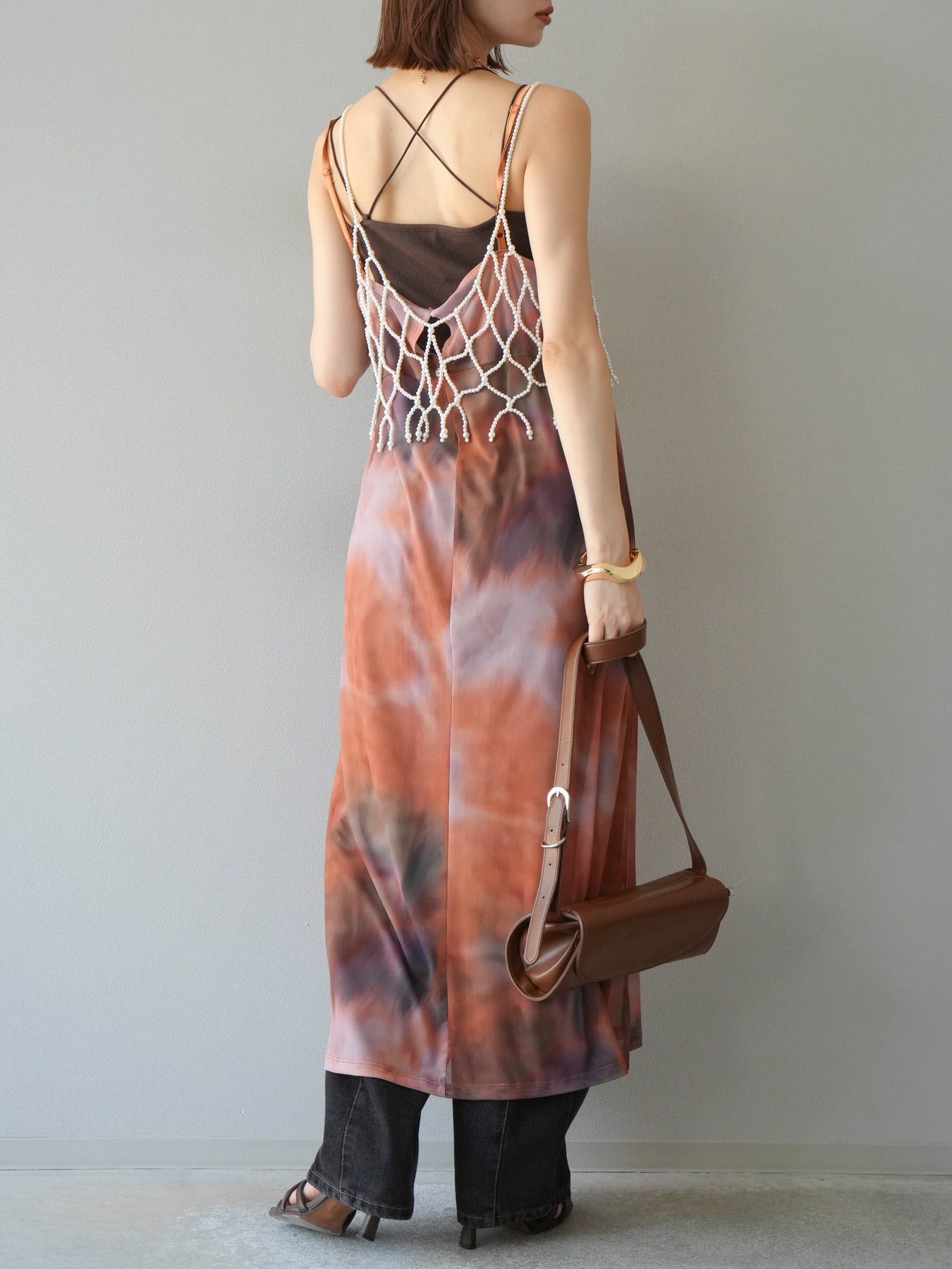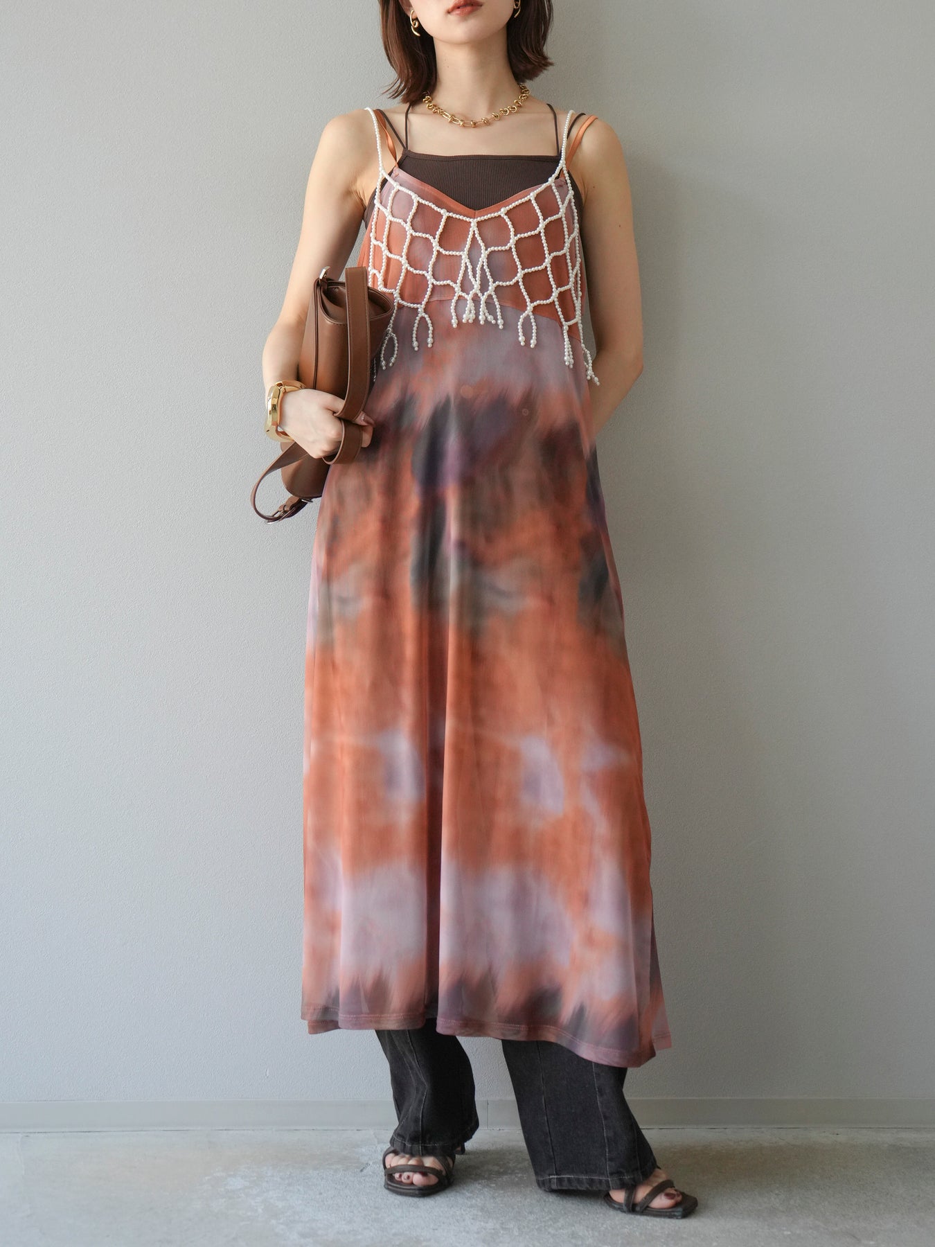 [予約タイダイ柄シアーキャミワンピース/オレンジ
