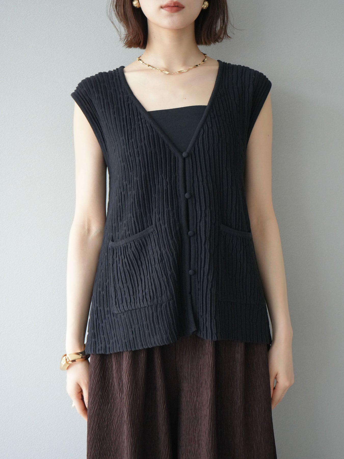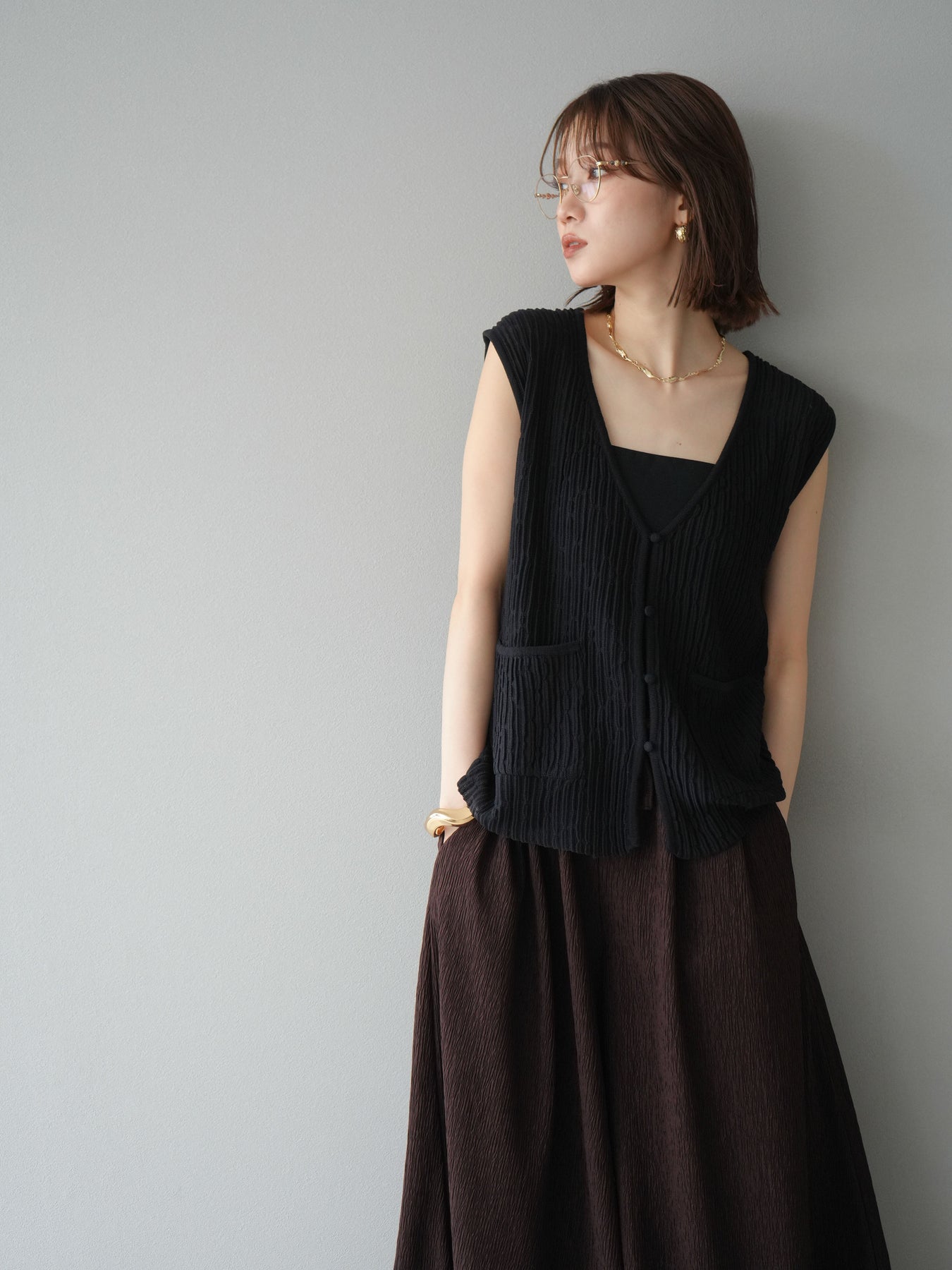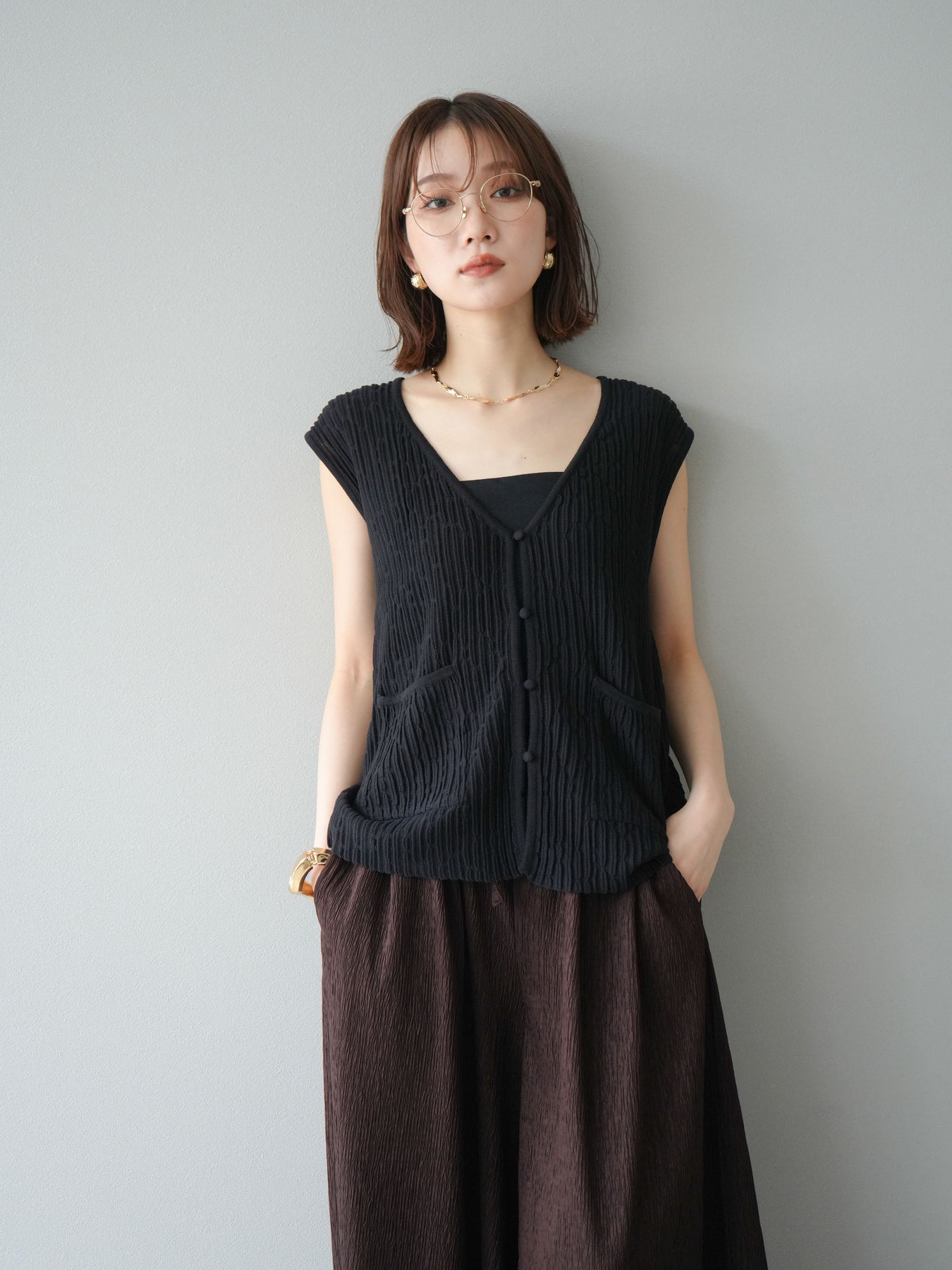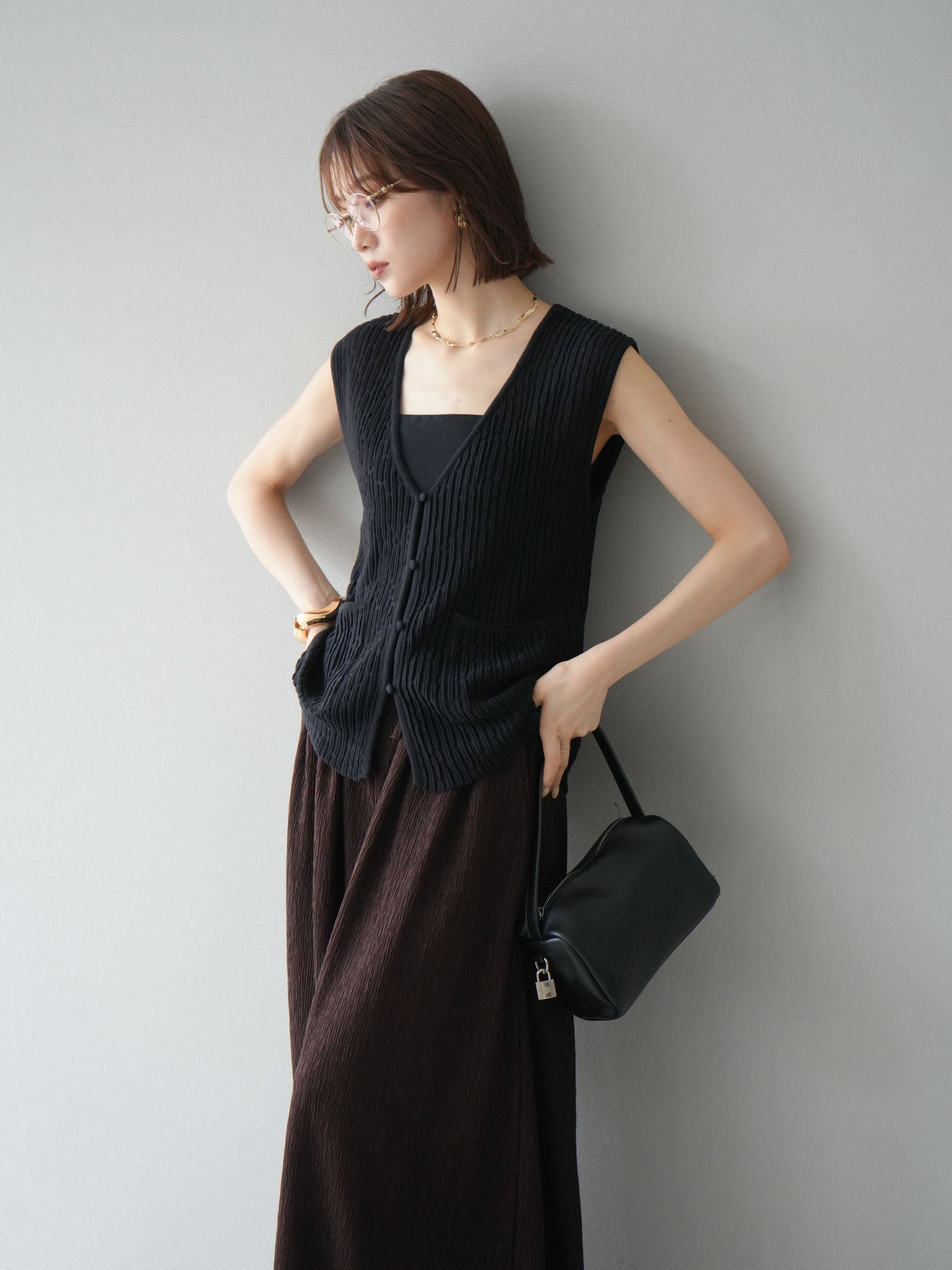 清涼夏日針織背心,飾有精緻的波浪針織圖案。輕薄的材質,營造出春夏氣息,簡約卻不失精緻。 正面飾有包扣和口袋,細節展現精緻。只需內搭T卹或吊帶背心,即可打造層次感十足的造型。 這是您想要添加到夏季衣櫃中的物品,因為它可以在工作時和下班時穿著。 ※除下裝、吊帶背心(內衣)以外的商品均不含內衣。