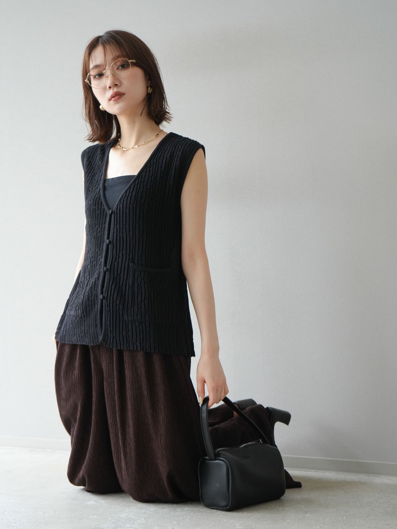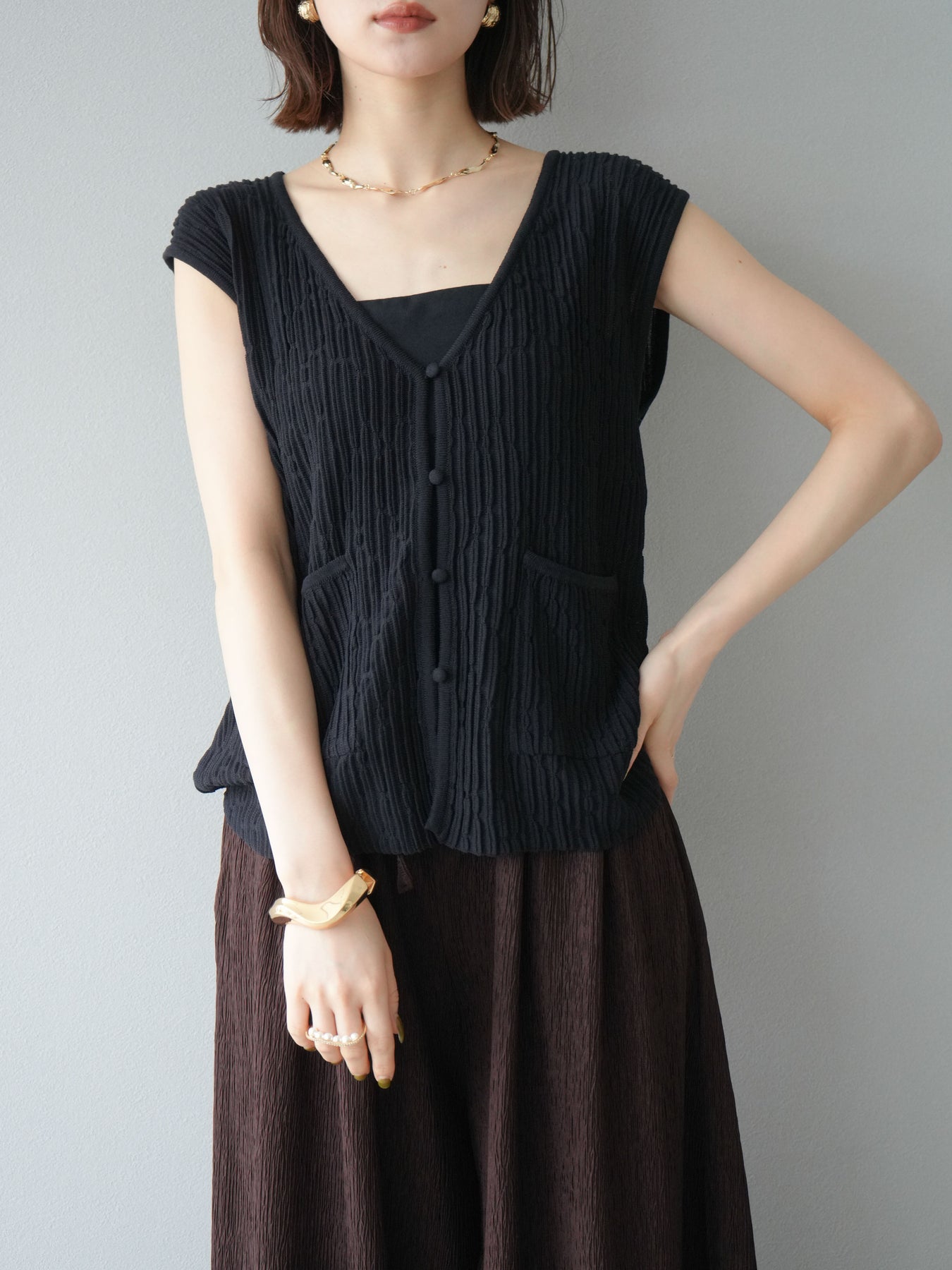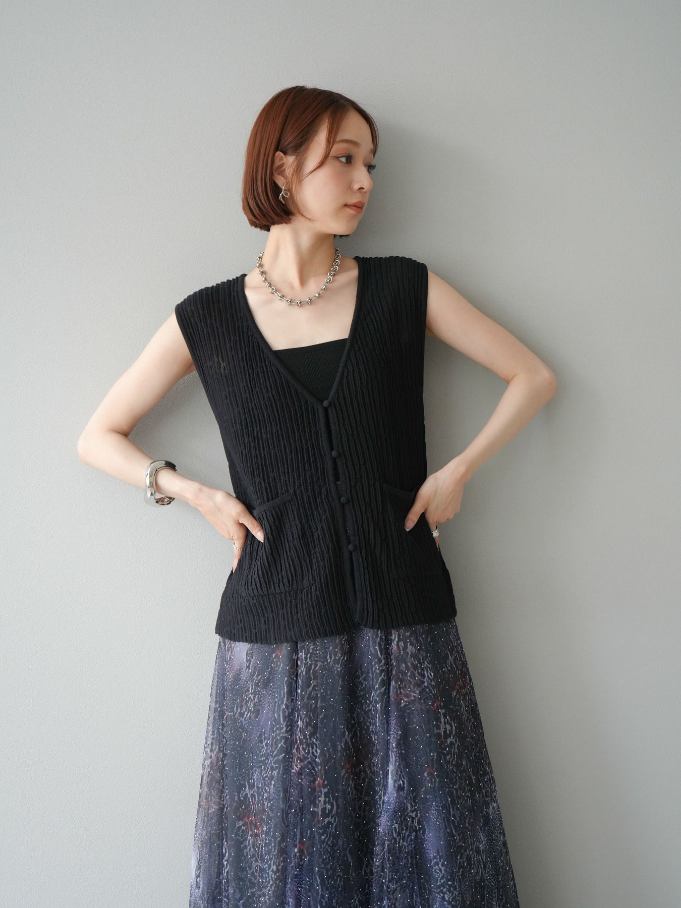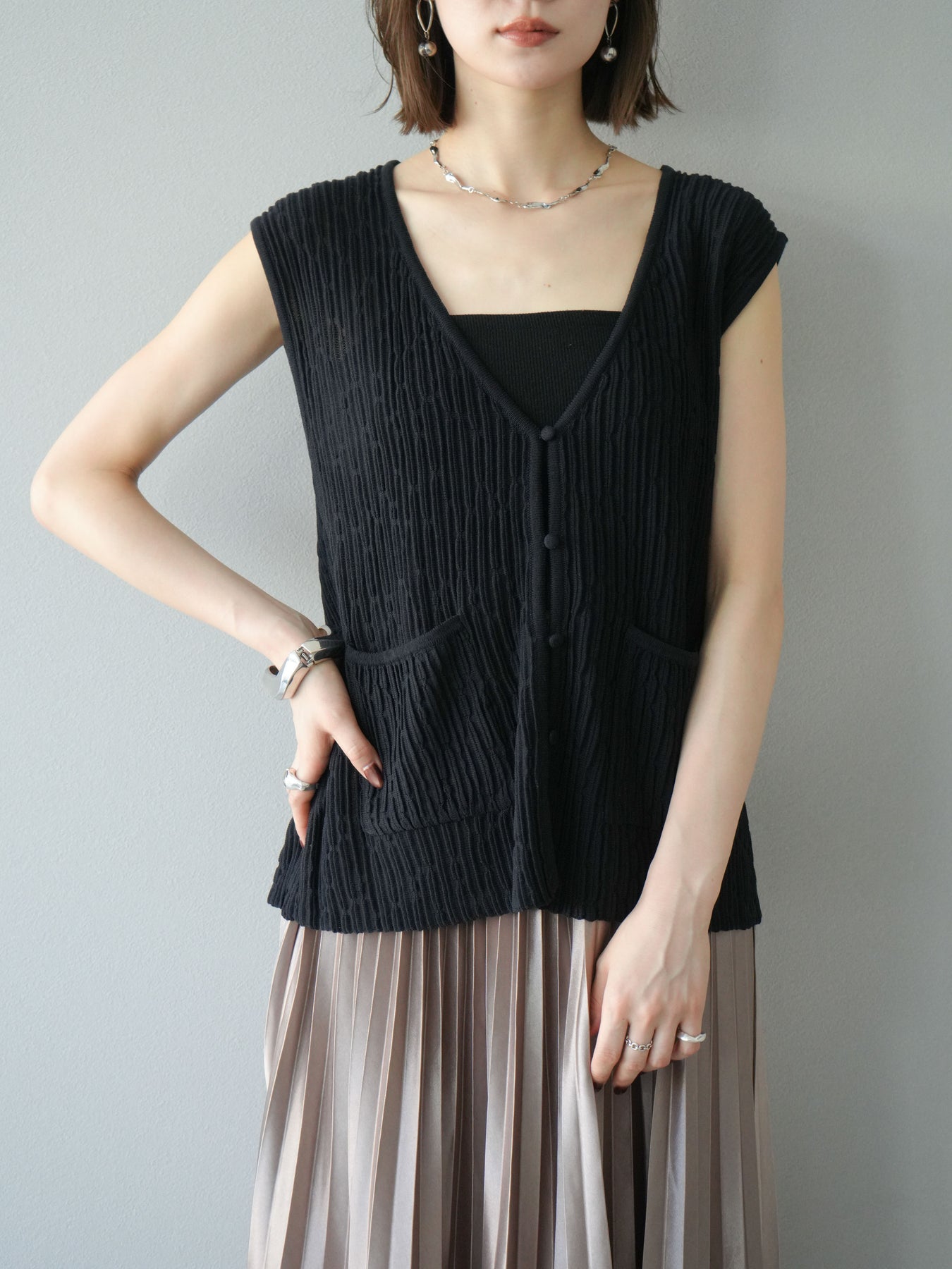 清涼夏日針織背心,飾有精緻的波浪針織圖案。輕薄的材質,營造出春夏氣息,簡約卻不失精緻。 正面飾有包扣和口袋,細節展現精緻。只需內搭T卹或吊帶背心,即可打造層次感十足的造型。 這是您想要添加到夏季衣櫃中的物品,因為它可以在工作時和下班時穿著。 ※除下裝、吊帶背心(內衣)以外的商品均不含內衣。