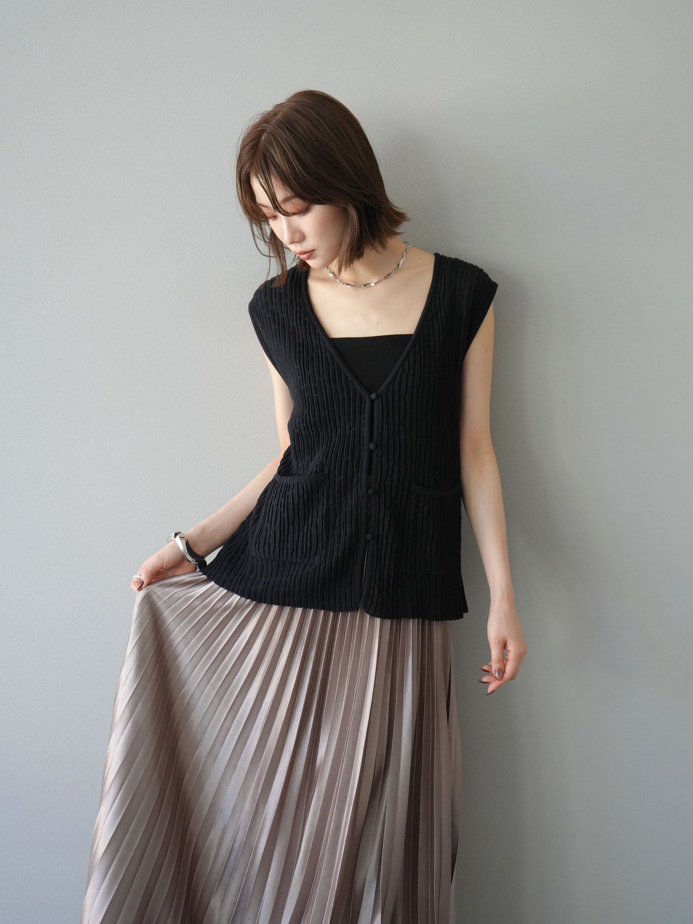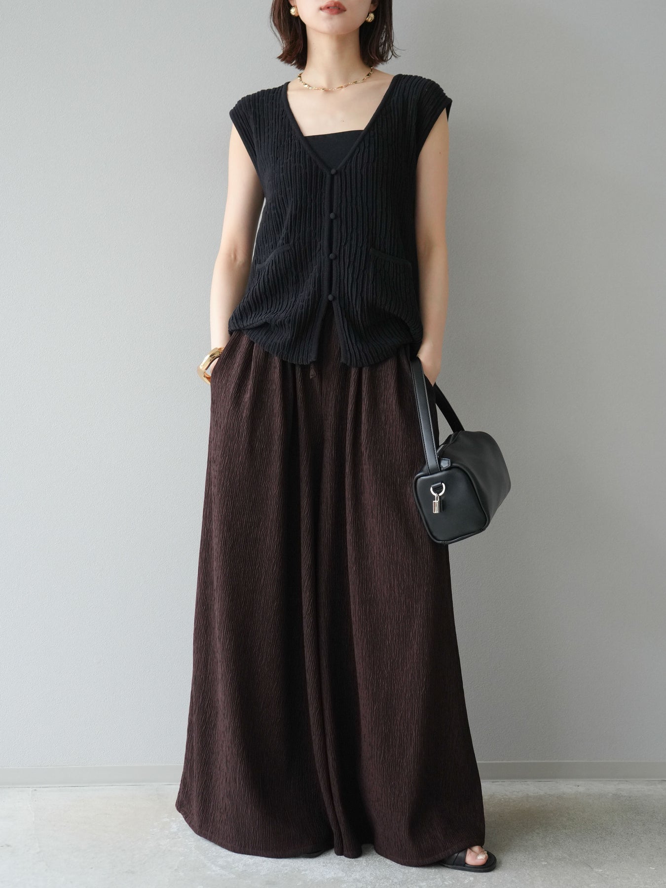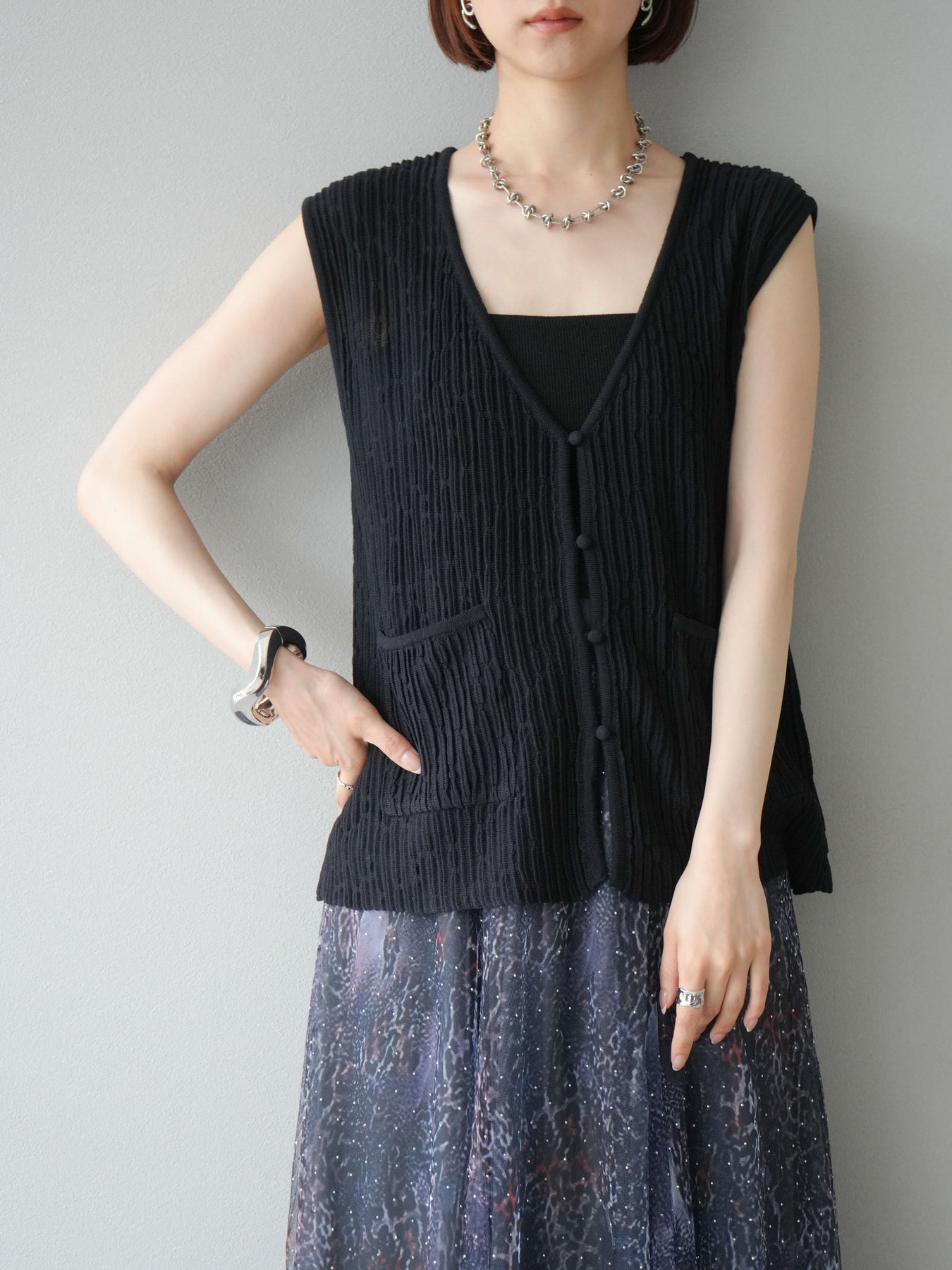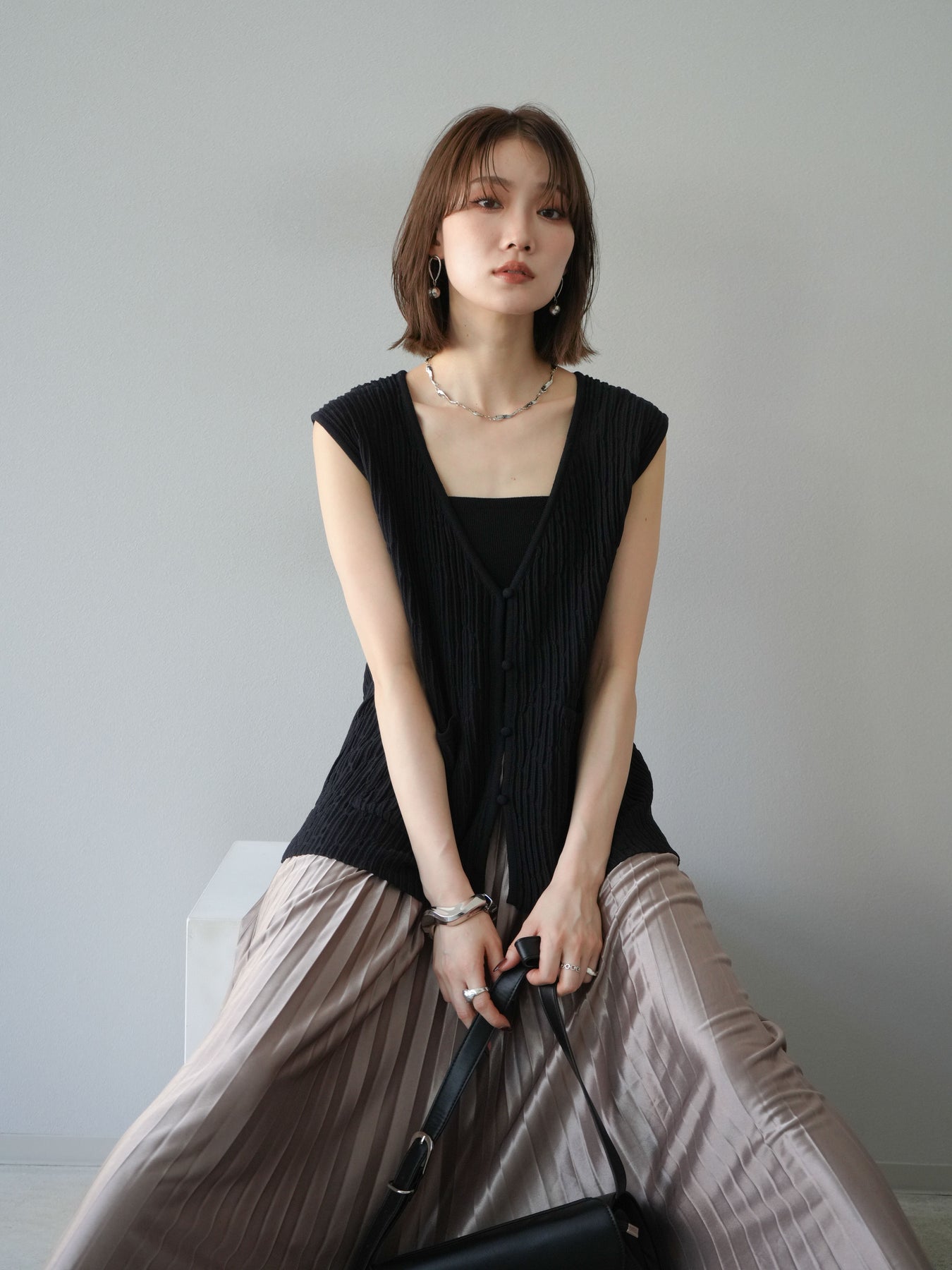 清涼夏日針織背心,飾有精緻的波浪針織圖案。輕薄的材質,營造出春夏氣息,簡約卻不失精緻。 正面飾有包扣和口袋,細節展現精緻。只需內搭T卹或吊帶背心,即可打造層次感十足的造型。 這是您想要添加到夏季衣櫃中的物品,因為它可以在工作時和下班時穿著。 ※除下裝、吊帶背心(內衣)以外的商品均不含內衣。