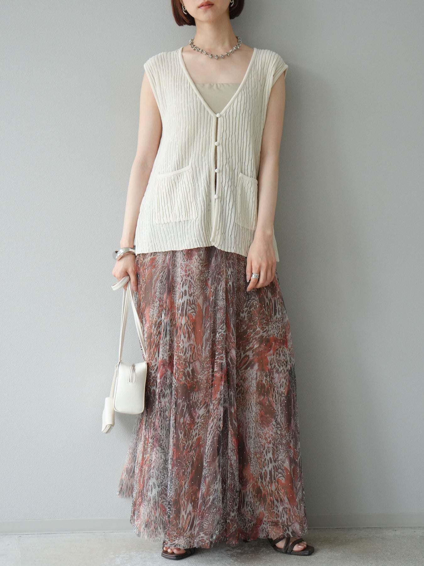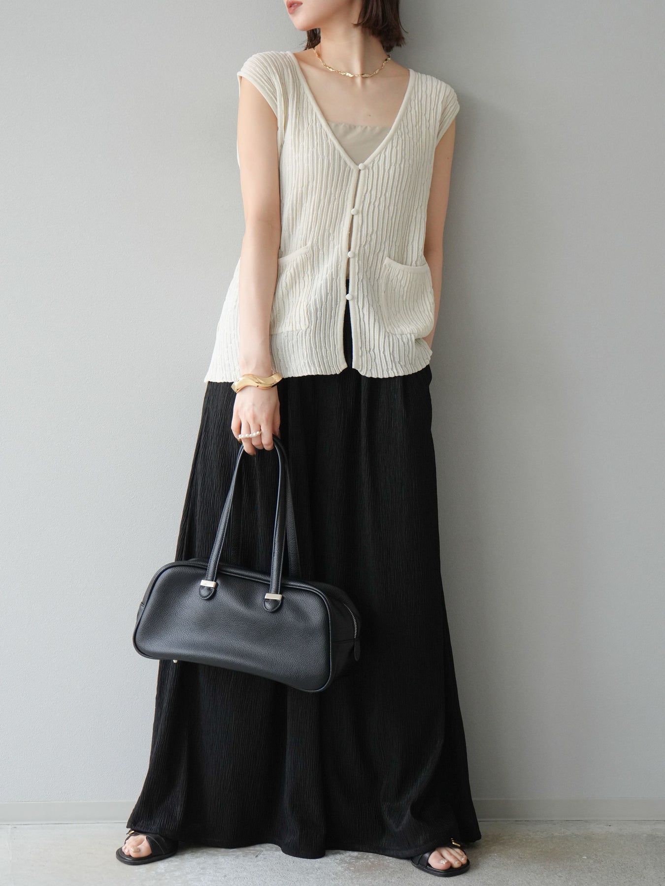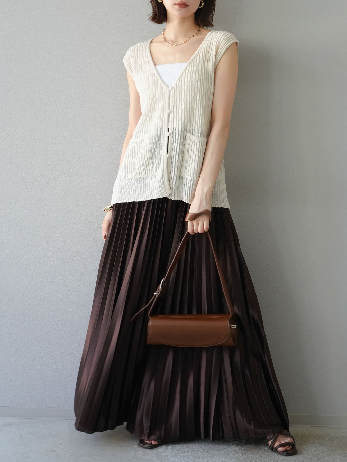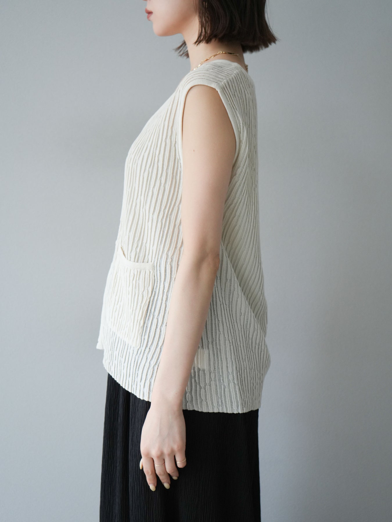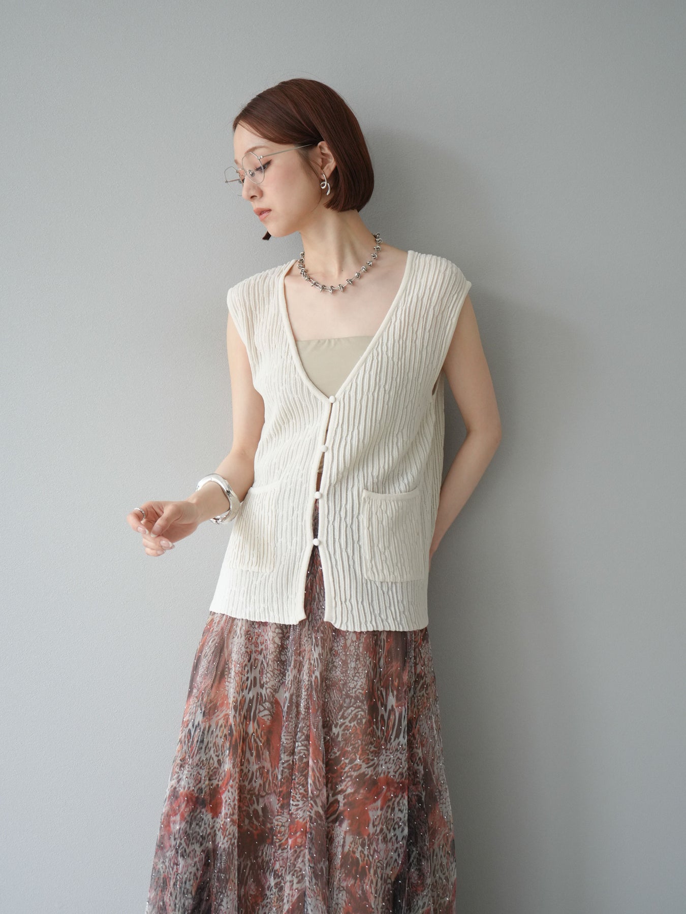 清涼夏日針織背心,飾有精緻的波浪針織圖案。輕薄的材質,營造出春夏氣息,簡約卻不失精緻。 正面飾有包扣和口袋,細節展現精緻。只需內搭T卹或吊帶背心,即可打造層次感十足的造型。 這是您想要添加到夏季衣櫃中的物品,因為它可以在工作時和下班時穿著。 ※除下裝、吊帶背心(內衣)以外的商品均不含內衣。