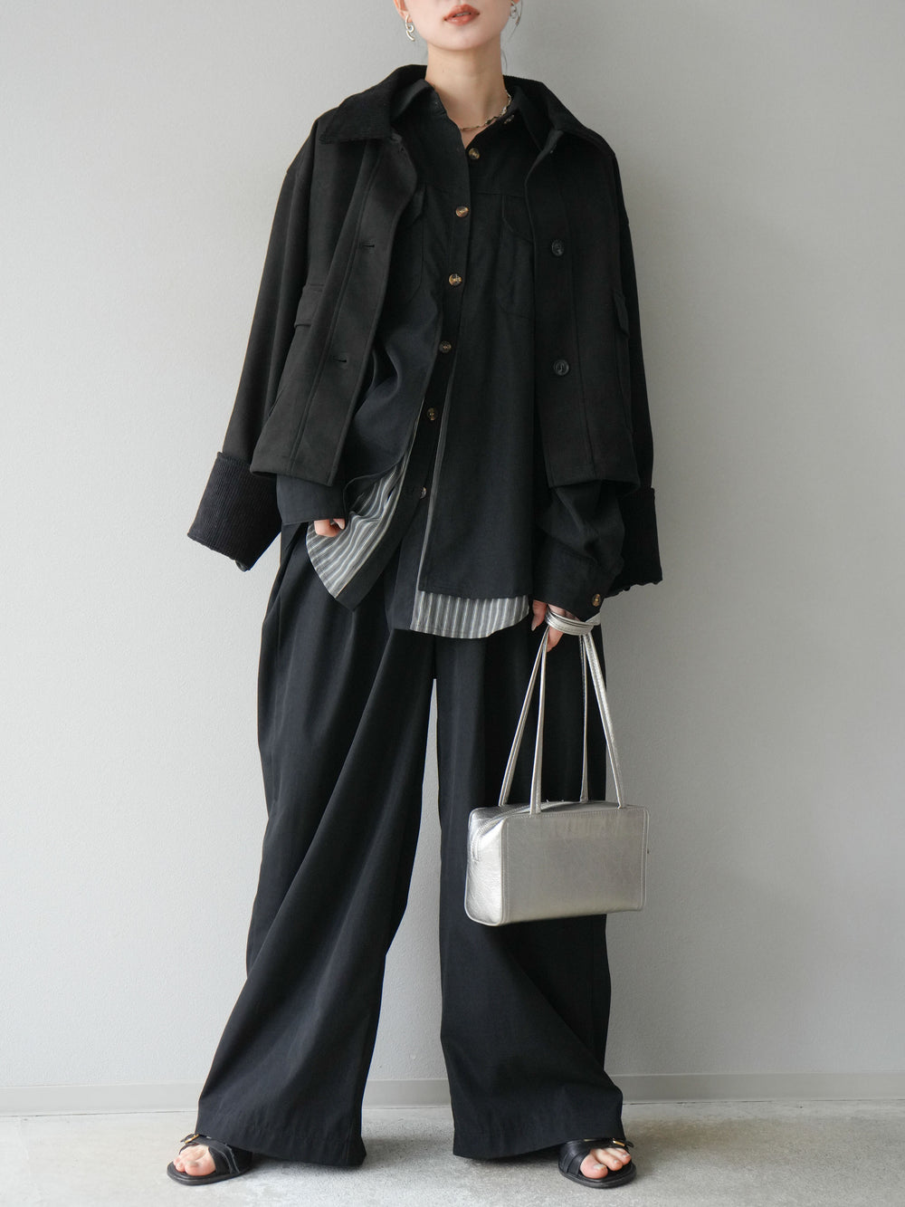[予約]コーデュロイ切替スウェードショートジャケット/ブラック