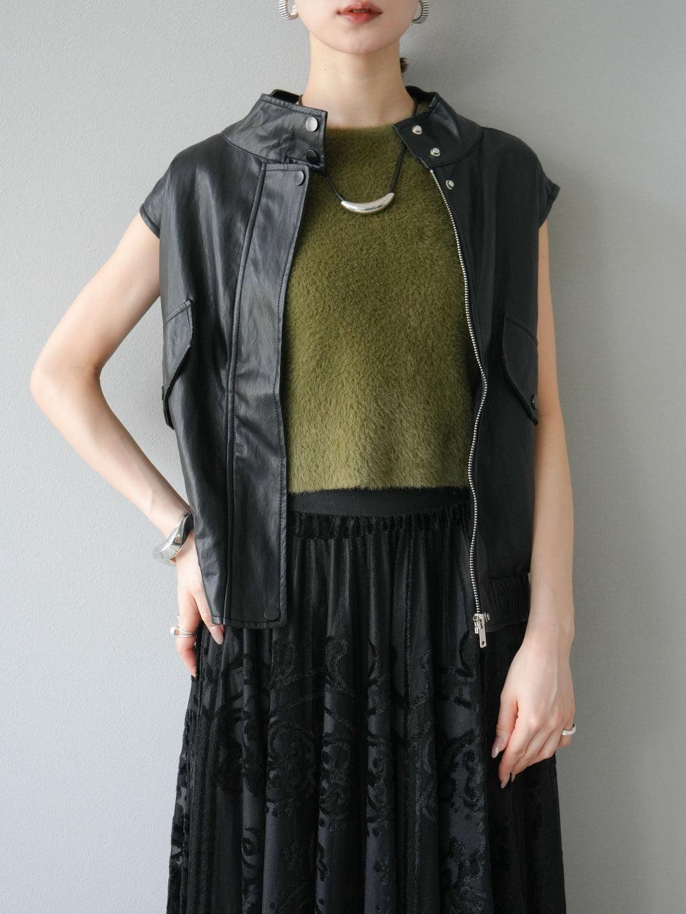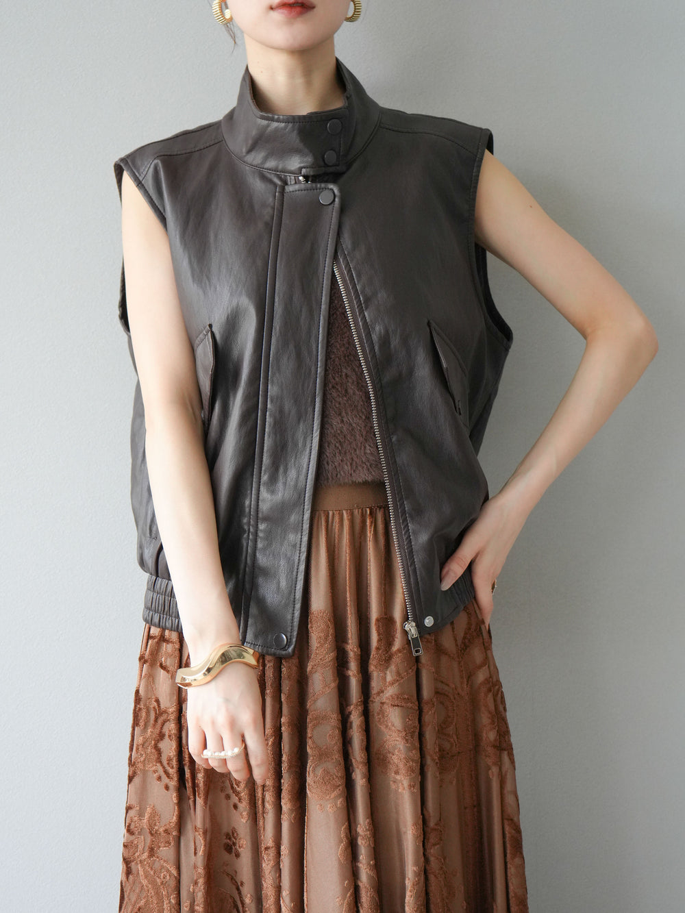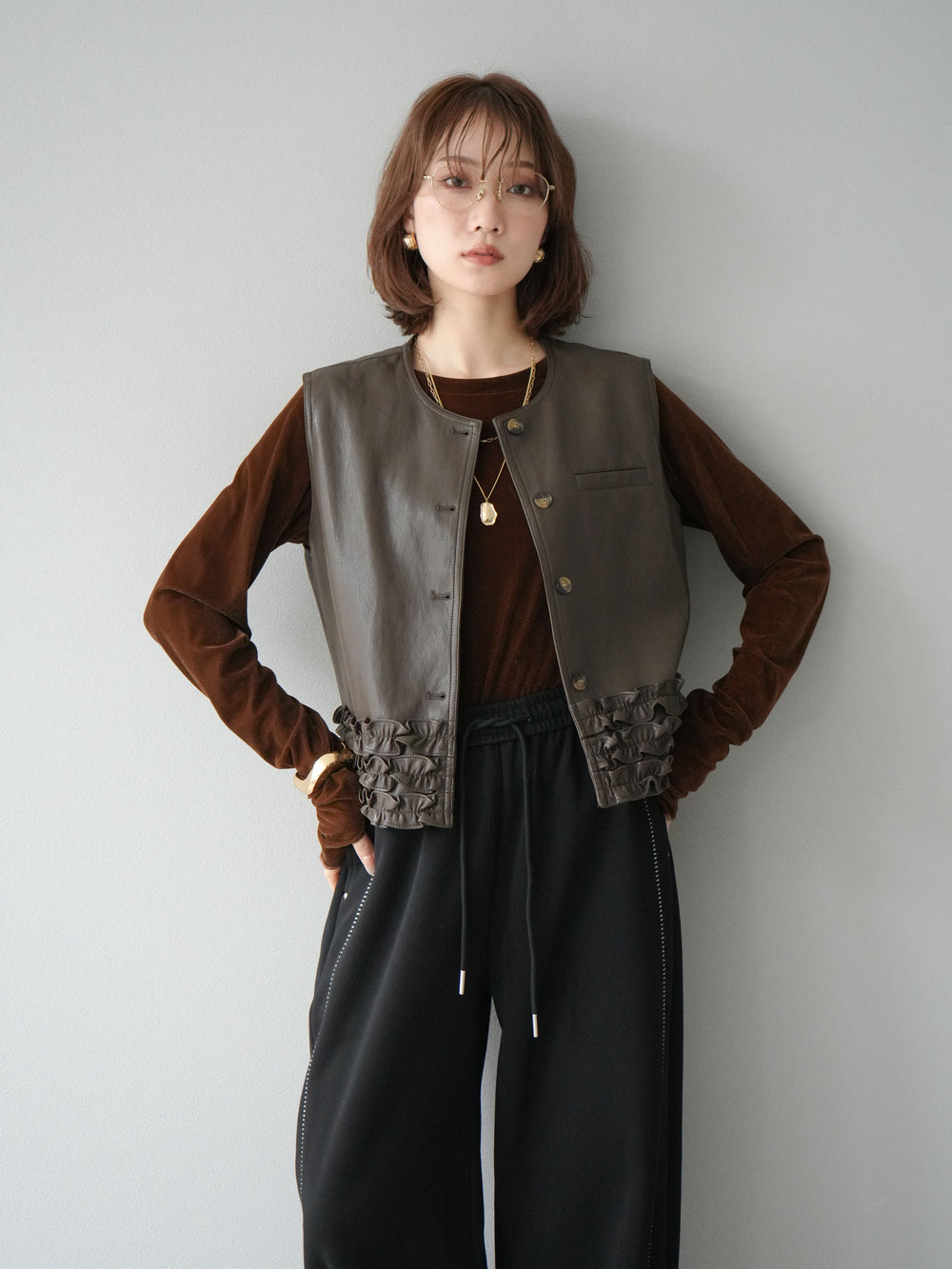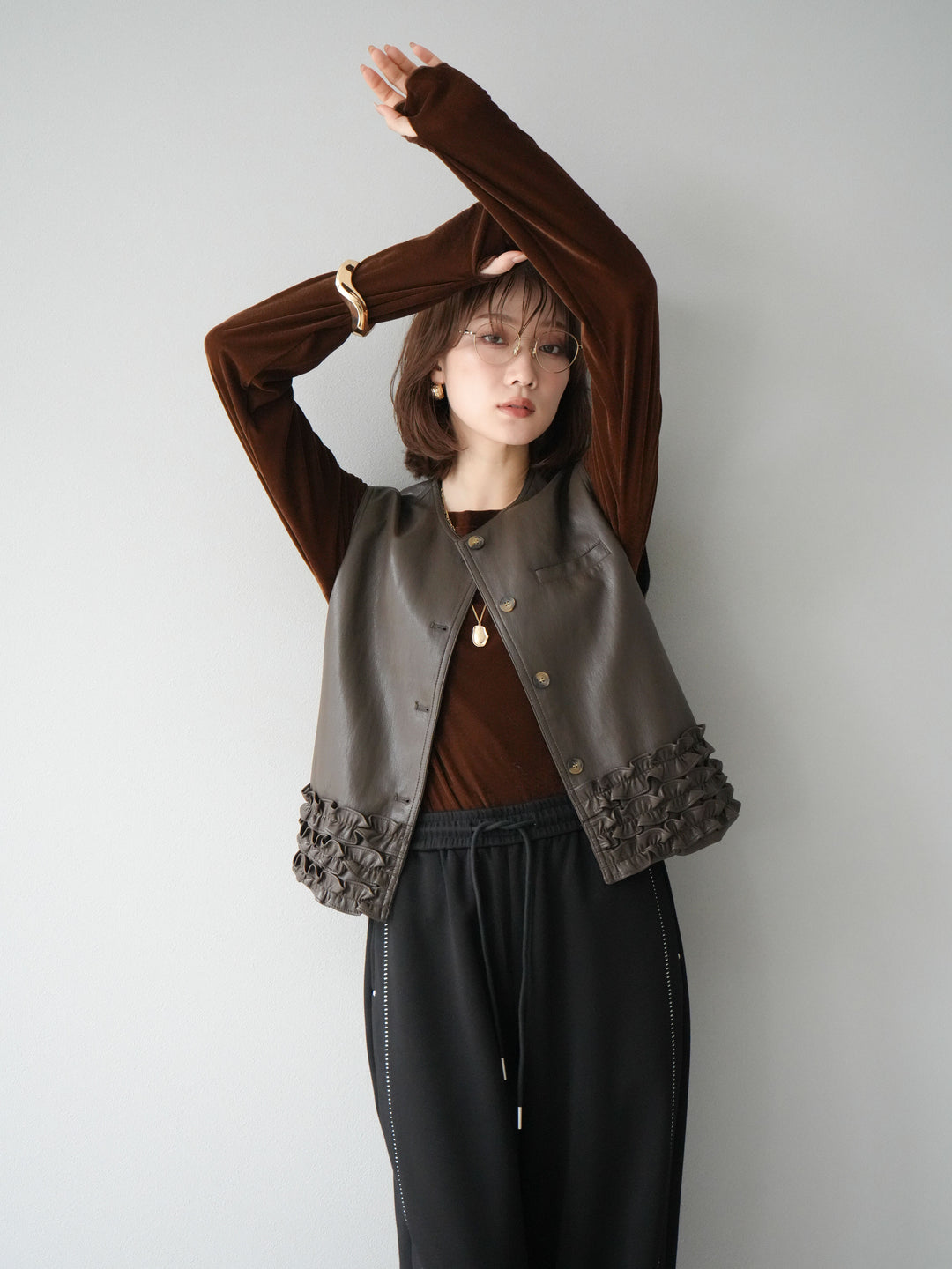 [予約]コンパクトフリルレザーベスト/ブラウン