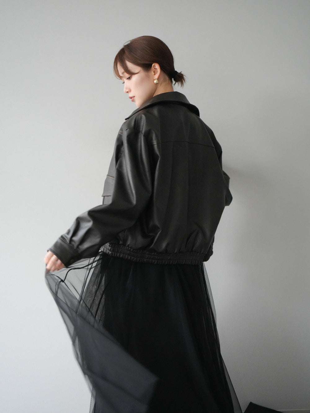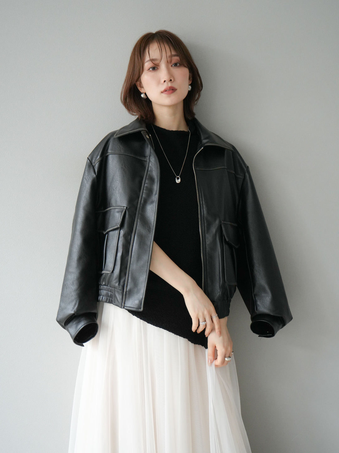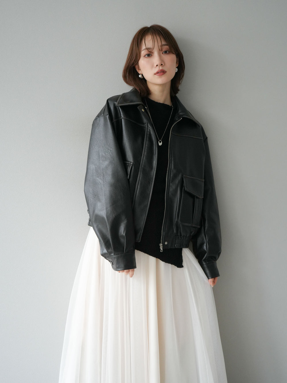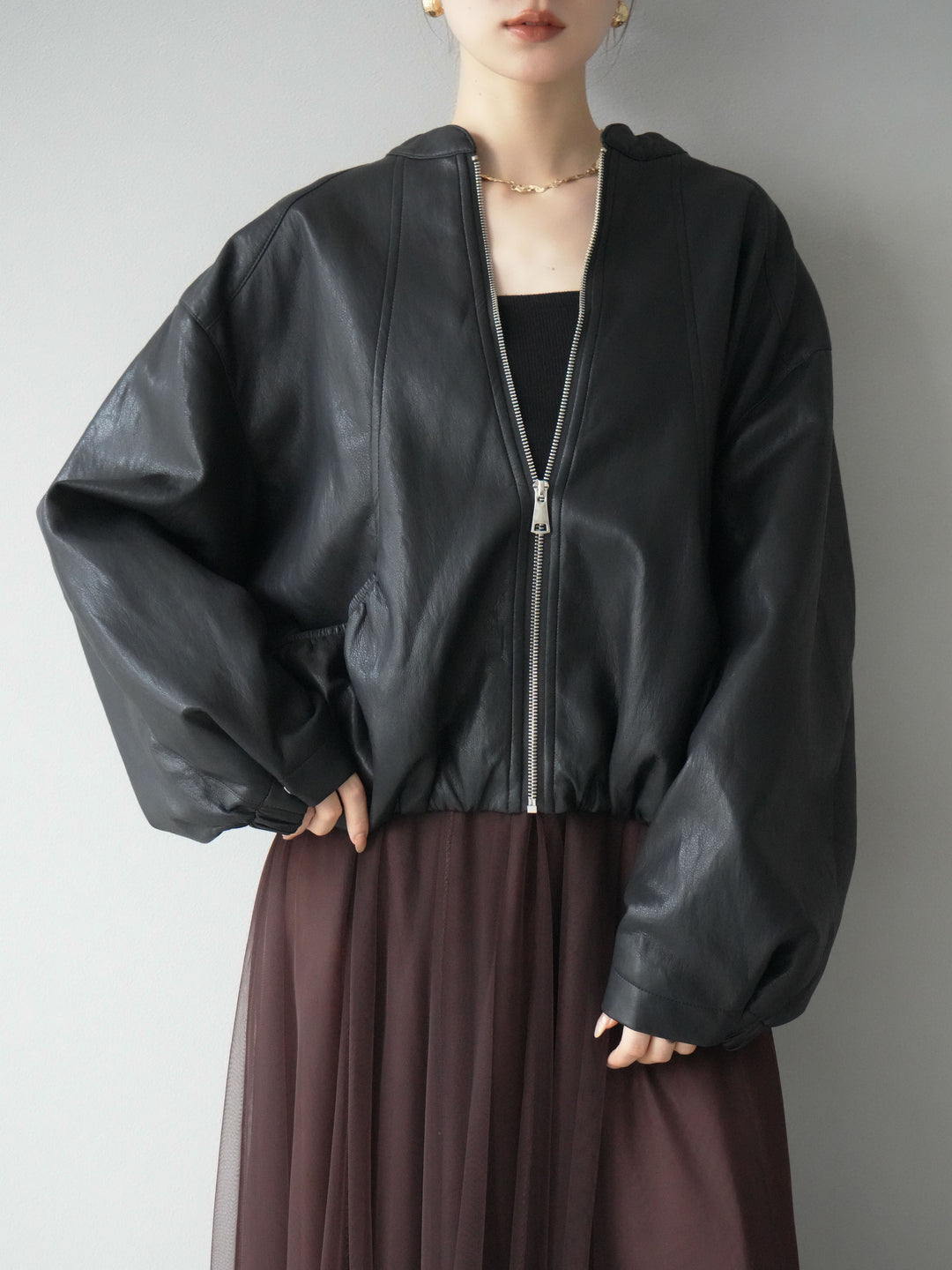 [予約]フェイクレザー裾バルーンブルゾン/ブラック