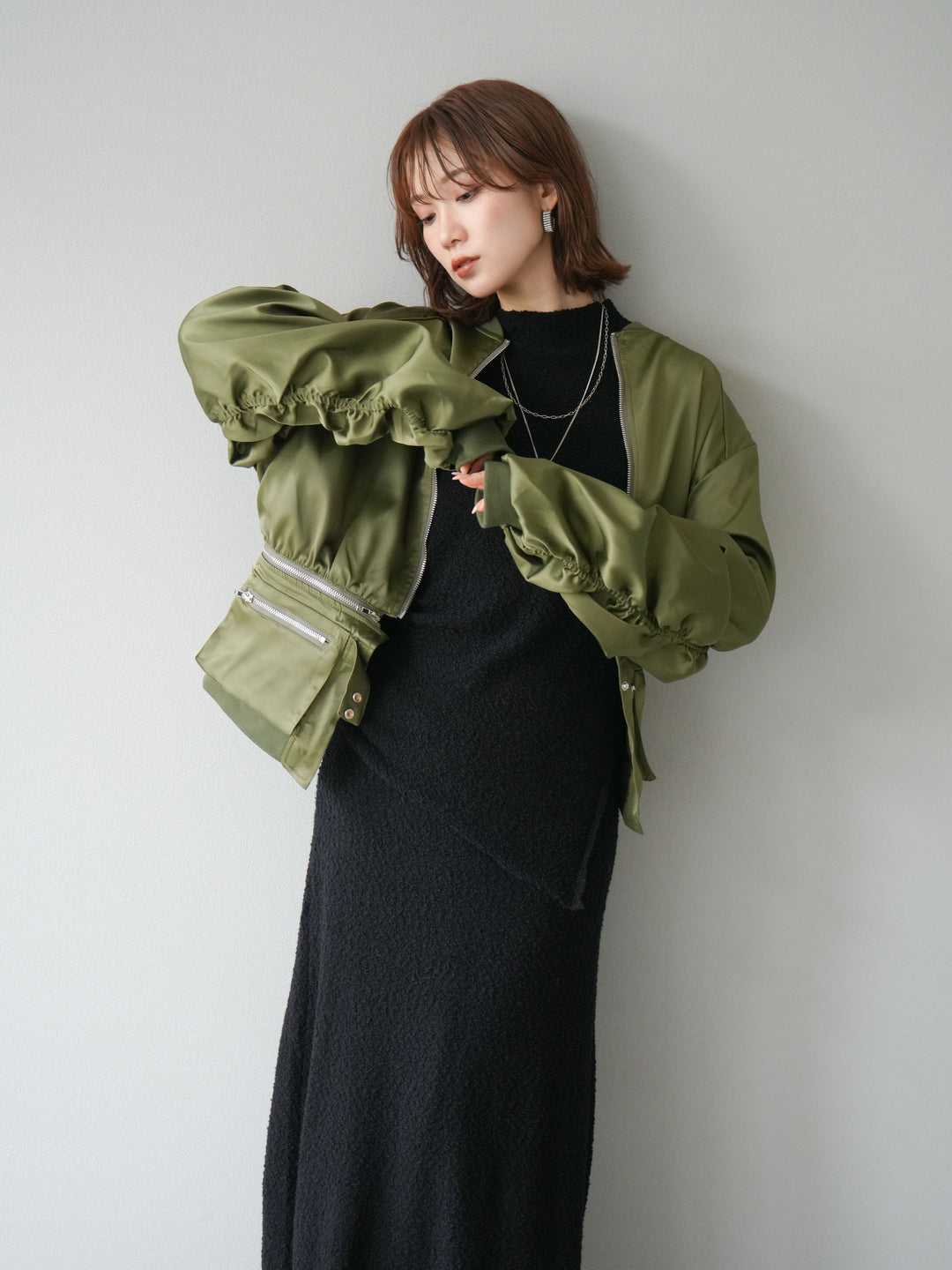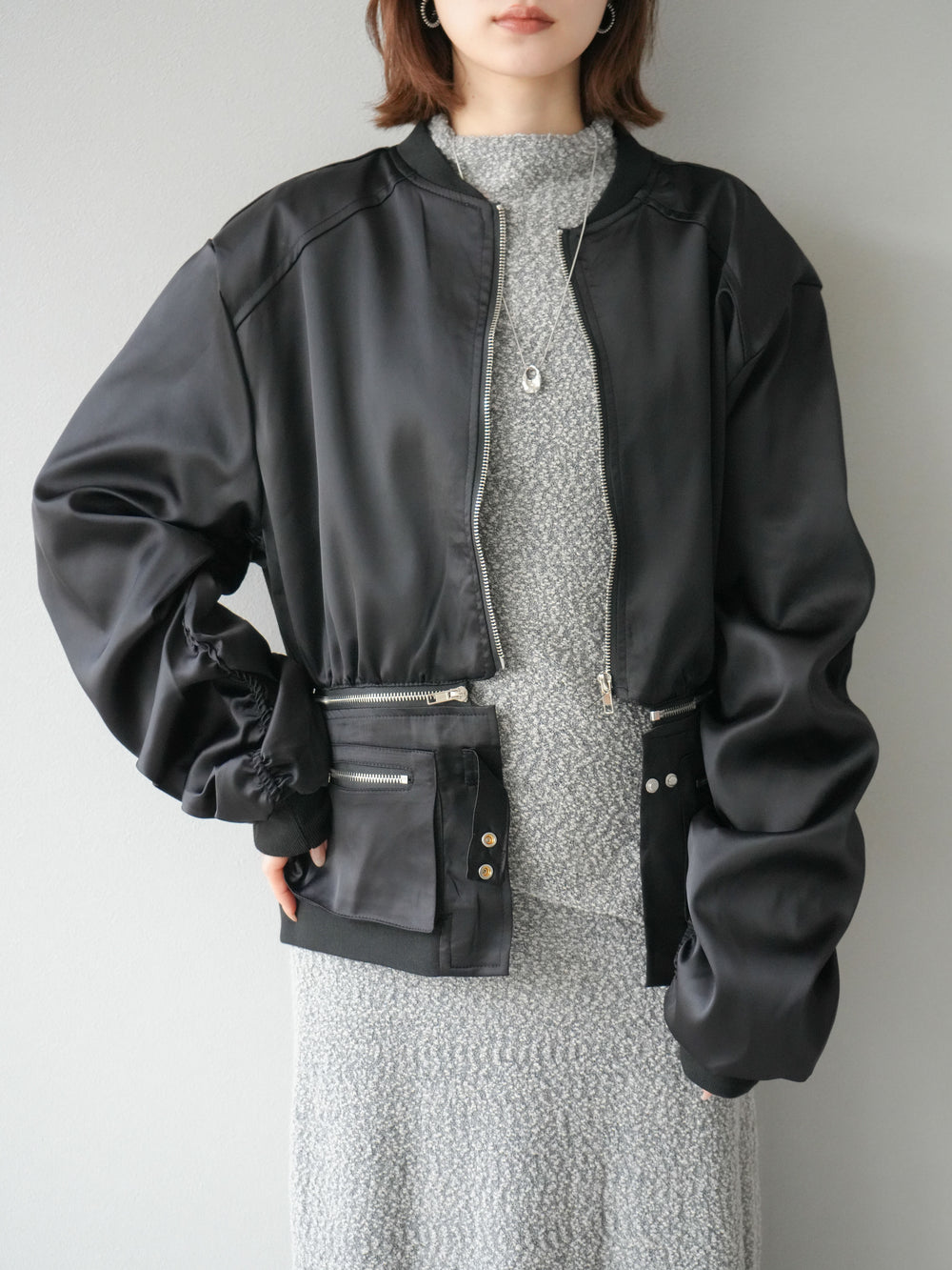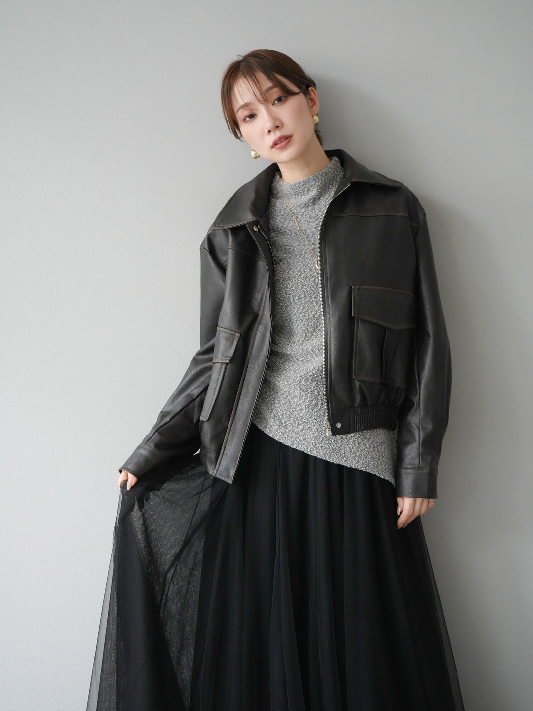 [予約]フェイクレザー裾バルーンブルゾン/ブラック
