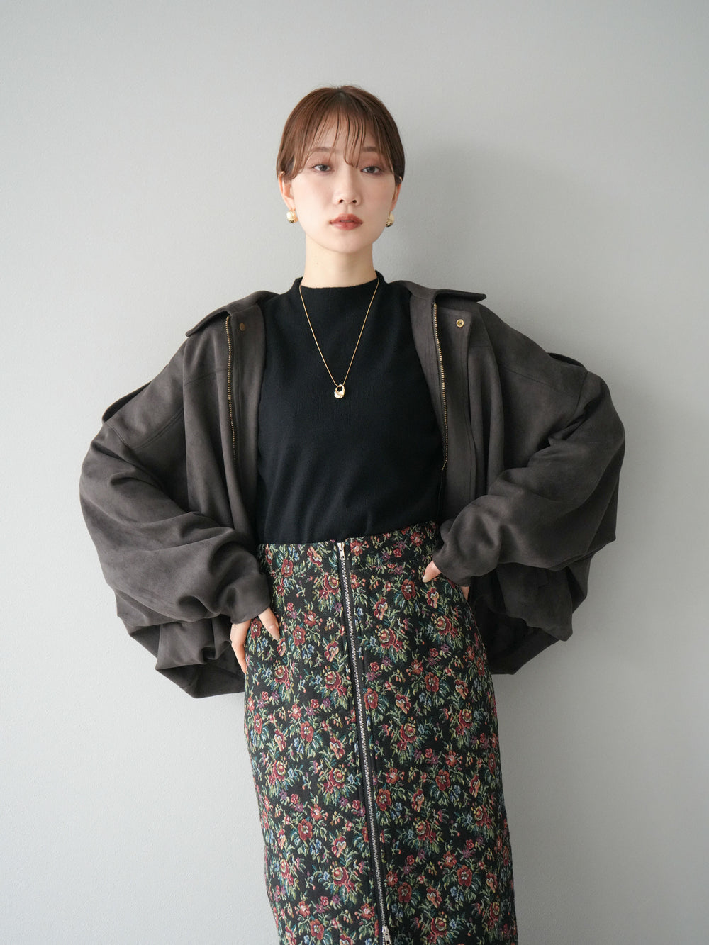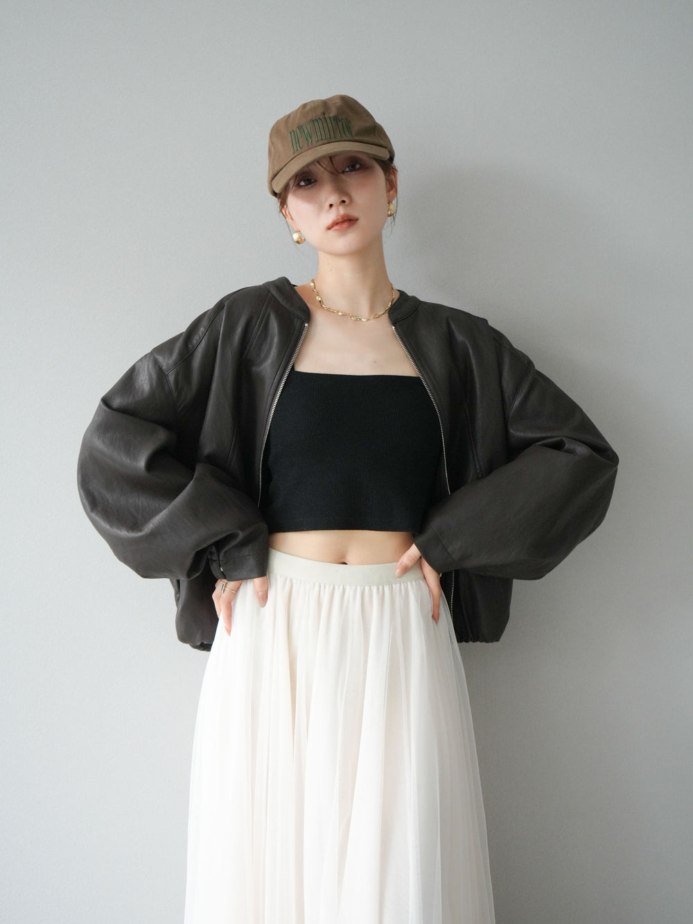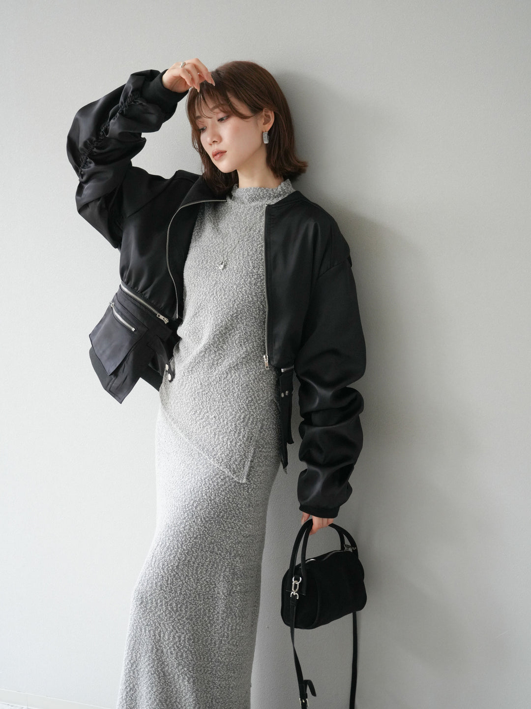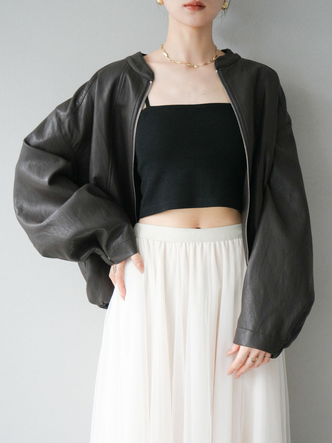 [予約]フェイクレザー裾バルーンブルゾン/ブラック