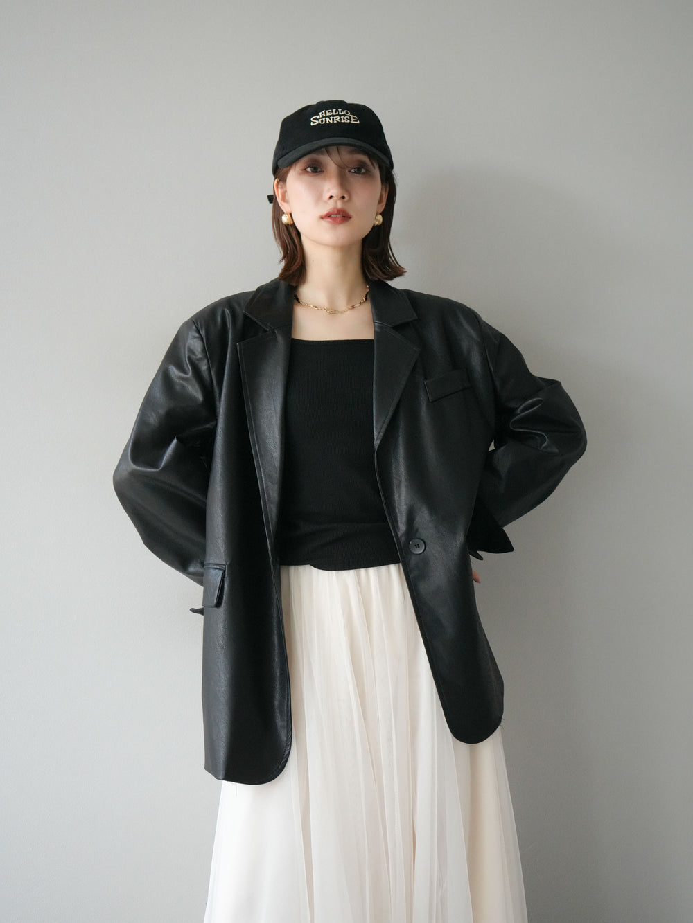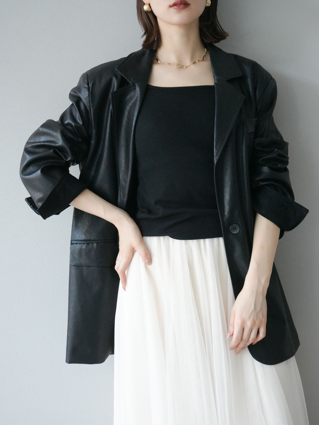 [予約]フェイクレザーテーラードジャケット/ブラック
