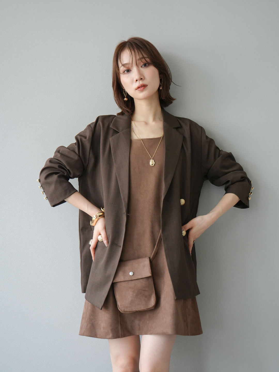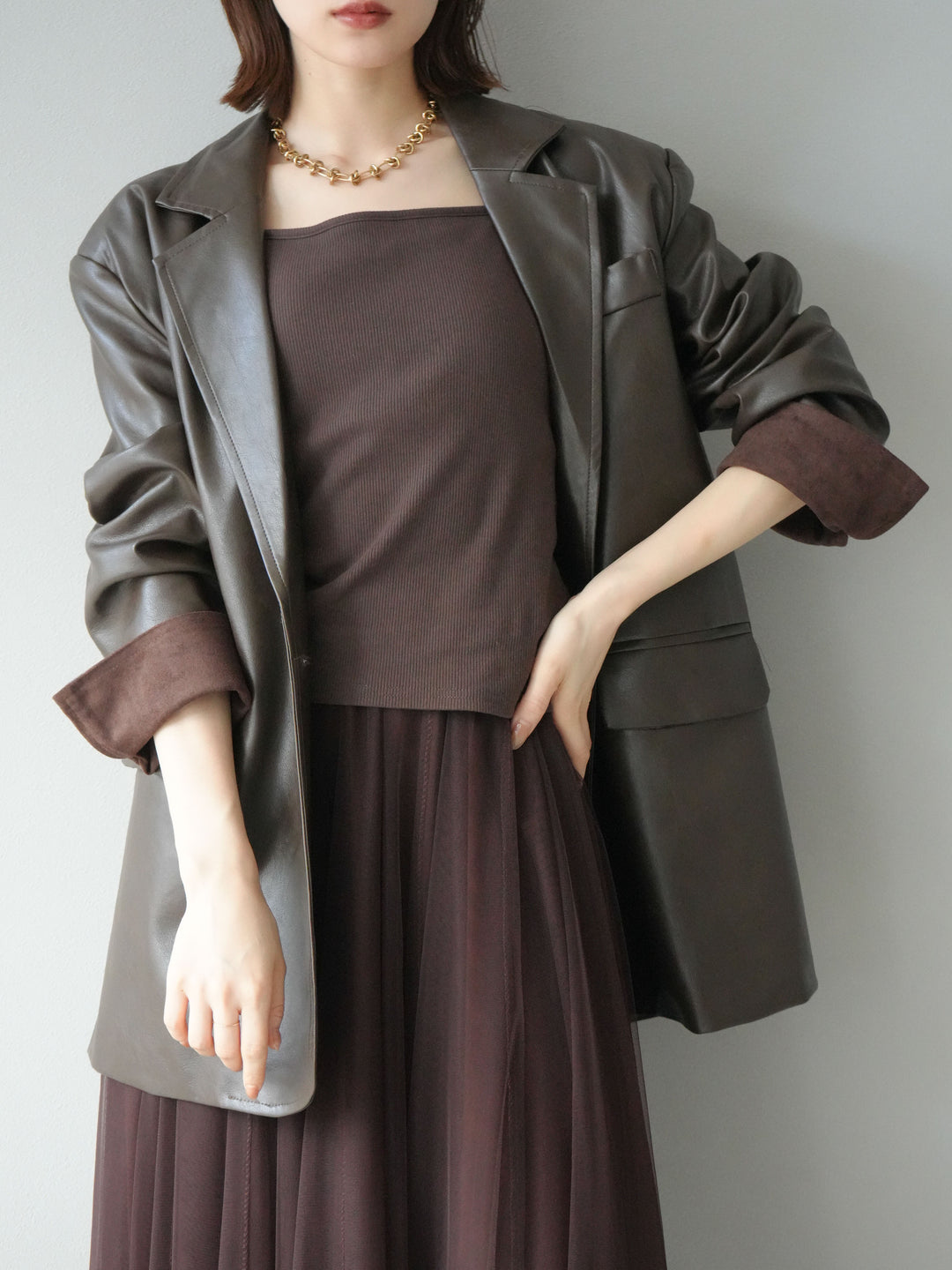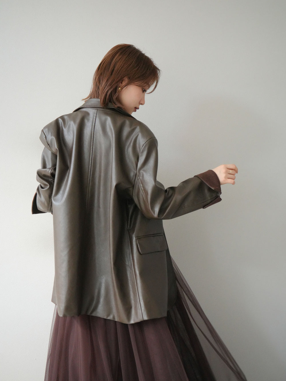 [予約]フェイクレザーテーラードジャケット/ブラウン