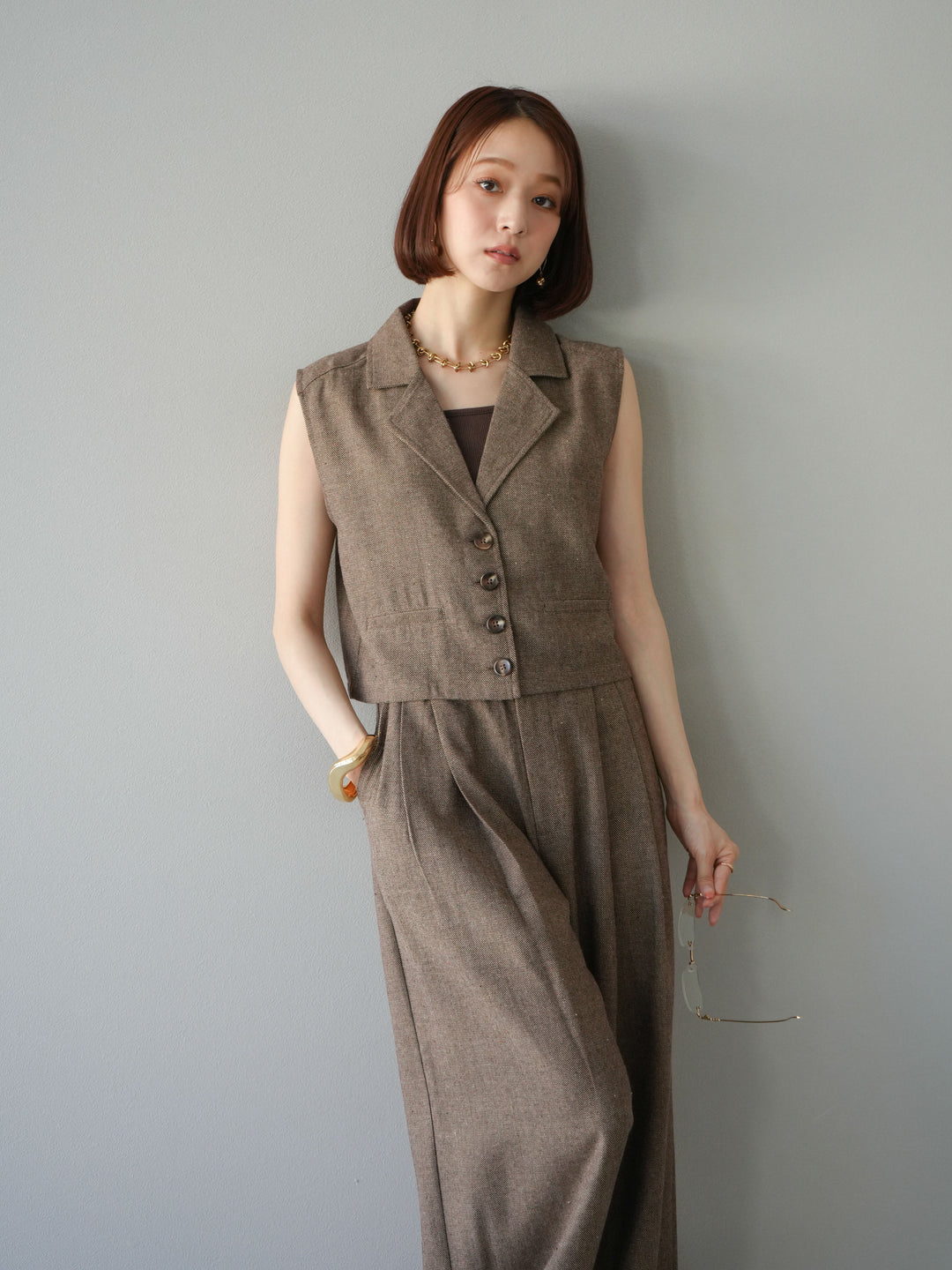 [予約]ツイードタッチテーラードジレ/ブラウン