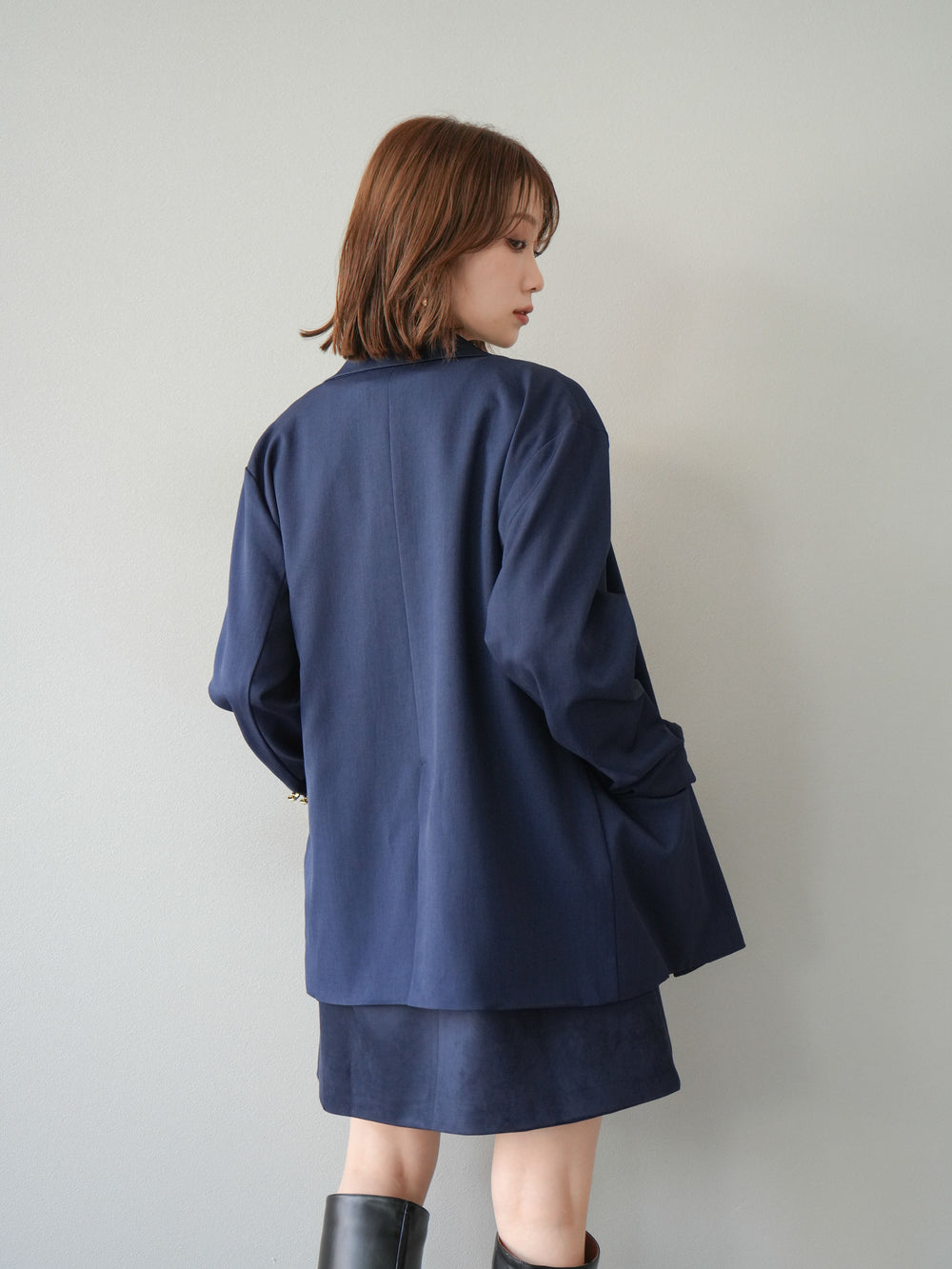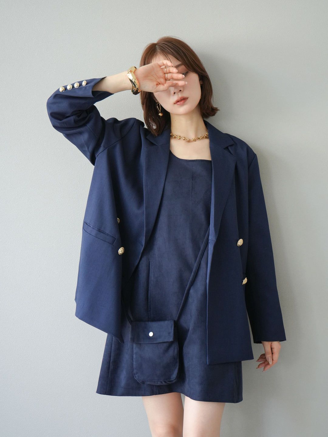 【預購】金色羈扣斜紋雙排扣西裝外套/藏青色