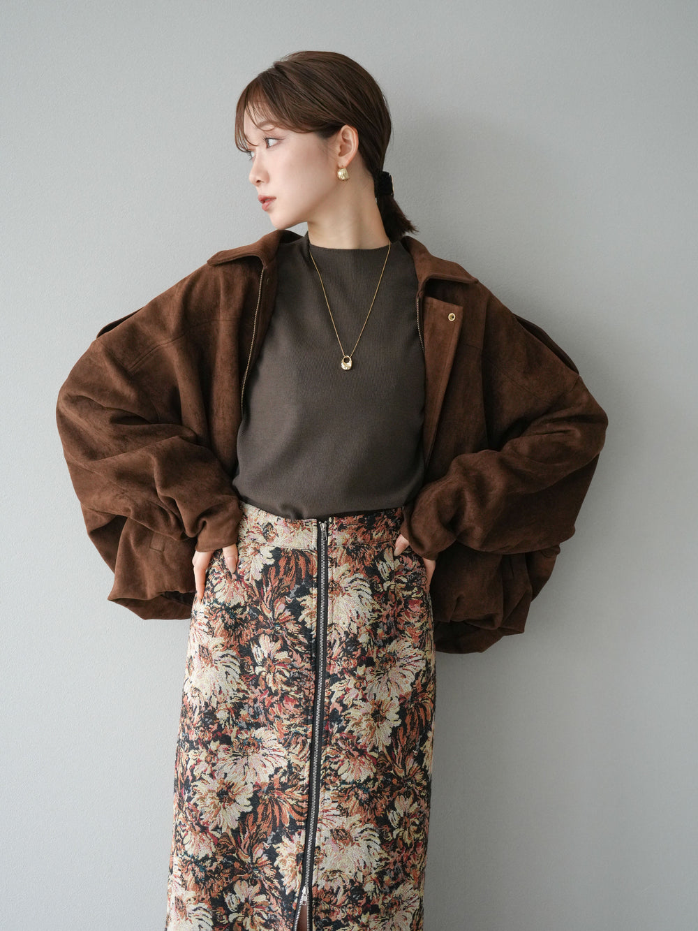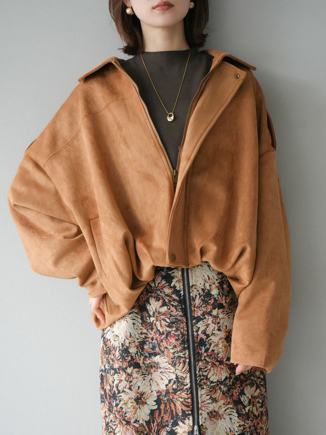 [予約]フェイクレザー裾バルーンブルゾン/ブラウン