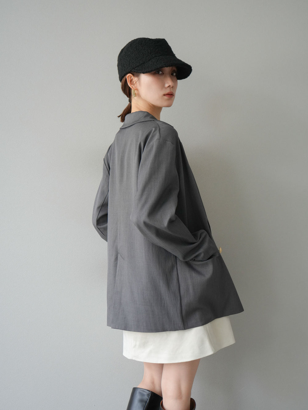 【預購】金扣斜紋雙排扣修身夾克/灰色