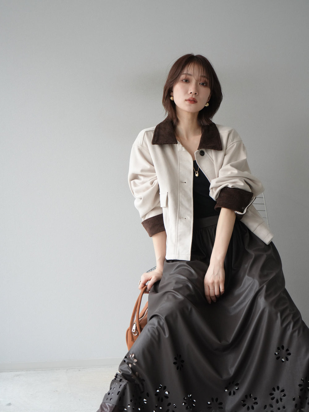 [予約]コーデュロイ切替スウェードショートジャケット/エクリュ