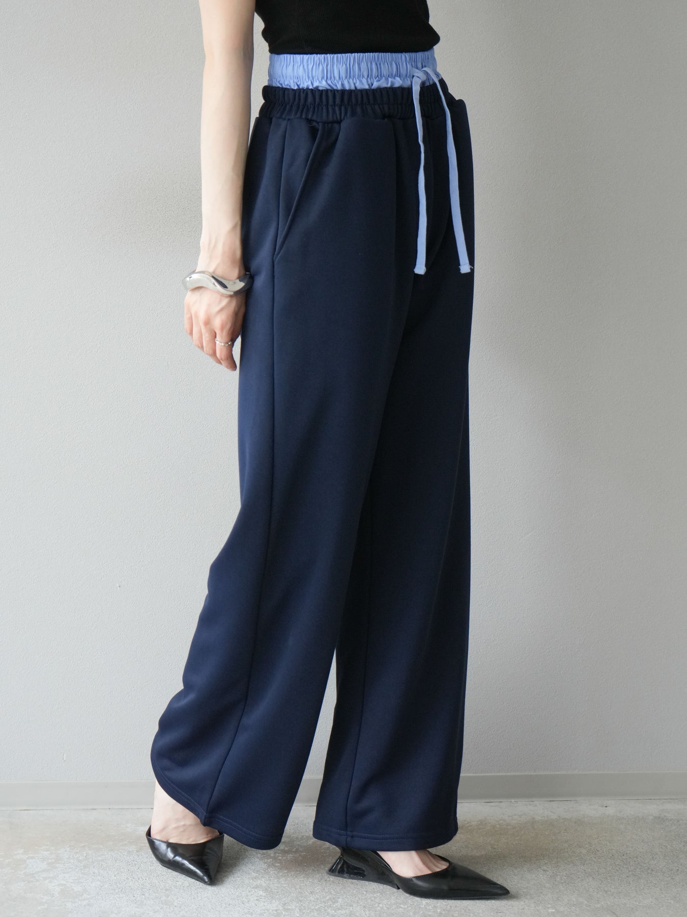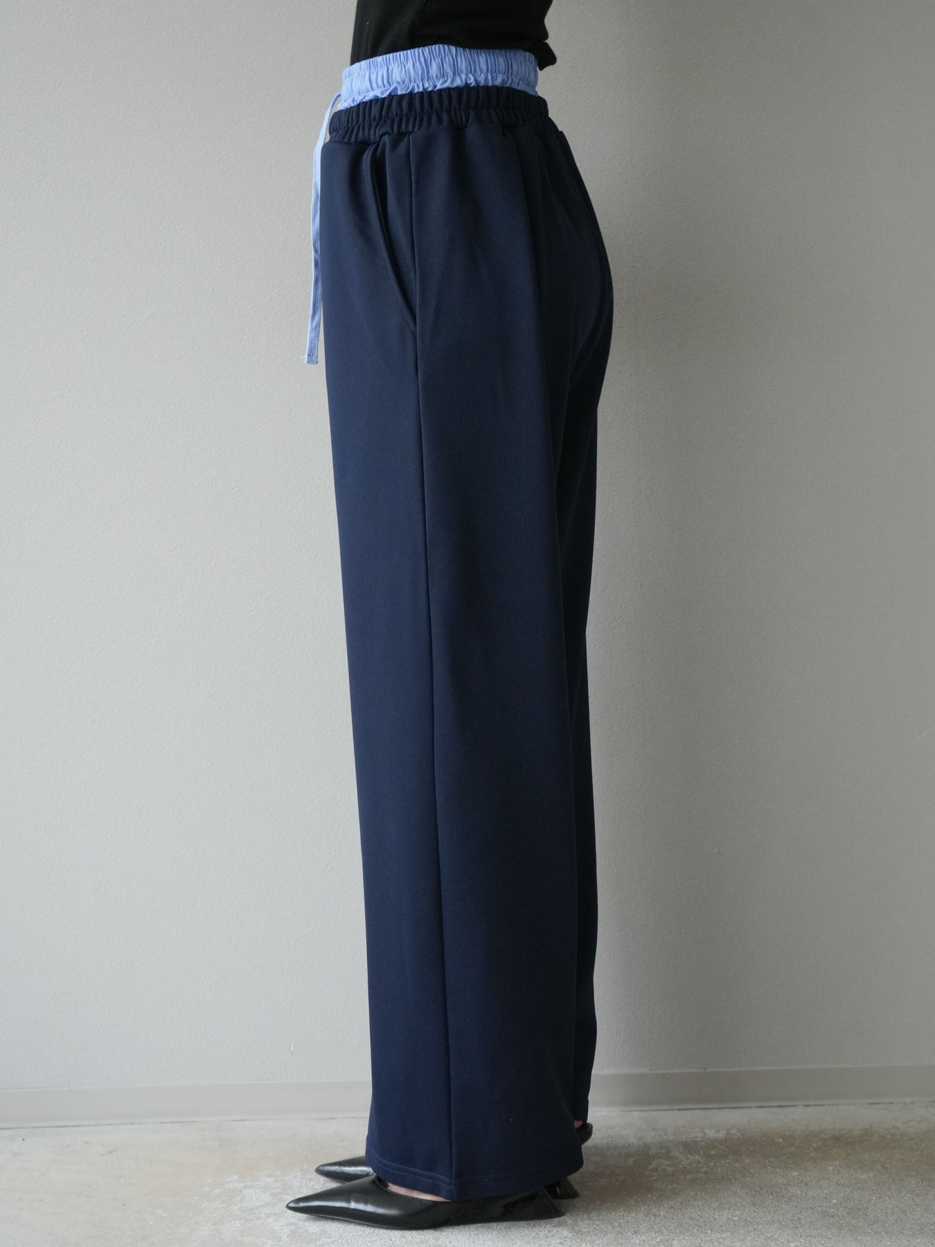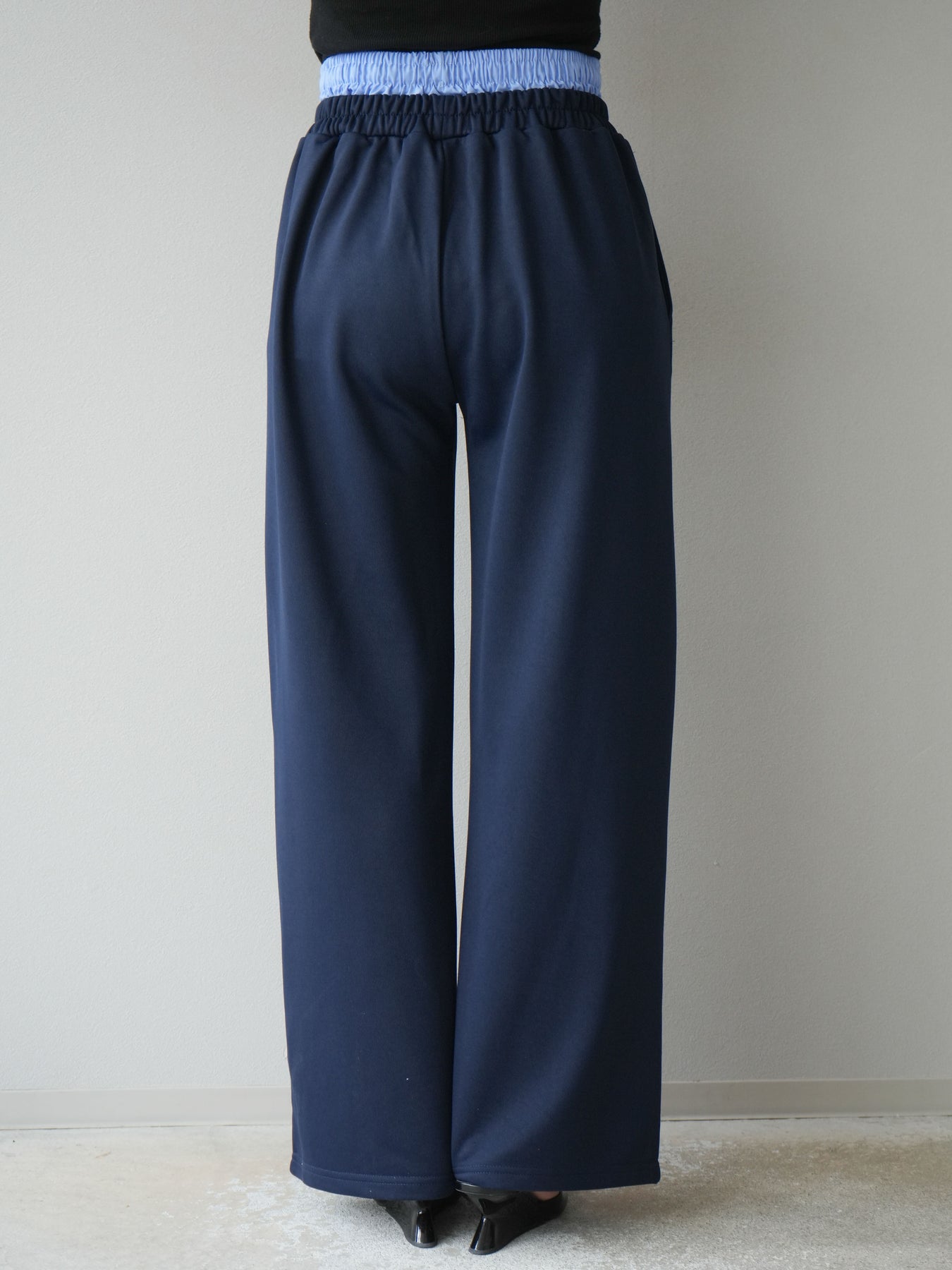 リラックス感漂うワイドシルエットのスウェットパンツに、ダブルウエストデザインを取り入れた一枚。ウエスト部分から覗くレイヤード風の仕様がスタイリングにアクセントを加え、シンプルなトップスと合わせるだけでこなれ感を演出します。柔らかなスウェット素材で快適な穿き心地を叶えつつ、落ち感のあるシルエットが脚のラインをすっきりと見せてくれるのも魅力。デイリーにはもちろん、トレンドを意識したカジュアルスタイルやリラックスシーンにも活躍する万能なアイテムです。