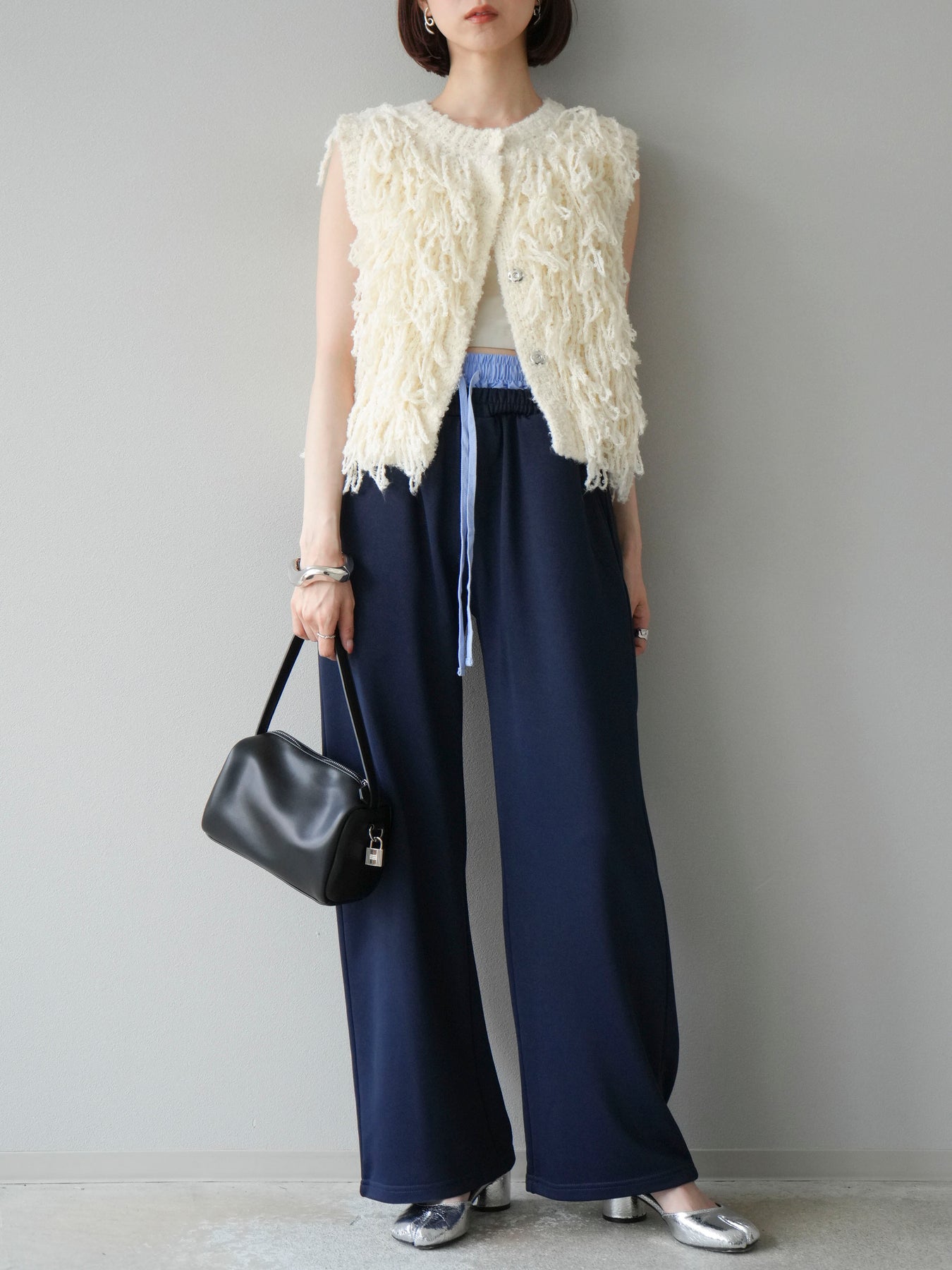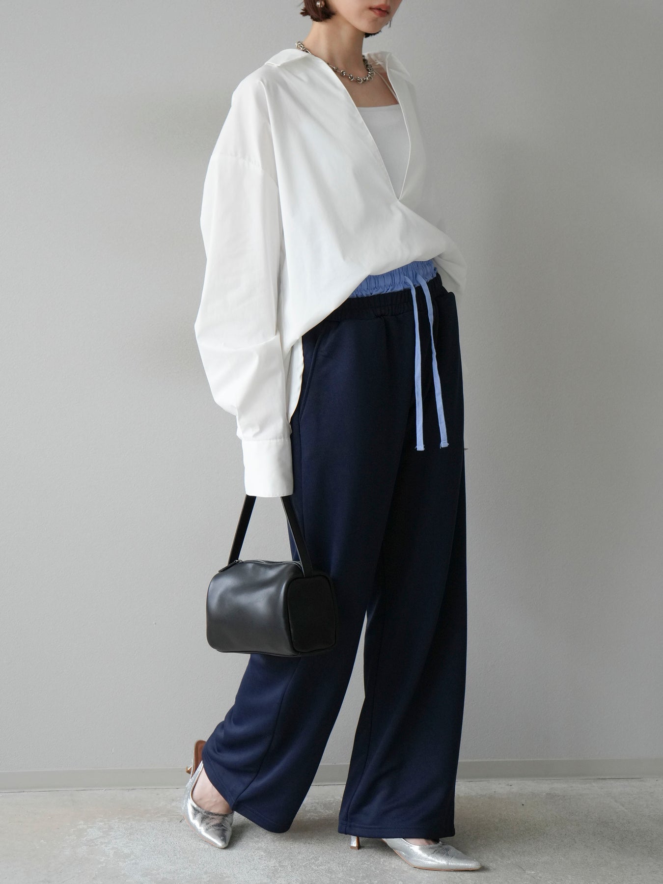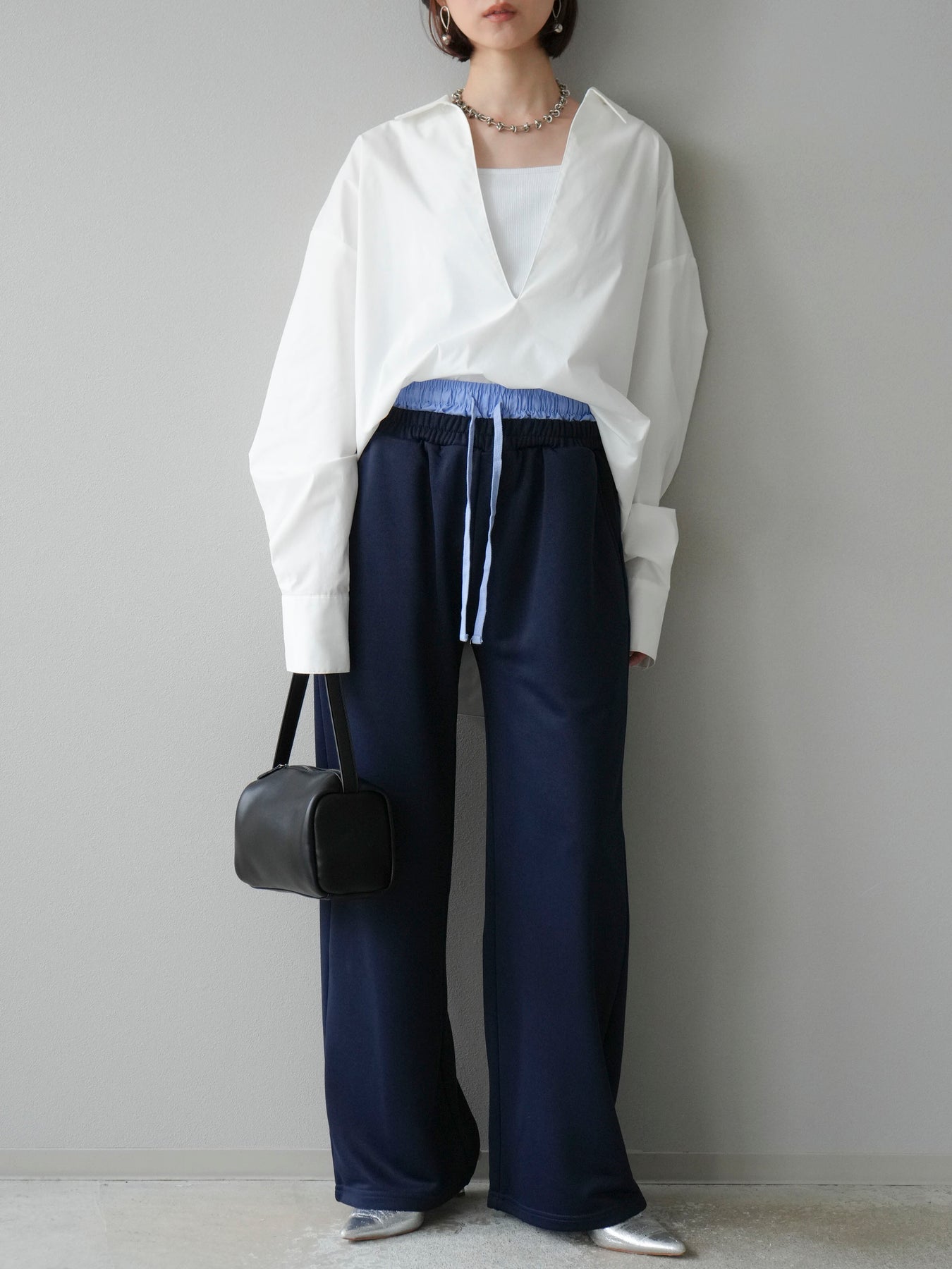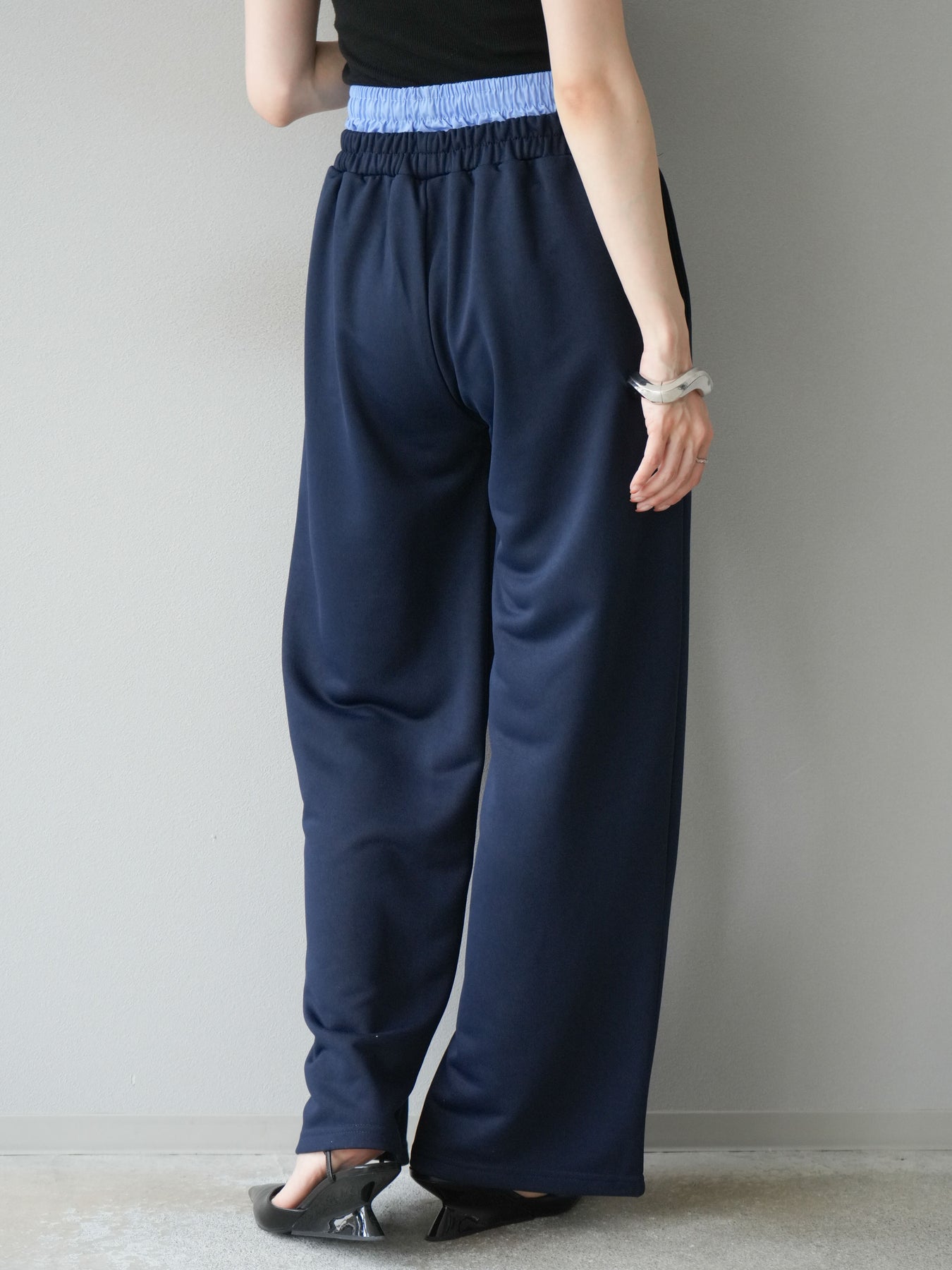 リラックス感漂うワイドシルエットのスウェットパンツに、ダブルウエストデザインを取り入れた一枚。ウエスト部分から覗くレイヤード風の仕様がスタイリングにアクセントを加え、シンプルなトップスと合わせるだけでこなれ感を演出します。柔らかなスウェット素材で快適な穿き心地を叶えつつ、落ち感のあるシルエットが脚のラインをすっきりと見せてくれるのも魅力。デイリーにはもちろん、トレンドを意識したカジュアルスタイルやリラックスシーンにも活躍する万能なアイテムです。